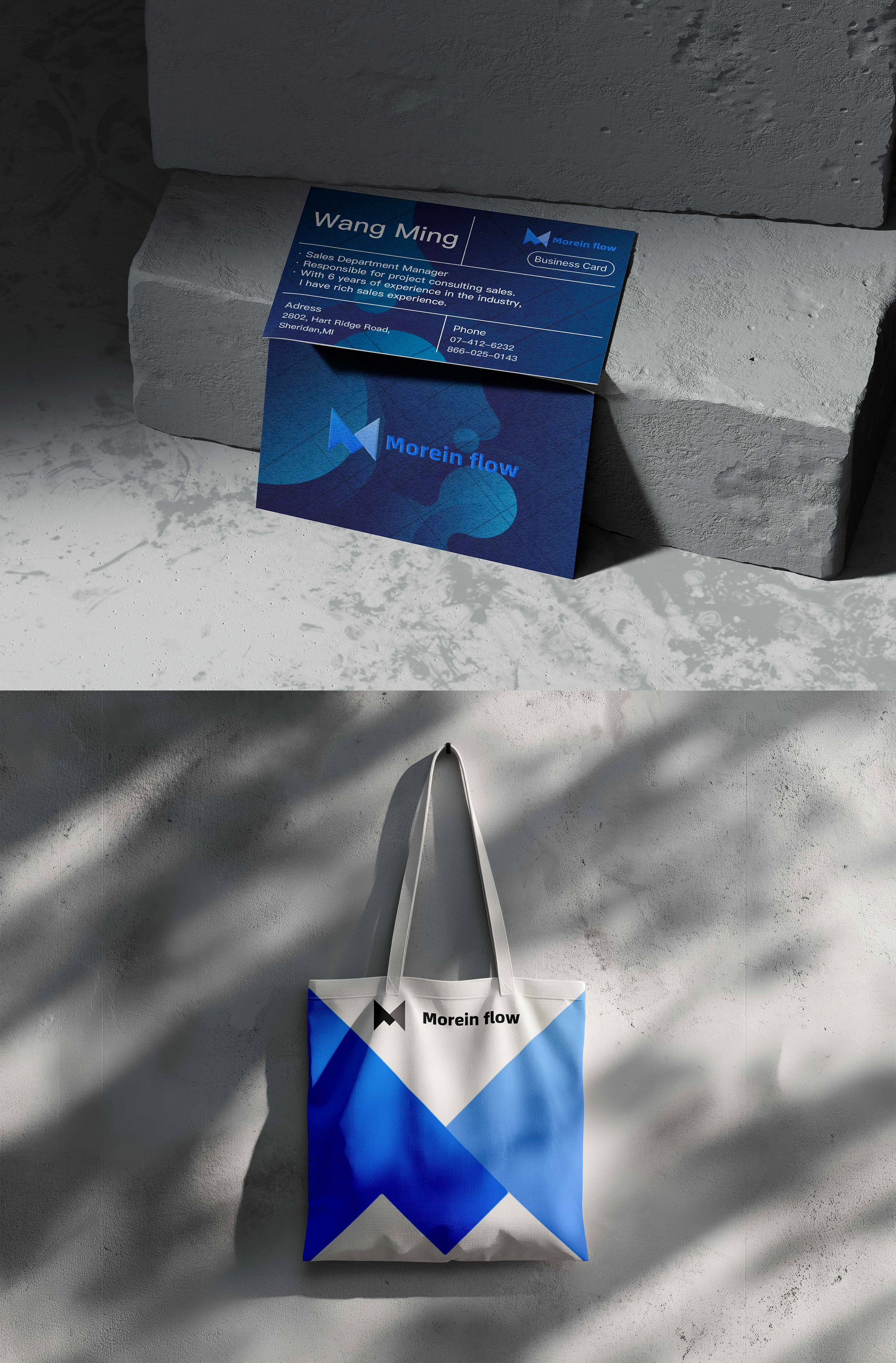 The brand logo centers on the initial letter “M” of the company name “Morein Flow”, composed of two refined geometric shapes. It succinctly represents the brand, and its simplicity ensures high recognizability and memorability, allowing it to be effortlessly applied across various scenarios.