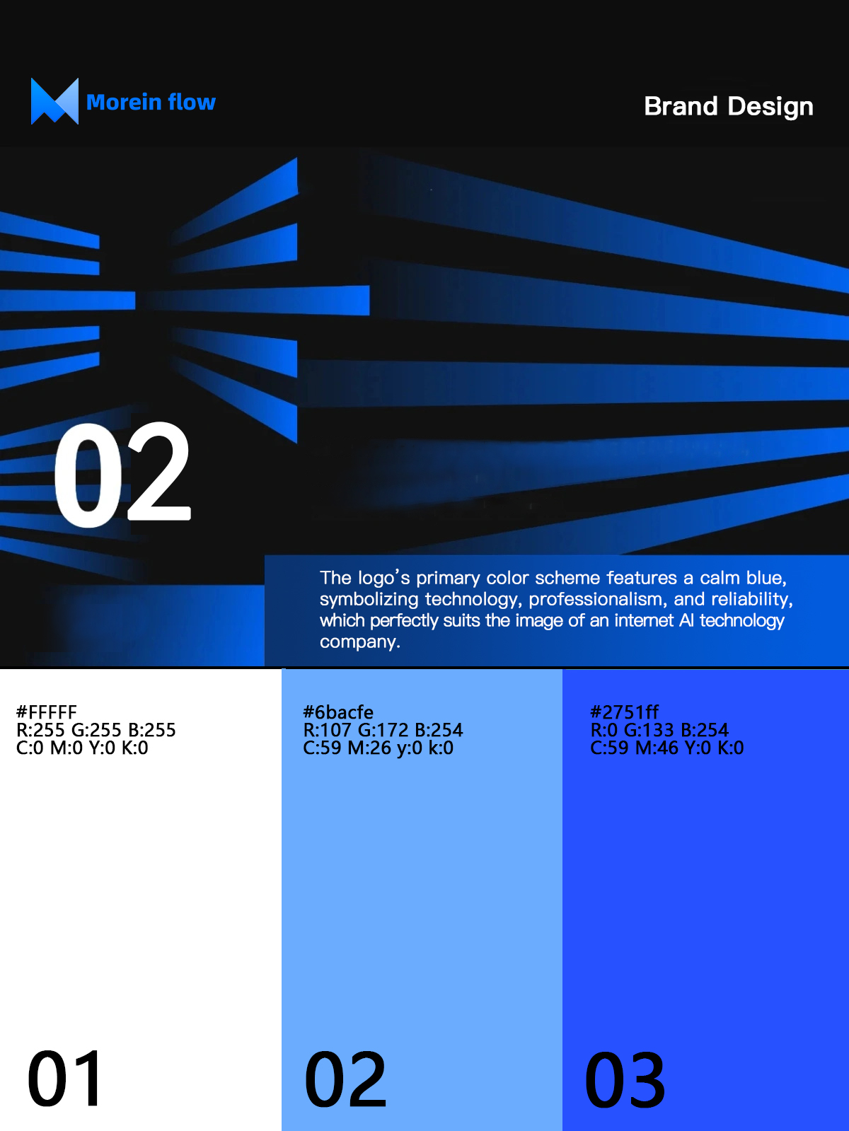 The form of the letter “M” embodies the aesthetics of symmetry and balance, resembling a bridge that connects spaces at both ends, which not only transcends physical boundaries but also facilitates the exchange of information and ideas. This aligns with Morein Flow’s mission to build bridges of communication between people, data, and intelligence through information technology.