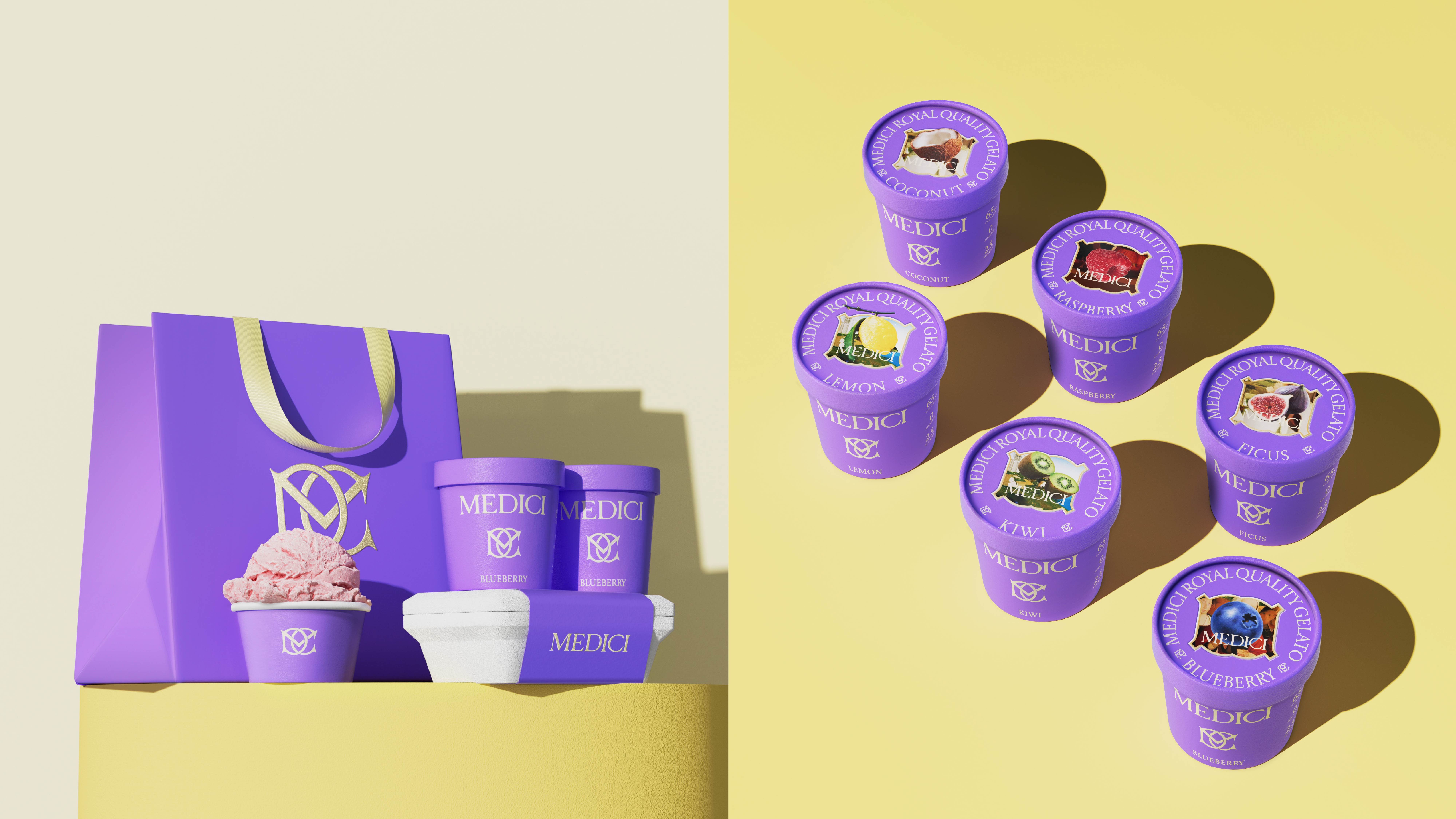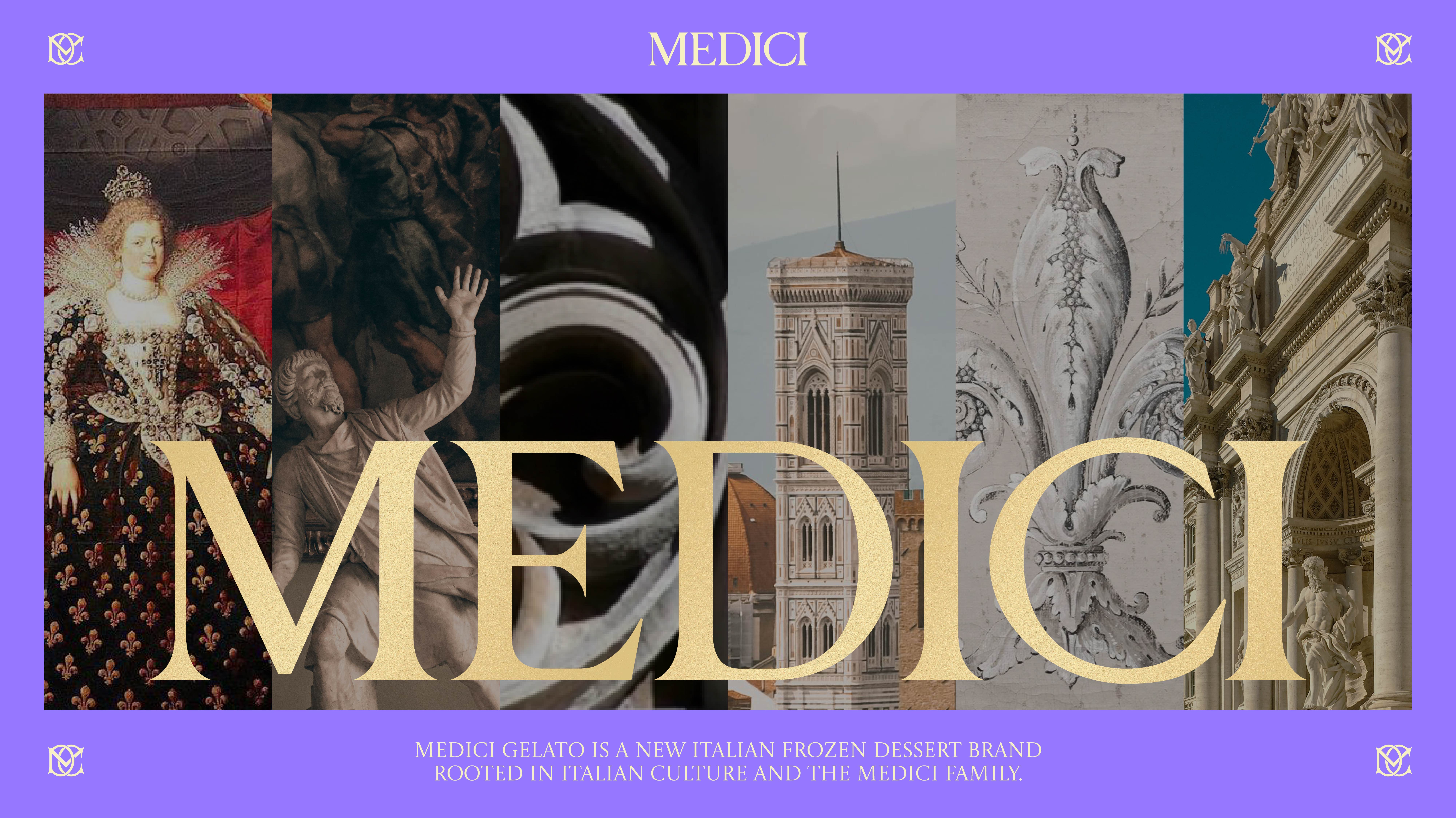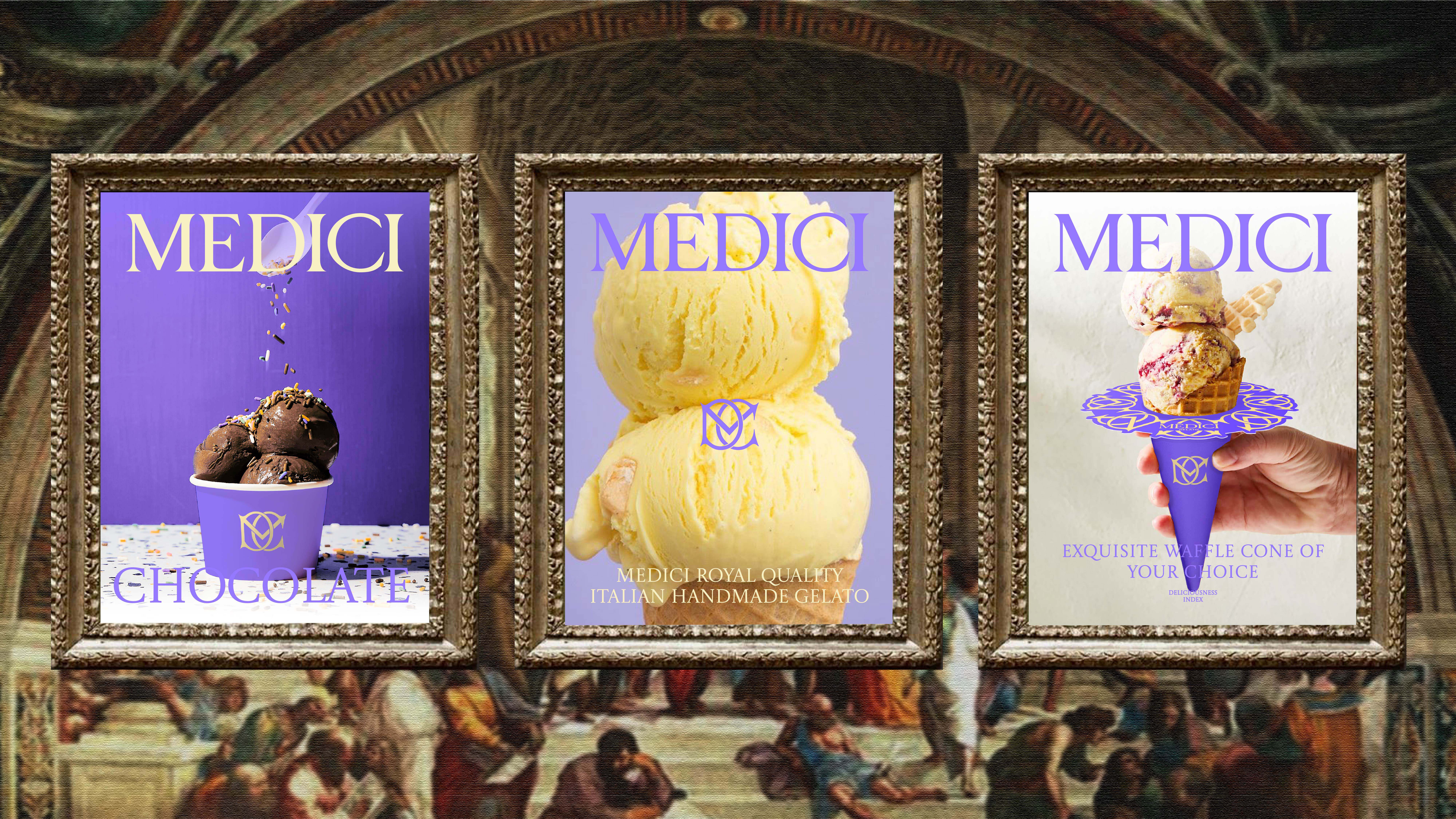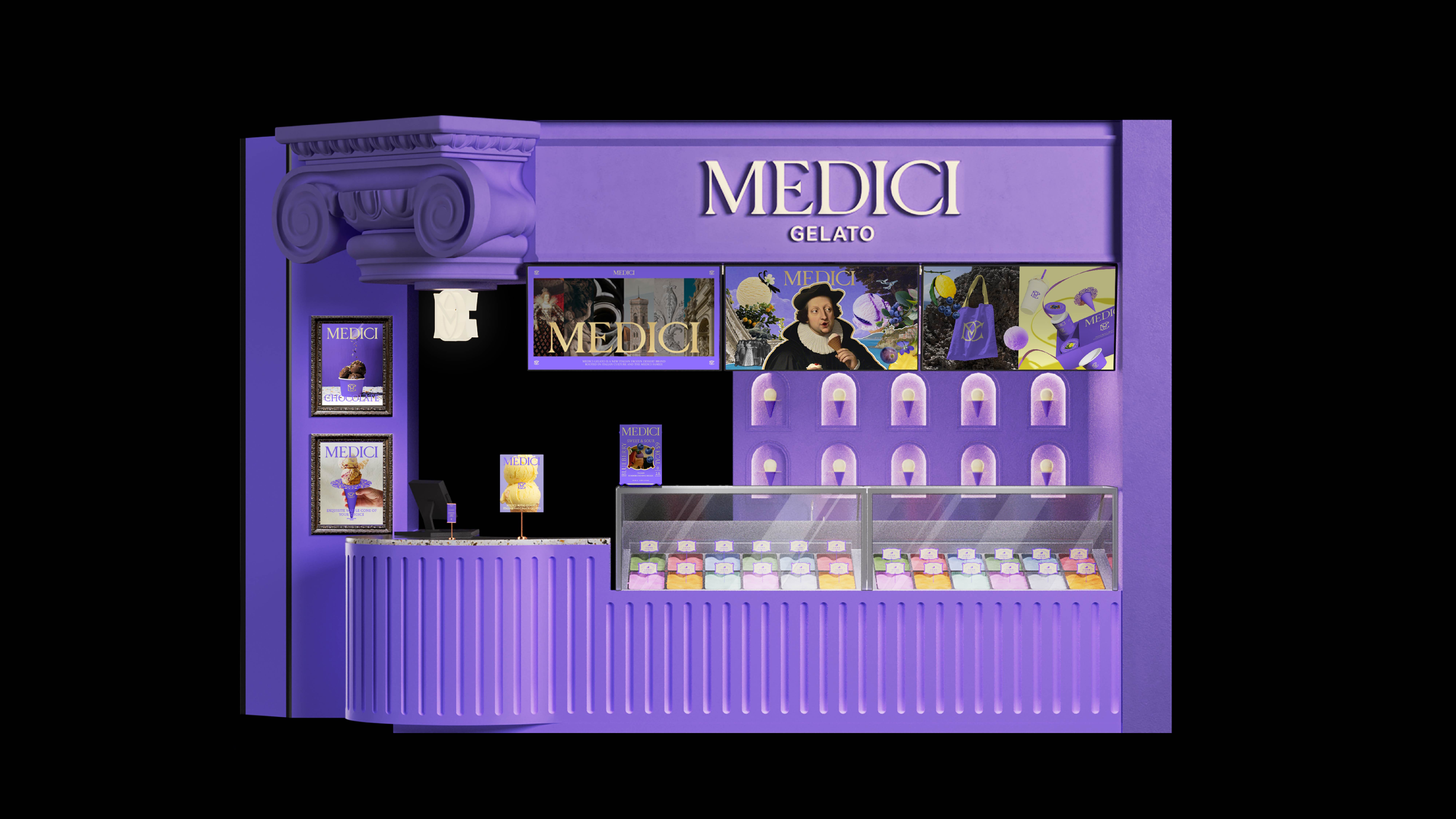 MEDICI Gelato is a Italian frozen dessert brand rooted in Italian culture and the Medici family.The brand’s visual identity is inspired by the concept of "Recreated Art",blending classic art with modern design innovations to create a unique and engaging brand image and packaging.