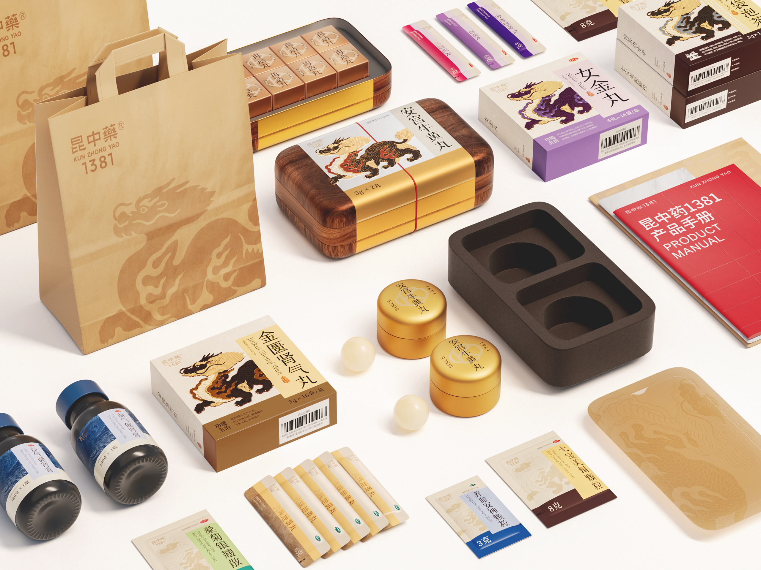 KUNZHONGYAO 1381 the world's oldest pharmaceutical brand certified by Guinness.In response to China's aging population,it offers health solutions for the elderly.Through packaging redesign,the complex PCMs system has been transformed into an intuitive visual language,creating a user-friendly PCMs brand.Brand system launch saw a 130% order increase.