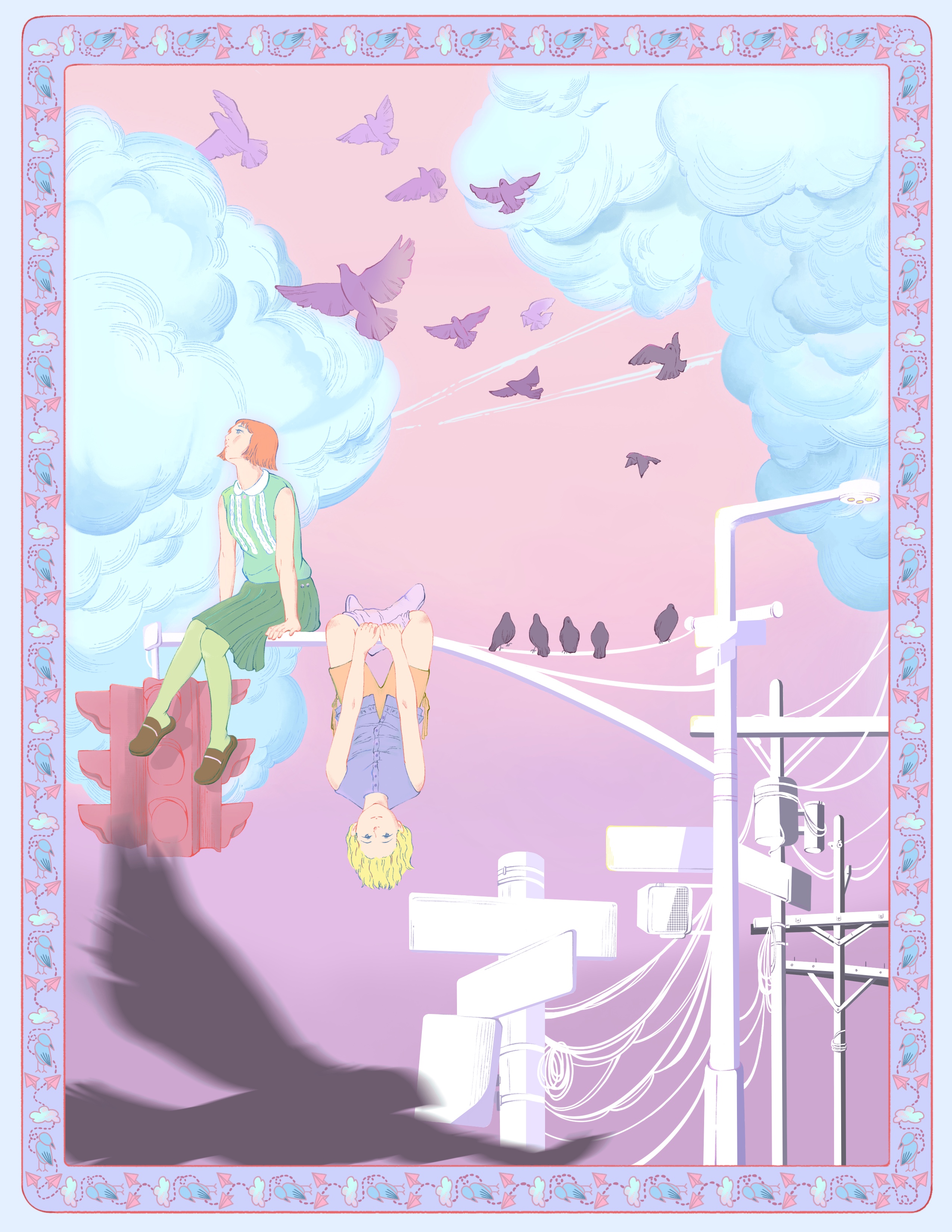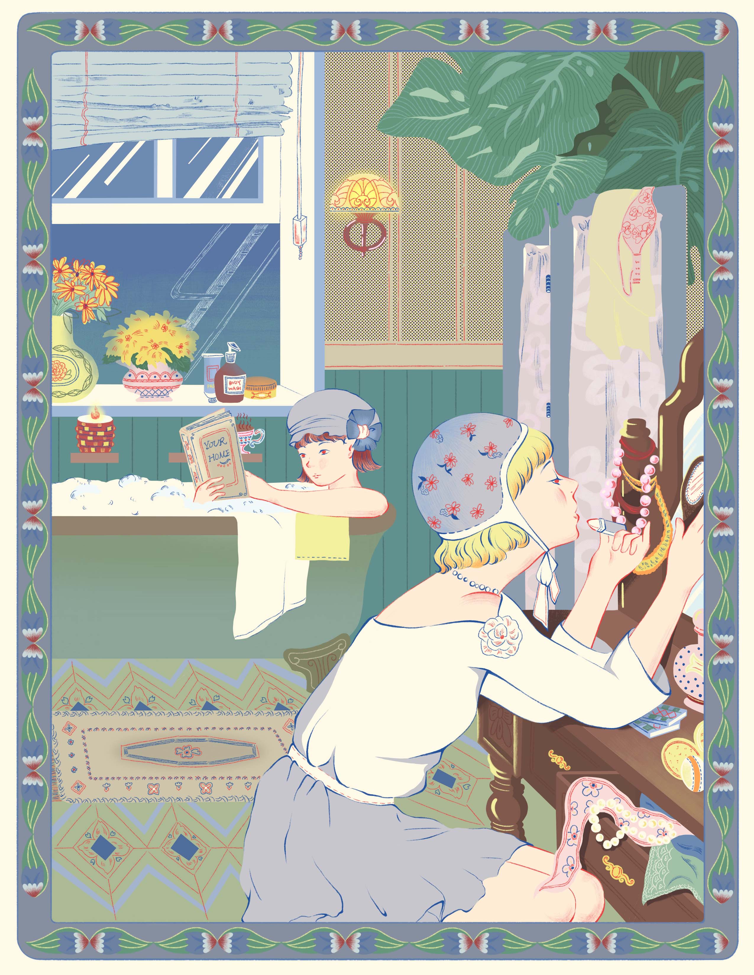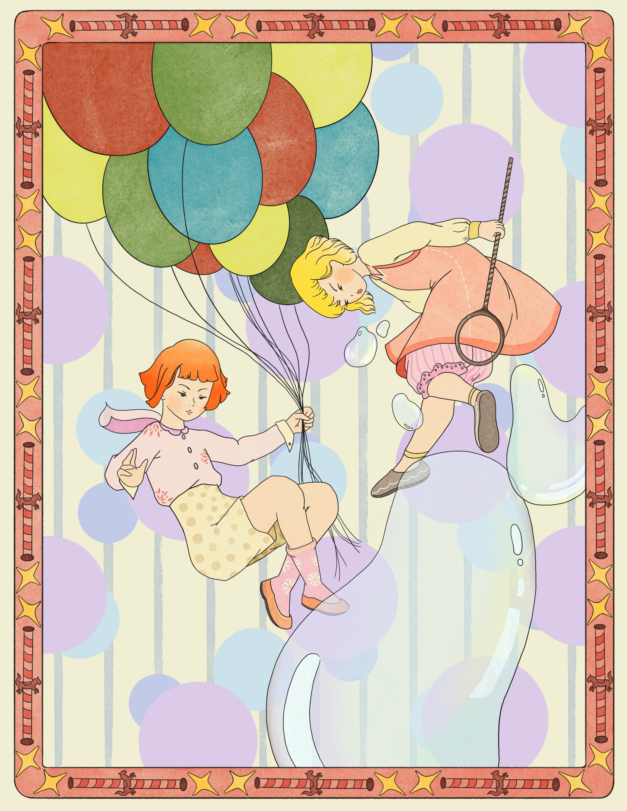 "Dollhouse Dreams" is a whimsical illustration series that captures the imaginative worlds of twins as they navigate their childhood adventures. Each artwork showcases enchanting scenarios unfolding within their colorful dollhouse, a space filled with delightful details and secrets. It also invites viewers to reminisce about their own childhood fantasies.