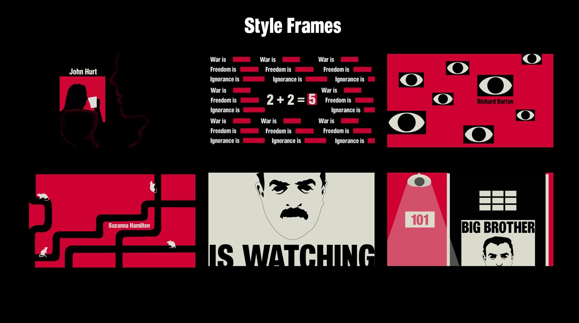 Rather than summarizing the plot, our aim was to build a mood-driven interpretation that conveys the emotional atmosphere of Orwell’s dystopia. Typography, motion, and imagery are used to immerse the viewer in a world where truth is unstable and resistance is futile—even before the story begins.