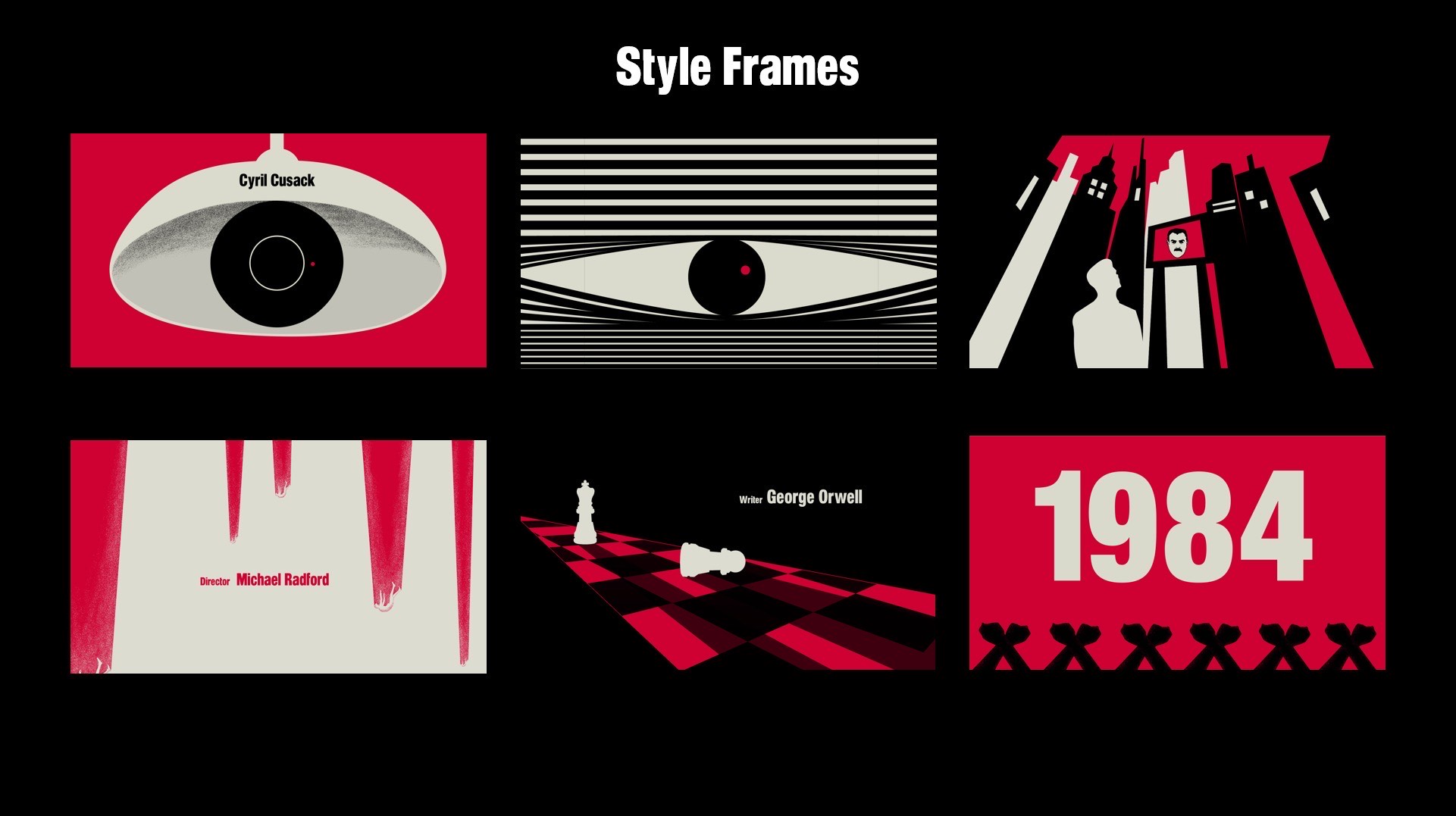 A recurring visual motif throughout the sequence is the presence of eyes—embedded subtly into clocks, mirrors, and interfaces—to reinforce the constant state of being watched. The sequence concludes with a chessboard, referencing a quiet but powerful moment in the novel's final chapter, where themes of submission and psychological defeat come full circle.