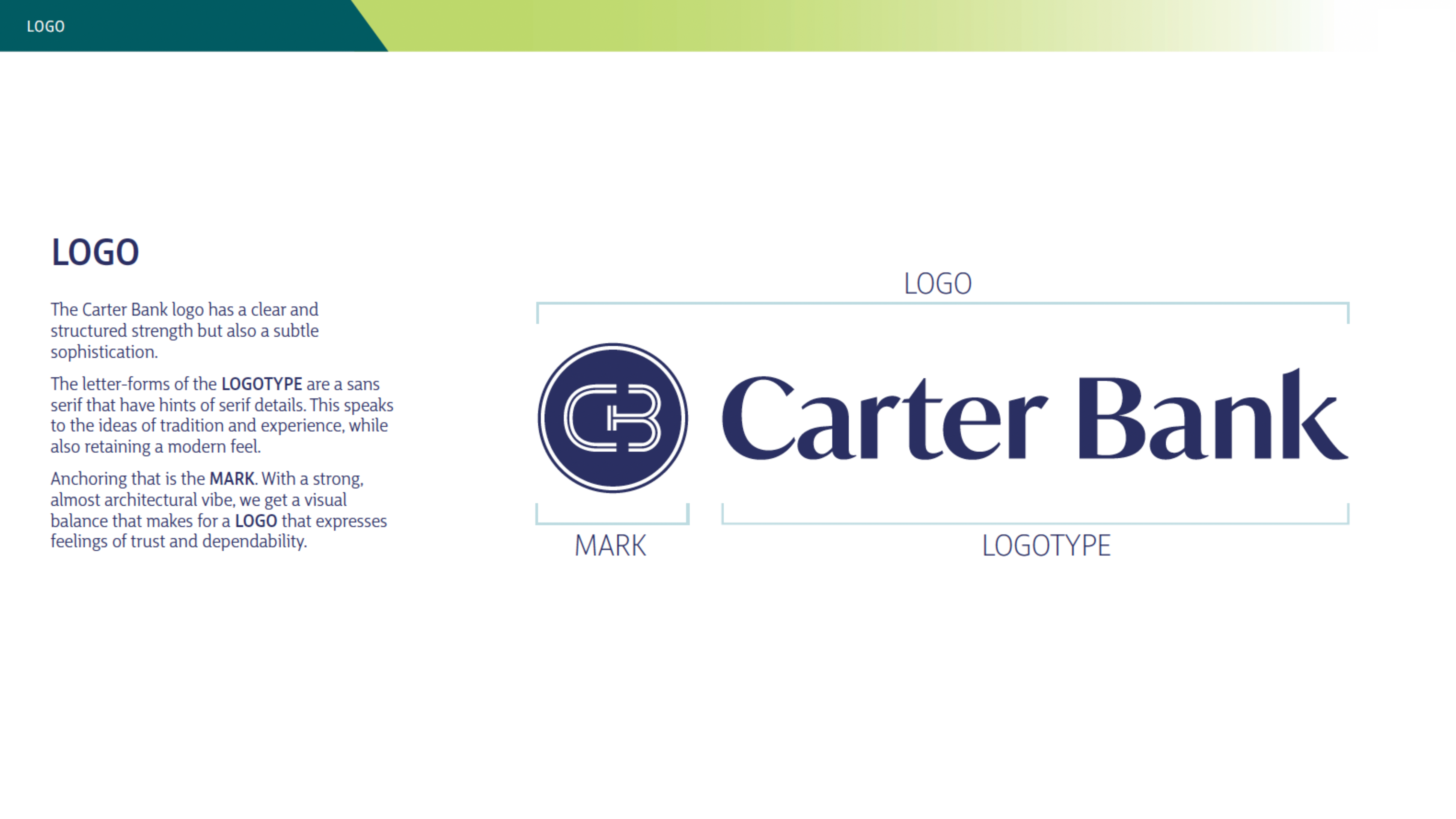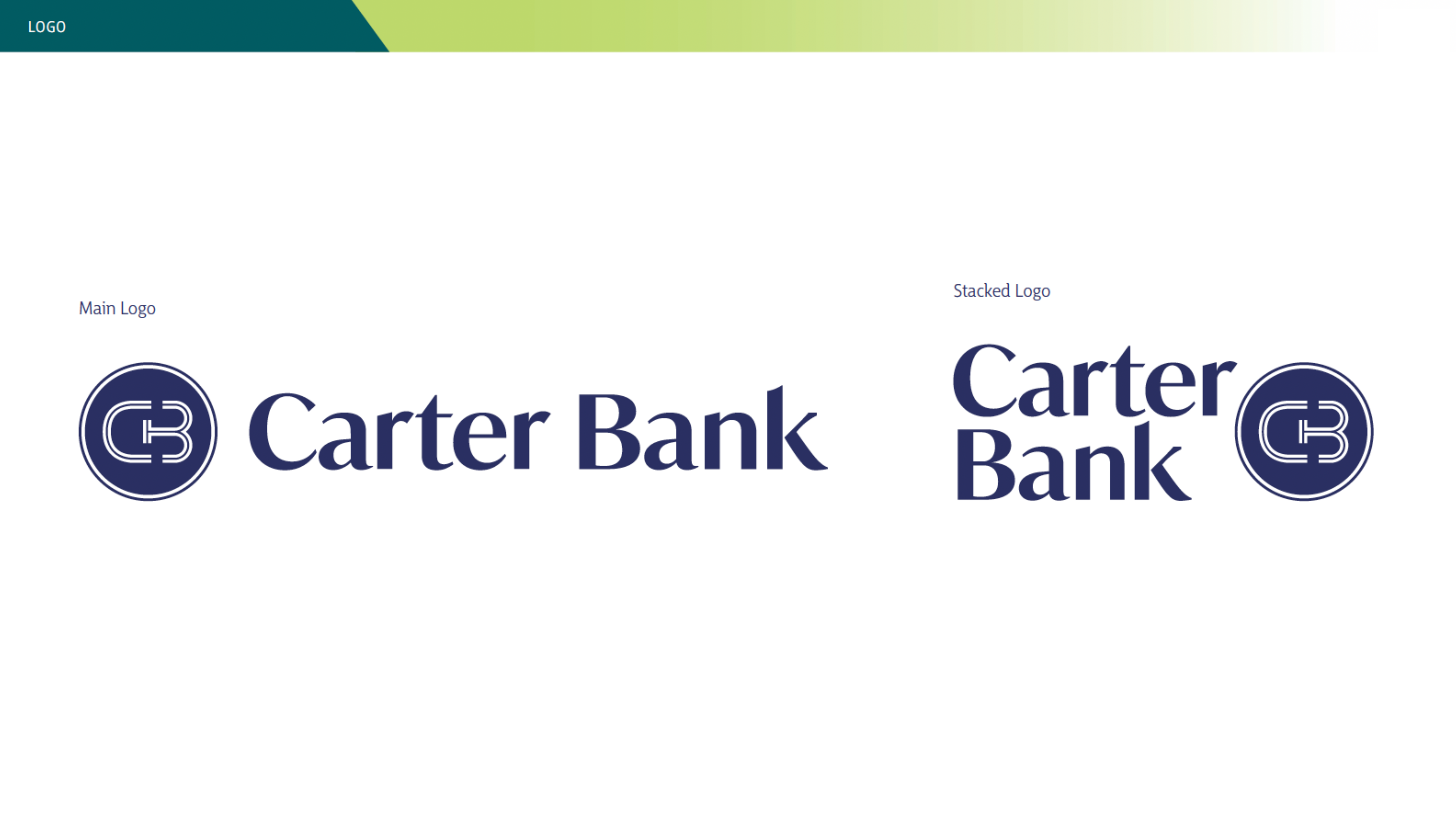 The final logo design is clean, contemporary, and symbolic. The wordmark features a customized, modern serif typeface that balances trust and tradition with a fresh, forward-thinking tone. The bespoke letterforms offer a sense of stability and approachability, key attributes of the Carter Bank brand.
