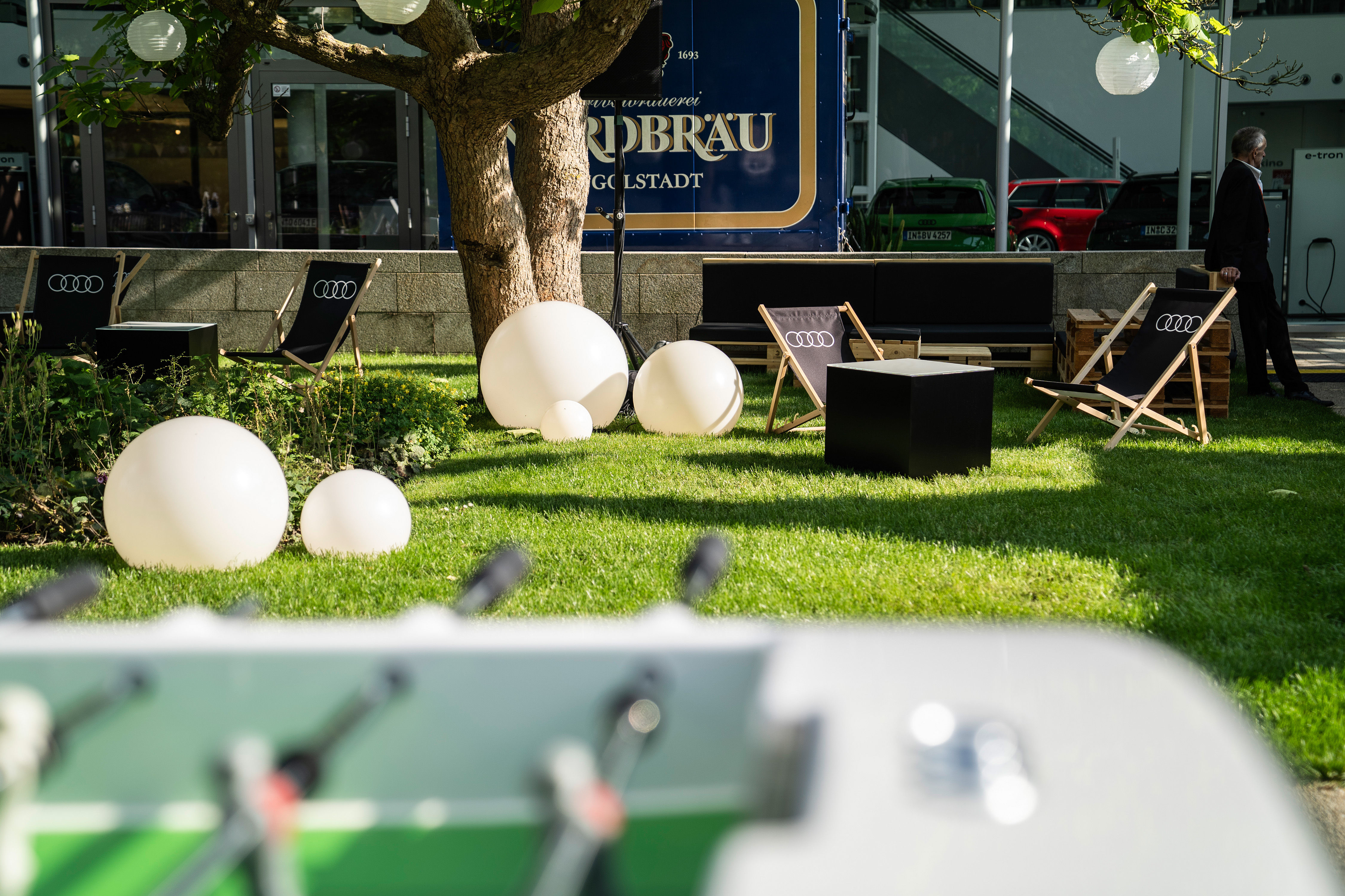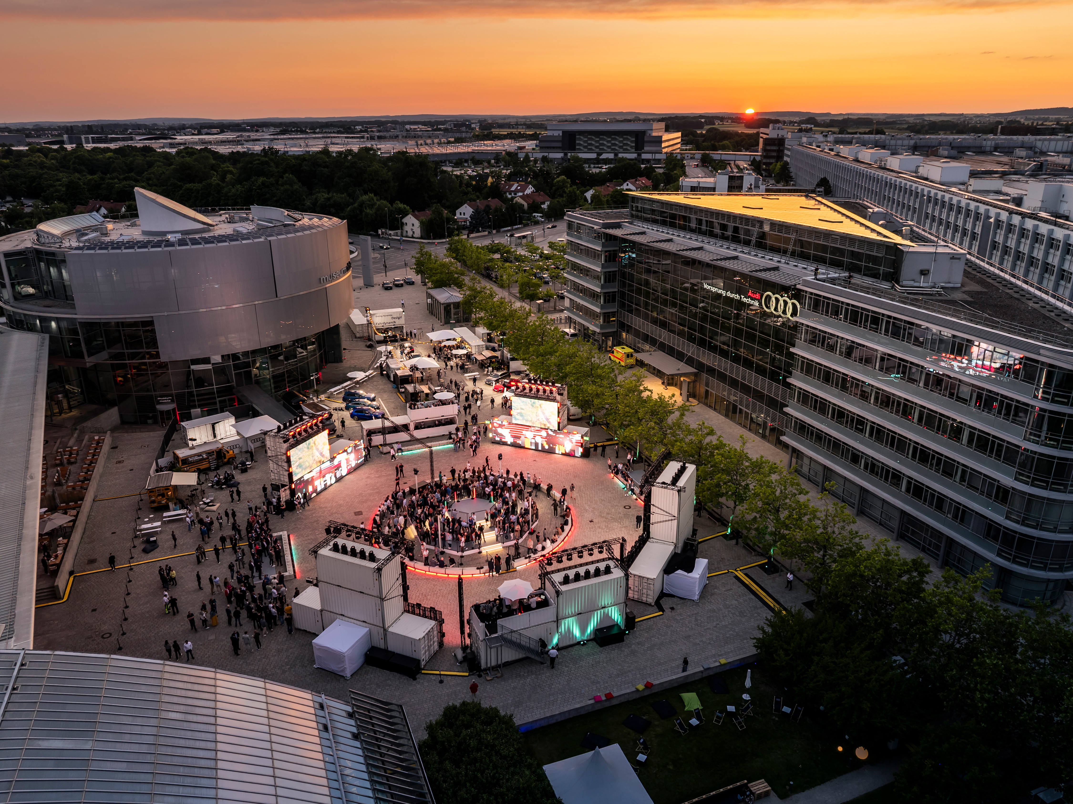 The following days (17–18 June) saw the arena transformed into a festival — by Audi, for Audi. Replay shows enabled all employees and the public to relive the experience. Audi staff took on roles as moderators, DJs and musicians. Families were invited to explore hands-on activities such as keyring crafting, VR test drives and popcorn stands. The 'Piazzetta' — a transformed garden space — invited visitors to unwind and soak up the summer sun.