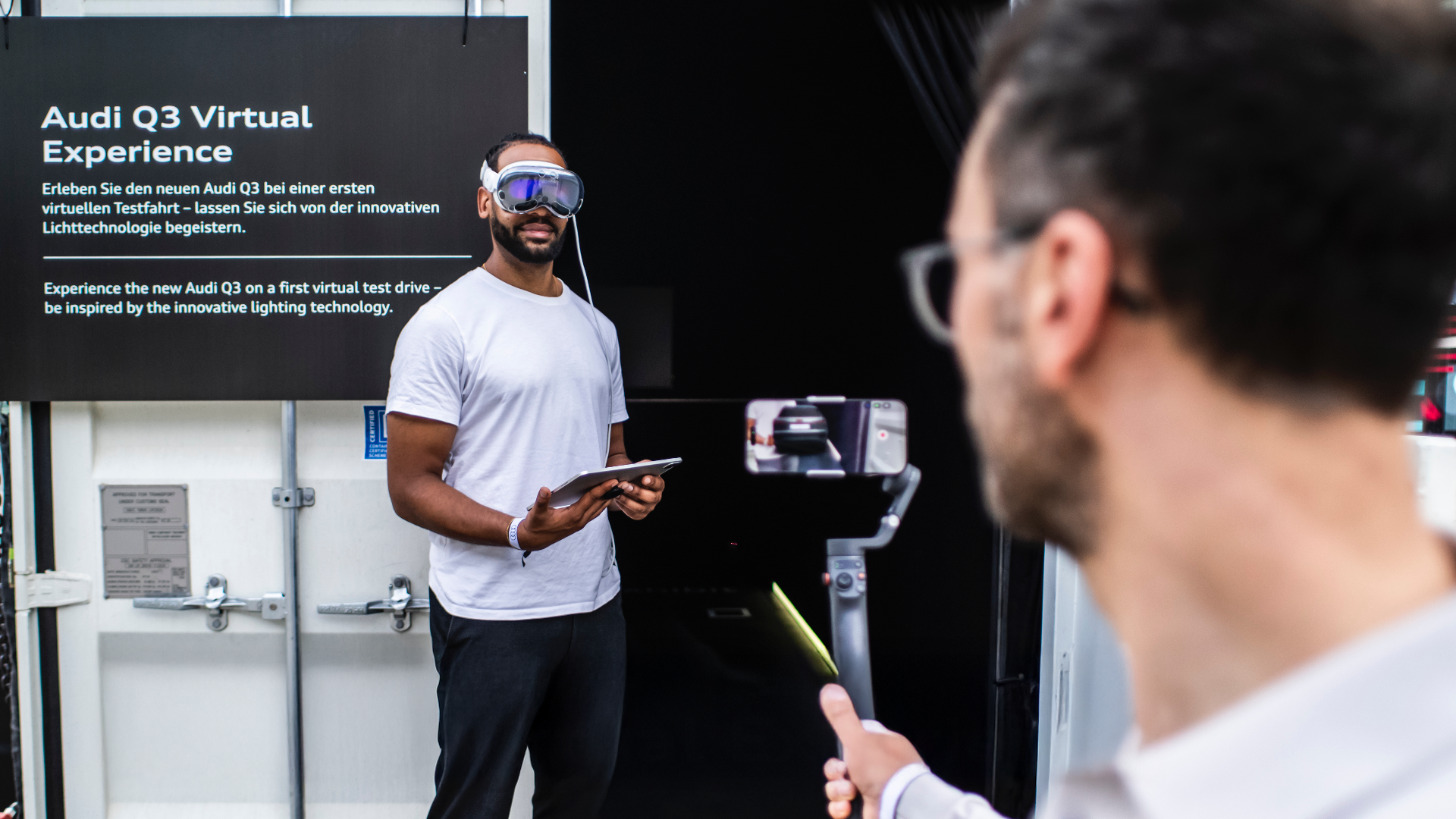 On June 16th, over 500 international guests—including media representatives, creators, and Audi employees—gathered at the brand’s home in Ingolstadt for the Global Q3 Reveal. The day began with exclusive press previews among others in a lounge area designed for content capture. A highlight: the “Unboxing Container,” which could be opened by hand to reveal the new Audi Q3 in its hero color “sage green”—an Instagram-ready statement of intent.