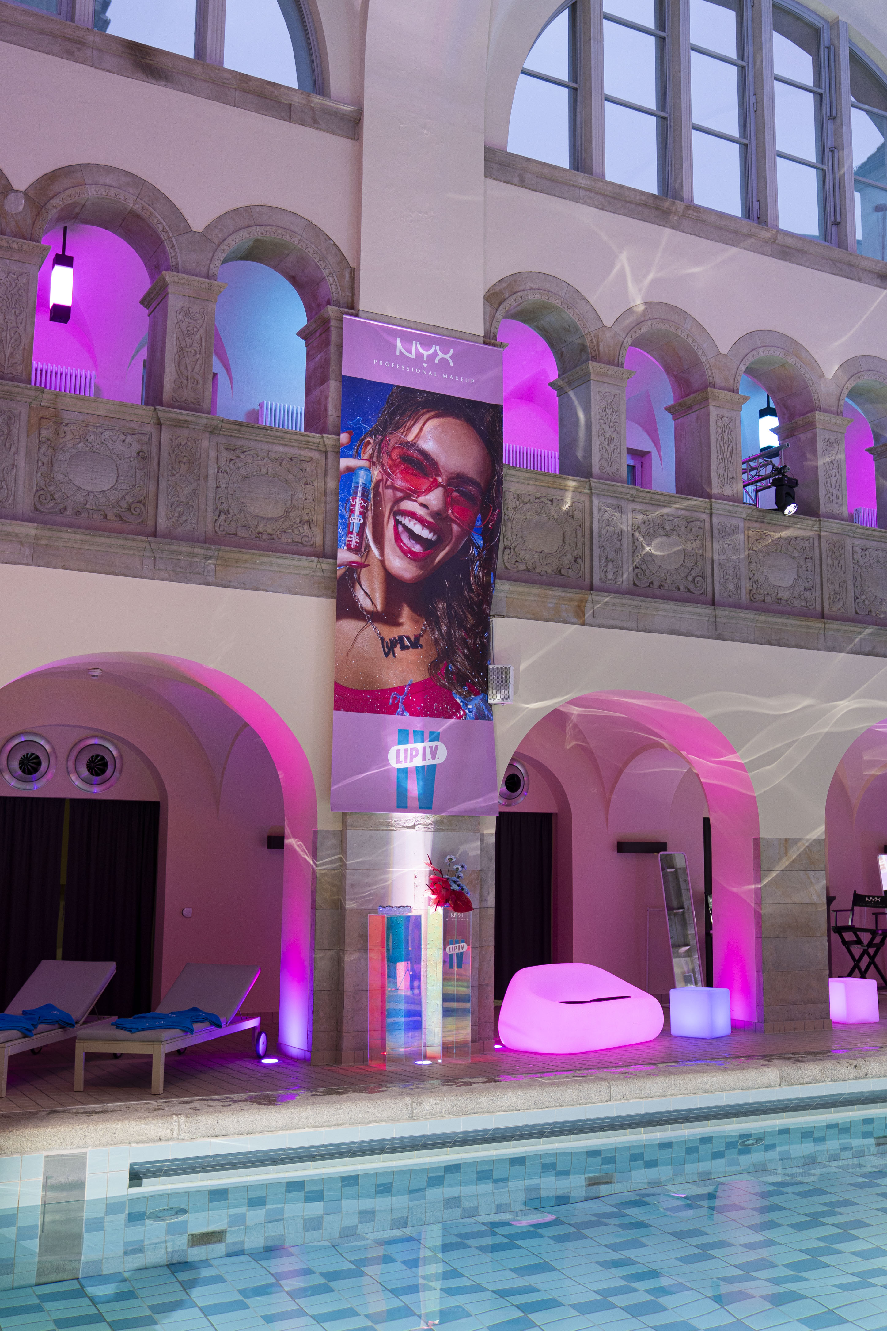 Hosted at the historic Hotel Oderberger in Berlin, the event transformed a heritage pool into a high-gloss, content-first playground. Designed for 30 unpaid influencers, every moment of the experience was crafted to reflect LIP I.V.’s key benefits: hydration, glow, and bold self-expression. The location itself became a stage for a full-sensory journey – from signature cocktails to custom props, product-driven visuals, and branded accessories.