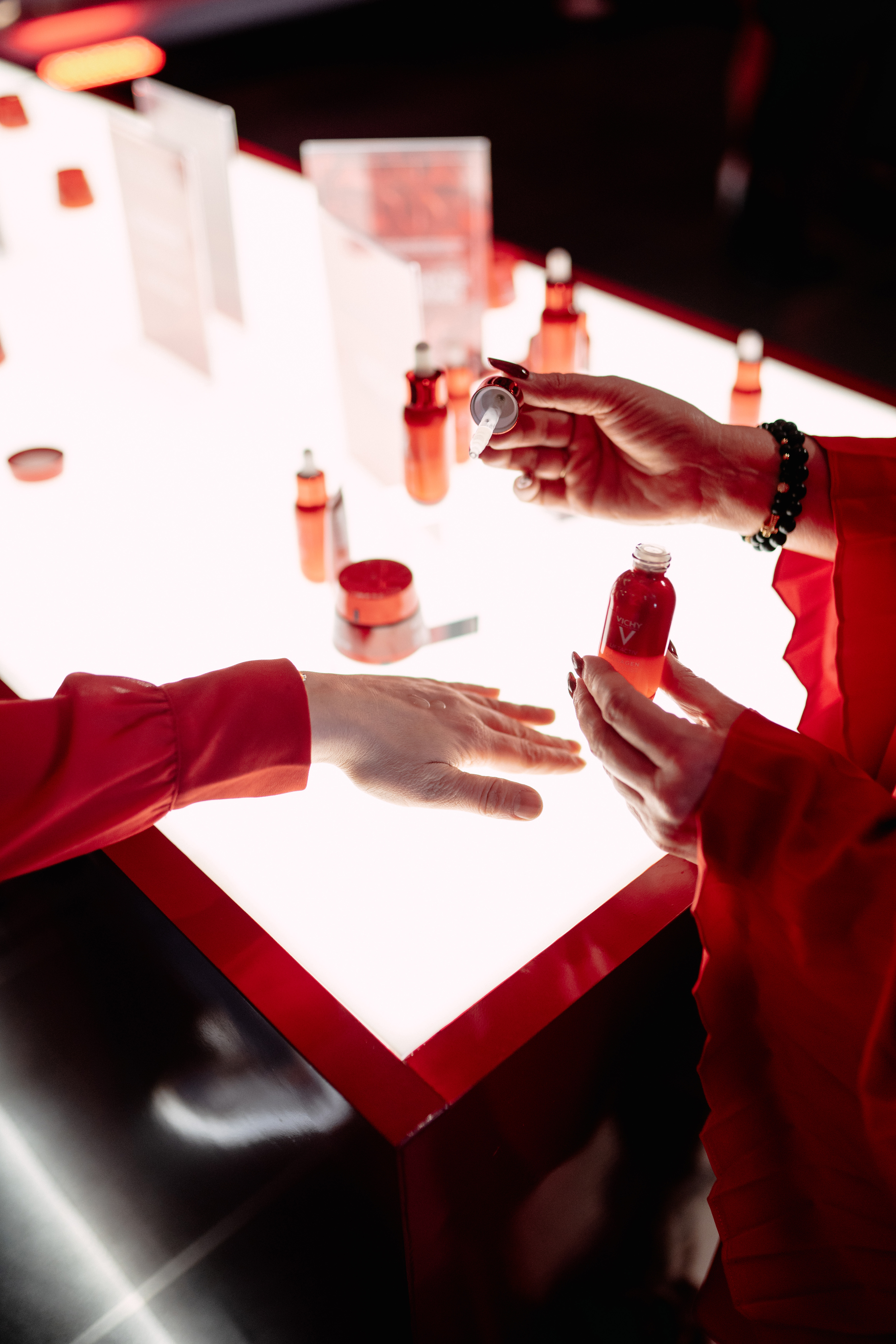 Set within a striking modern art space, the event featured a bold red aesthetic and heroic lighting. The visual concept aimed to raise awareness for the new serum, generate high-impact social content, and created an emotional connection with the brand.