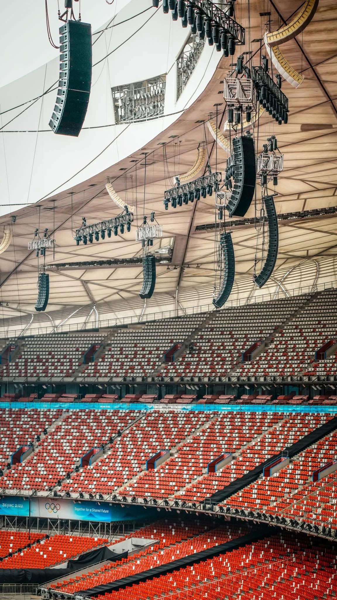 The groundbreaking setup, designed and executed by Nanjing OST Audiovisual Technology and renowned engineer Jin Shaogang, featured an enormous deployment of 512 d&b SL-Series loudspeakers, suspended from a 200-meter steel cable network across the stadium’s roof and 126-meter Stage. This pioneering design ensured consistent, high-quality sound for all 70,000 attendees per night, regardless of their location in the venue.