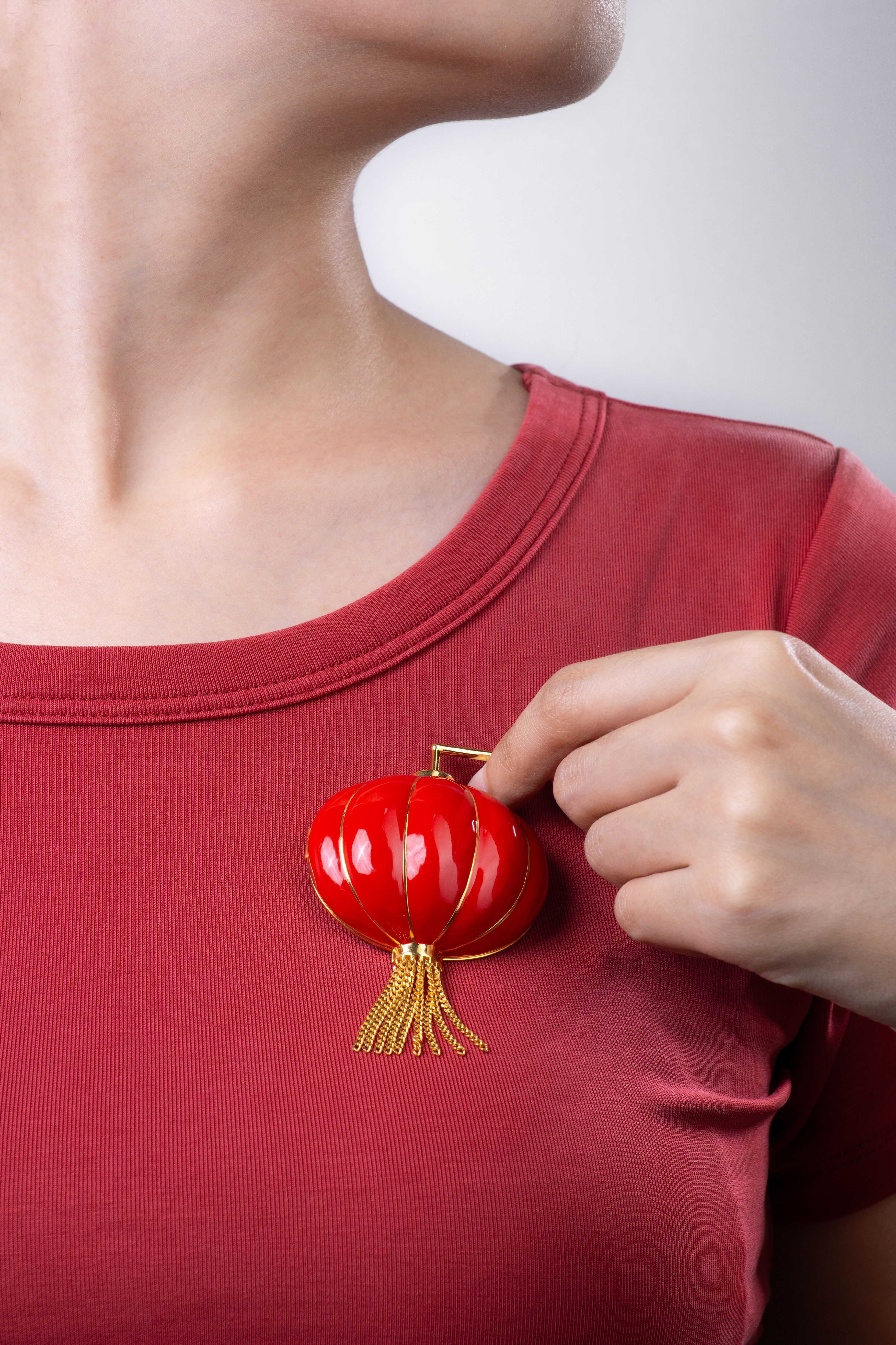 This brooch draws inspiration from Chinese lanterns, ingeniously opening a new chapter of the fusion of tradition and fashion. When creating, the designer ingeniously interweaves traditional elements with exquisite jewelry craftsmanship, striving to carry the cultural heritage of the East within a small space.