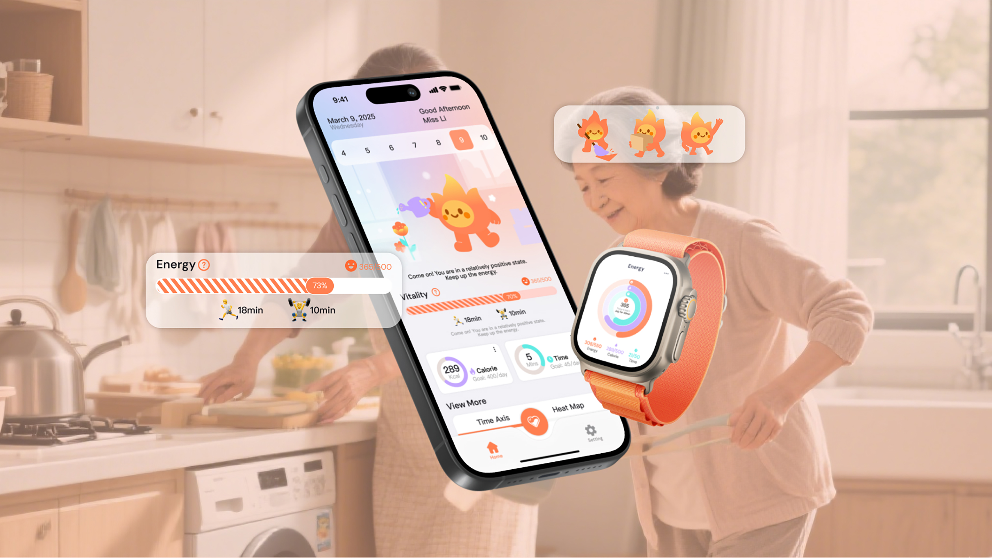 HealthBloom is an innovative household activity tracking and guidance system specifically designed for middle-aged women. By syncing a smartwatch with a mobile app, it transforms daily chores into recordable, feedback-enabled, and instruction-guided health exercises. This breaks the conventional notion that "exercise equals going to the gym", reshaping a new scenario for family health.