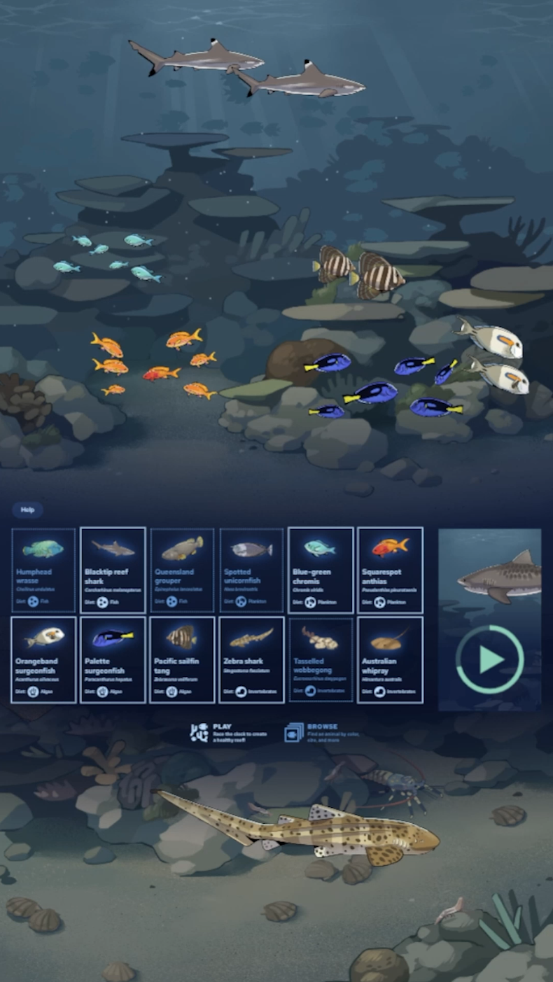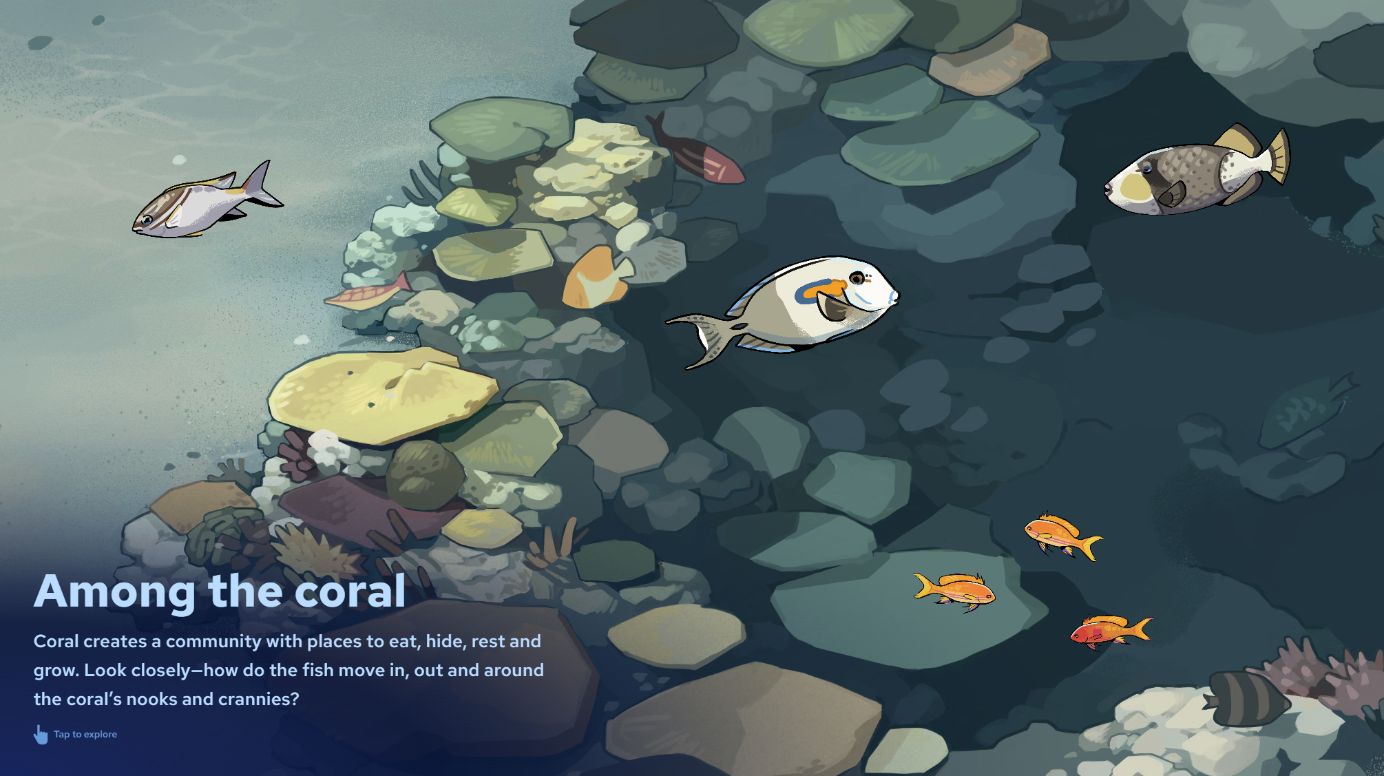 Algae blooms, food scarcity, murky waters, and sparkling seas all emerge based on the visitor’s choices as they play. Behind the scenes, we bypass the platform’s typical constraints using cutting-edge optimizations, allowing us to create a dynamic scene full of life.