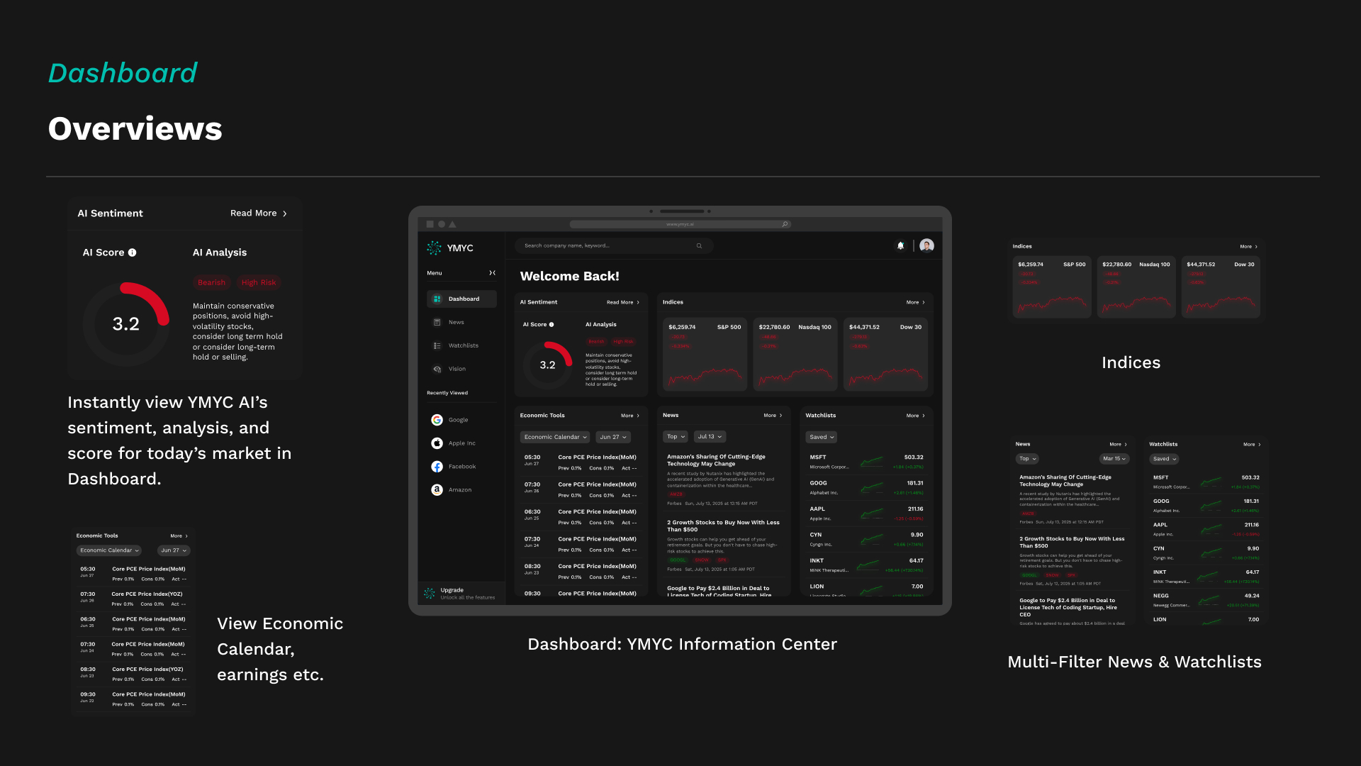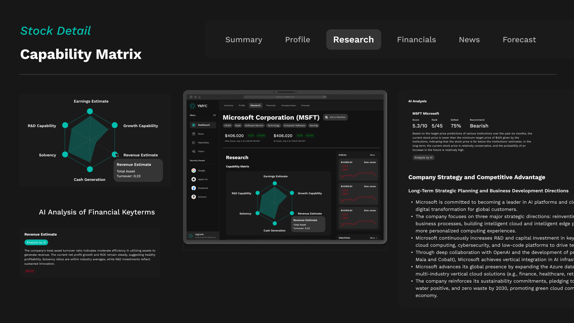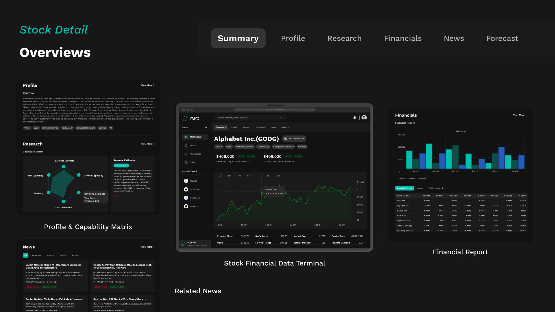 By combining cutting-edge AI capabilities with a refined, user-first design system, YMYC.AI redefines how market intelligence is experienced. The result is a powerful yet intuitive web application that embodies the future of financial decision support — intelligent, visually engaging, and effortless to use.