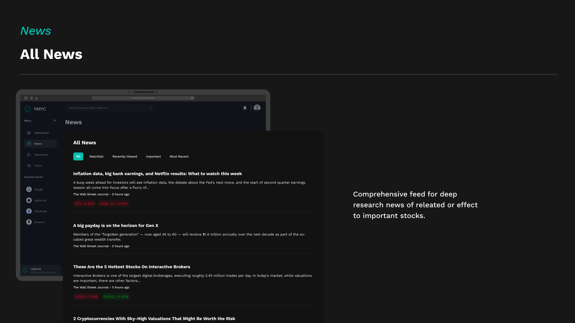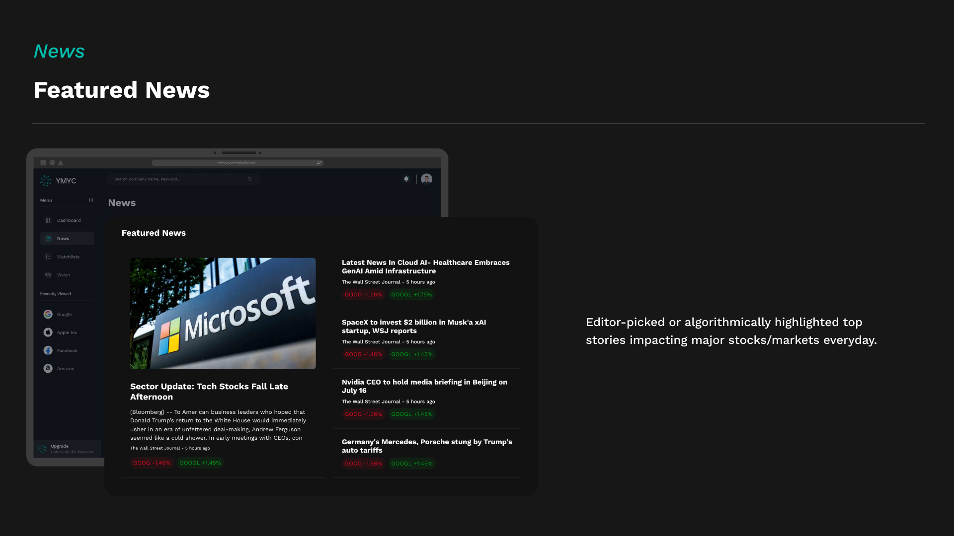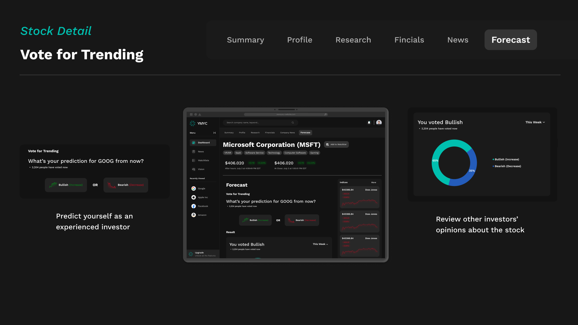 By combining cutting-edge AI capabilities with a refined, user-first design system, YMYC.AI redefines how market intelligence is experienced. The result is a powerful yet intuitive web application that embodies the future of financial decision support — intelligent, visually engaging, and effortless to use.