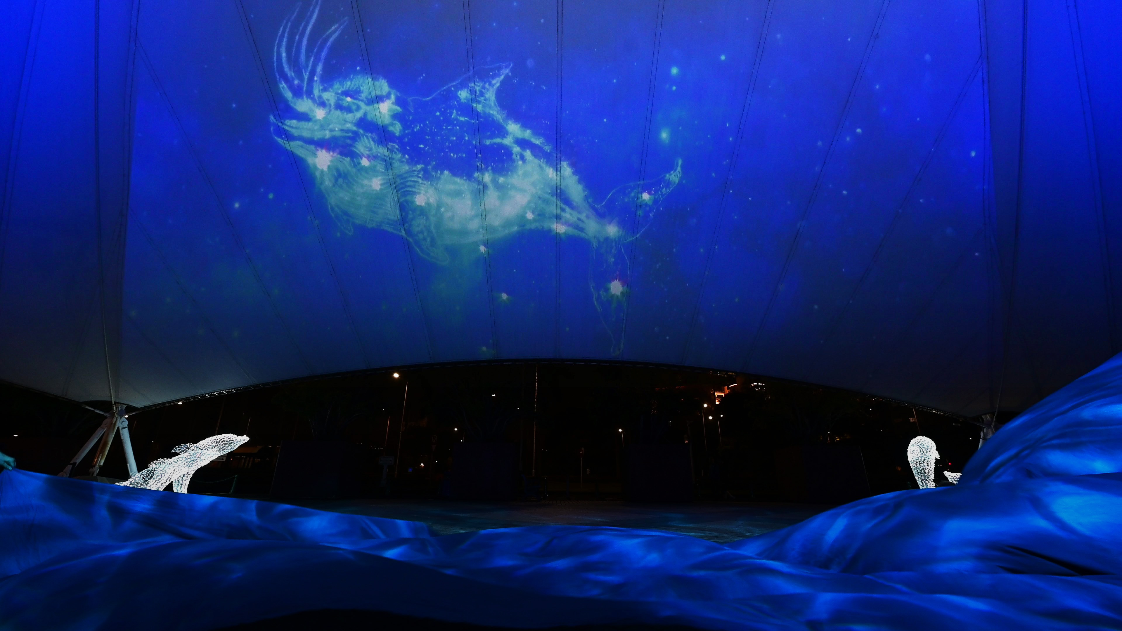Using the last two lines of the Yuan dynasty poet Tang Gong's poem "On the Green Grass Lake of Longyang County" — "After getting drunk, I don't know if the sky is in the water, the whole boat is filled with clear dreams pressing down on the Milky Way" as inspiration for naming and creating a similar artistic conception.