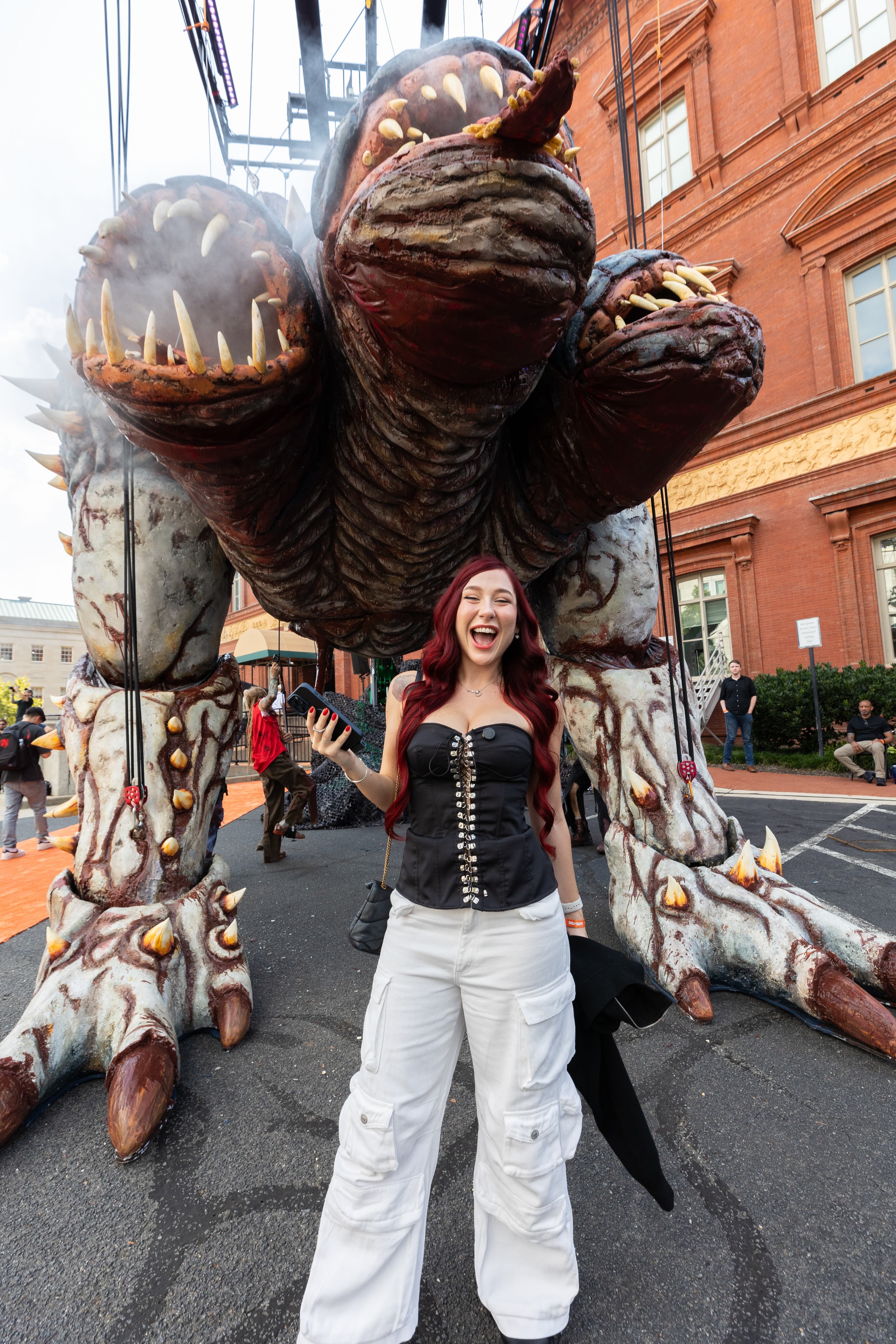 At the heart of the venue stood an awe-inspiring three-story Mega Abomination zombie, a towering, animatronic recreation of one of the franchise’s most fearsome enemies. Alongside it, a Call of Duty motorcade procession and cinematic set pieces brought the Black Ops world to life in vivid detail.
