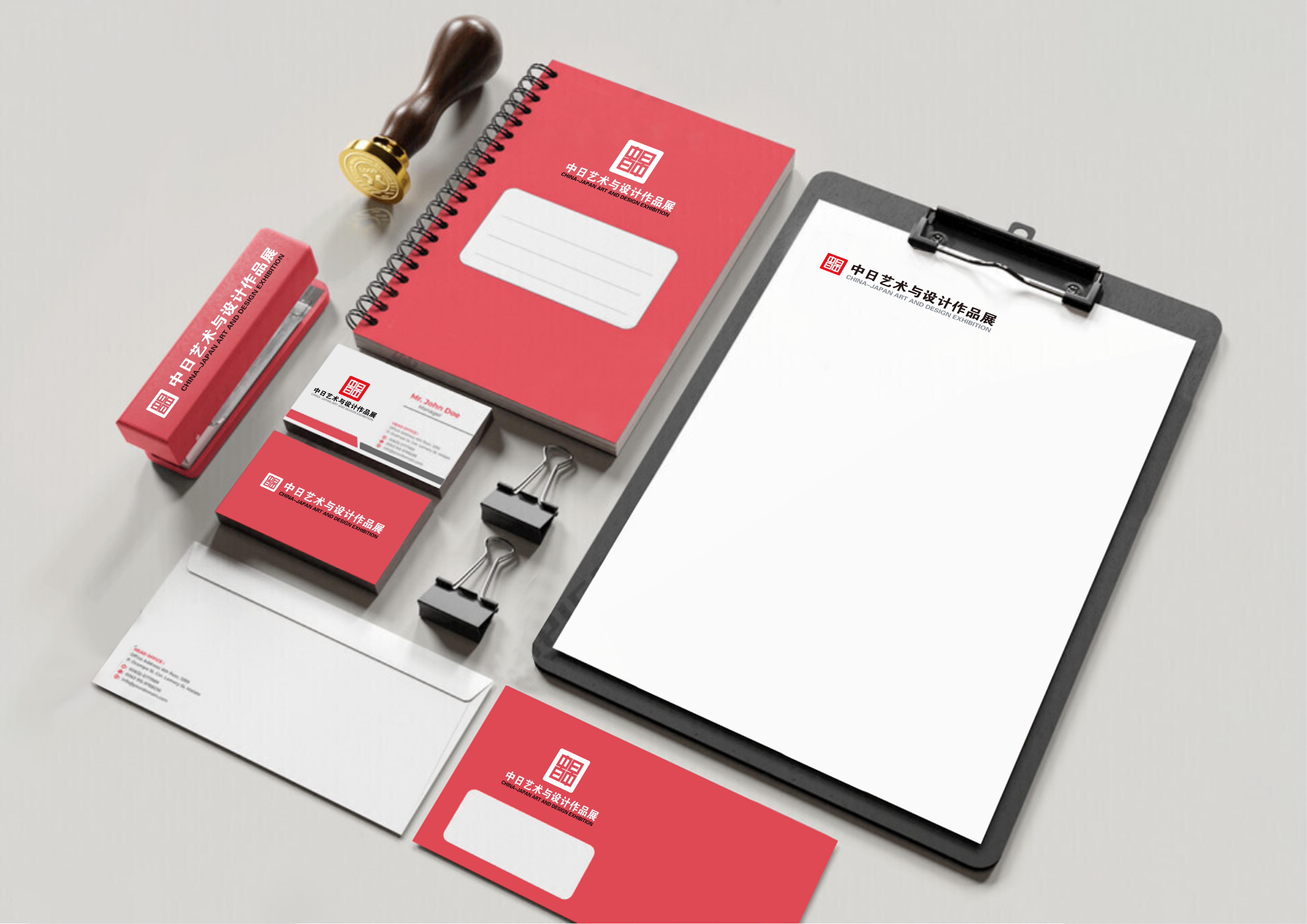 This VI visual identity system is founded on the theme of cultural symbiosis and visual dialogue, rooted in the historical connection and contemporary innovation of Chinese and Japanese art and design. It translates the exhibition spirit of communication, integration, inheritance, and innovation into a unified and recognizable visual language that reflects both tradition and modern aesthetics. At the heart of the system, the logo serves as its spiritual core. Drawing inspiration from the traditional Chinese seal, it conveys integrity, authority, and inheritance, while the square outline sets a rigorous and solemn tone suitable for the exhibition’s professional positioning. Within this framework, the creative fusion of the Chinese characters “Zhong” (China) and “Ri” (Japan) becomes the central symbol. The steady, balanced strokes of “Zhong” embody inclusiveness and cultural depth, while the asymmetrical gap of “Ri” introduces dynamism and vitality. This subtle intervention creates a spatial rhythm of virtual and real, symbolizing harmony in diversity and suggesting that dialogue thrives on difference and imagination. The result is a powerful emblem that functions as a visual bridge between two artistic traditions. To ensure consistency and adaptability, the system is supported by standardized elements. Typography combines a Chinese calligraphic style that blends traditional charm with contemporary simplicity, alongside a modern sans serif English font for bilingual clarity. The color palette is based on vermilion red, representing passion and cultural heritage, paired with Japanese paper white, symbolizing purity, and accented with dark gray for balance and visual comfort. Auxiliary graphics are derived from the distinctive gap of “Ri,” extended into irregular lines, blank spaces, and gradients that enrich layouts while reinforcing unity across applications. The identity extends seamlessly into multiple scenarios, including promotional materials, venue signage, and derivative products. Posters and invitations highlight the core logo with auxiliary graphics and standard colors, enhancing recognizability. Signage in the exhibition environment integrates seal outlines with bilingual characters to build scene memory, while cultural and creative products adapt the logo through scaling and color variations, ensuring both integrity and flexibility across media.