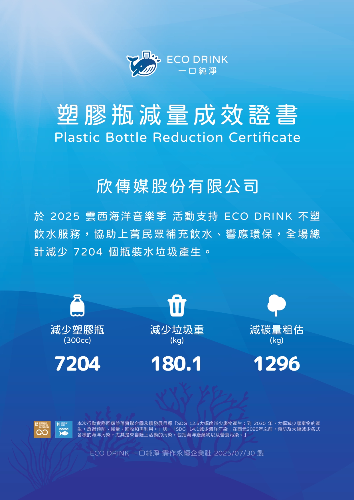 The festival embodied multiple UN Sustainable Development Goals (SDGs): 4.7 Global Citizenship Education, 6.6 Aquatic Ecosystem Protection, 8.9 Sustainable Tourism, 11.4 Cultural Heritage Preservation, 12 Responsible Consumption & Production, 13 Climate Action, 14.1 Marine Pollution Reduction, and 17 Partnerships for the Goals. Through ECO water refill stations, low-carbon transport integration, and upcycled marine waste art, the event turned “Sustainability is not just a slogan” into a visible, interactive, and lasting coastal action blueprint. Yunxi now stands as a global benchmark for sustainable music festivals — where culture, community, and conservation unite in world-class harmony.