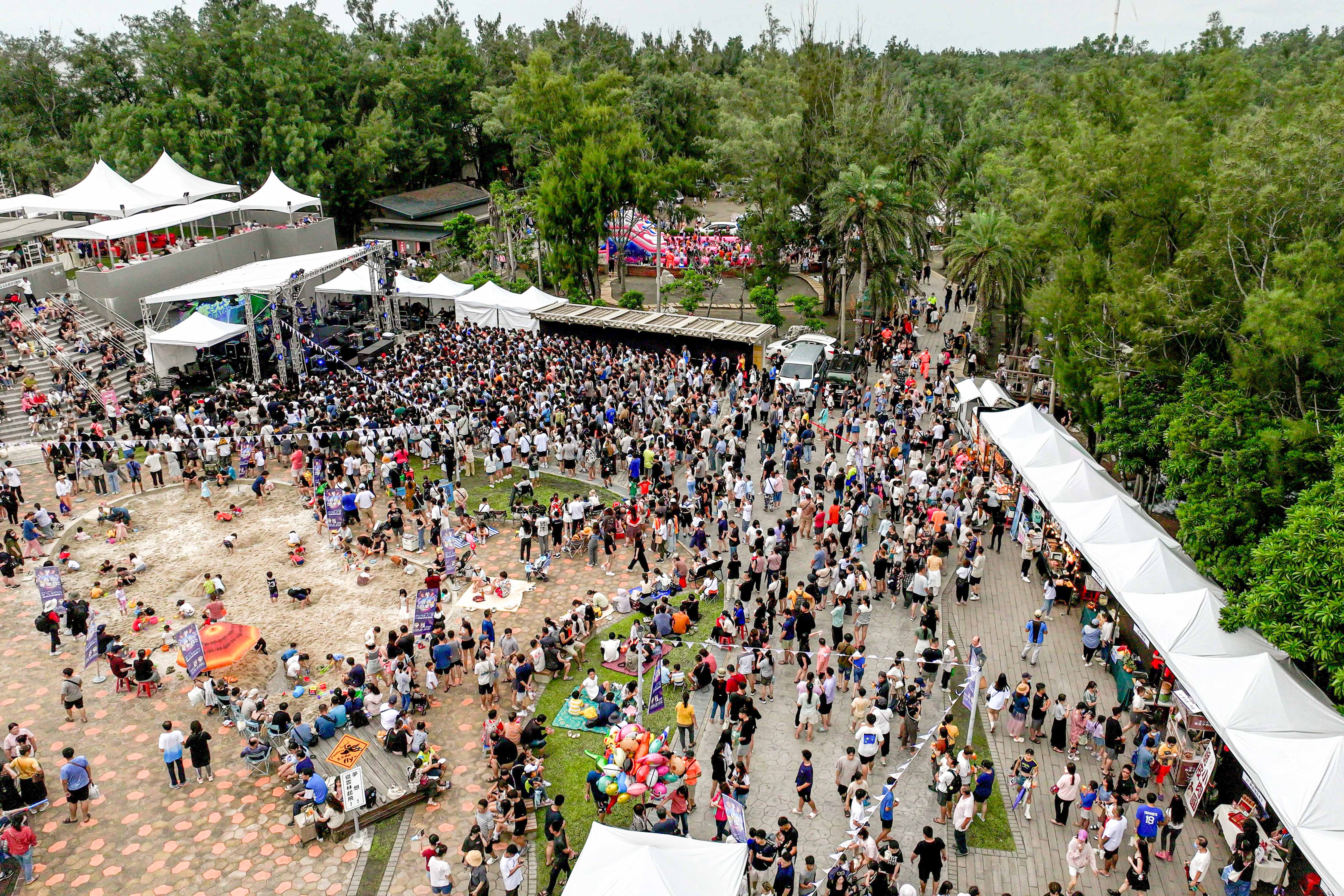 Five major zones — beach, forest, main stage, water park, and market — offered non-stop experiences. From live international sand sculpting and marine waste art installations to SUP paddling, kite DIY, and family water play, sustainability became a collective action everyone could join. The stage design blended seamlessly with the coastal skyline, while the day-to-night music feast was complemented by 200+ local stalls showcasing Yunlin flavors, artisan crafts, community dishes, and the “Yunlin 100 Bowls” pop-up, giving visitors a full sensory and cultural immersion.