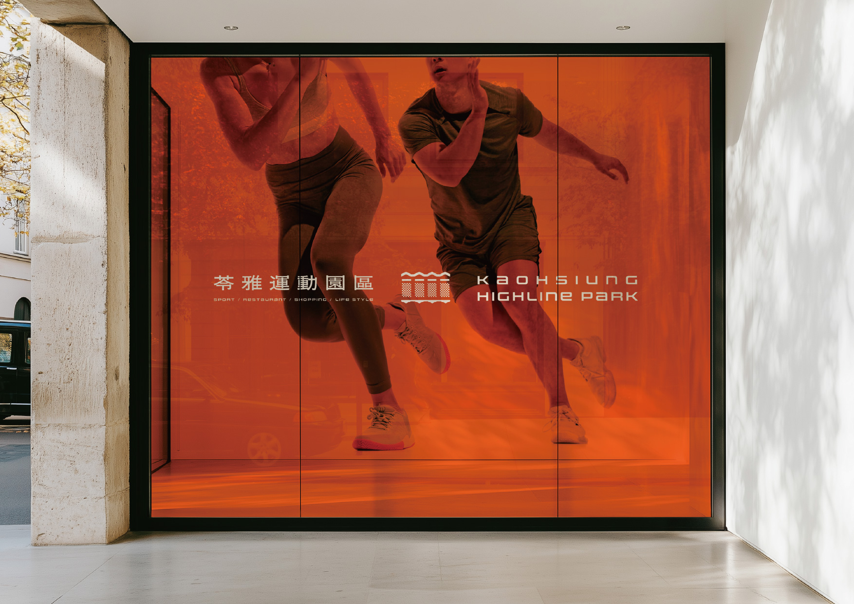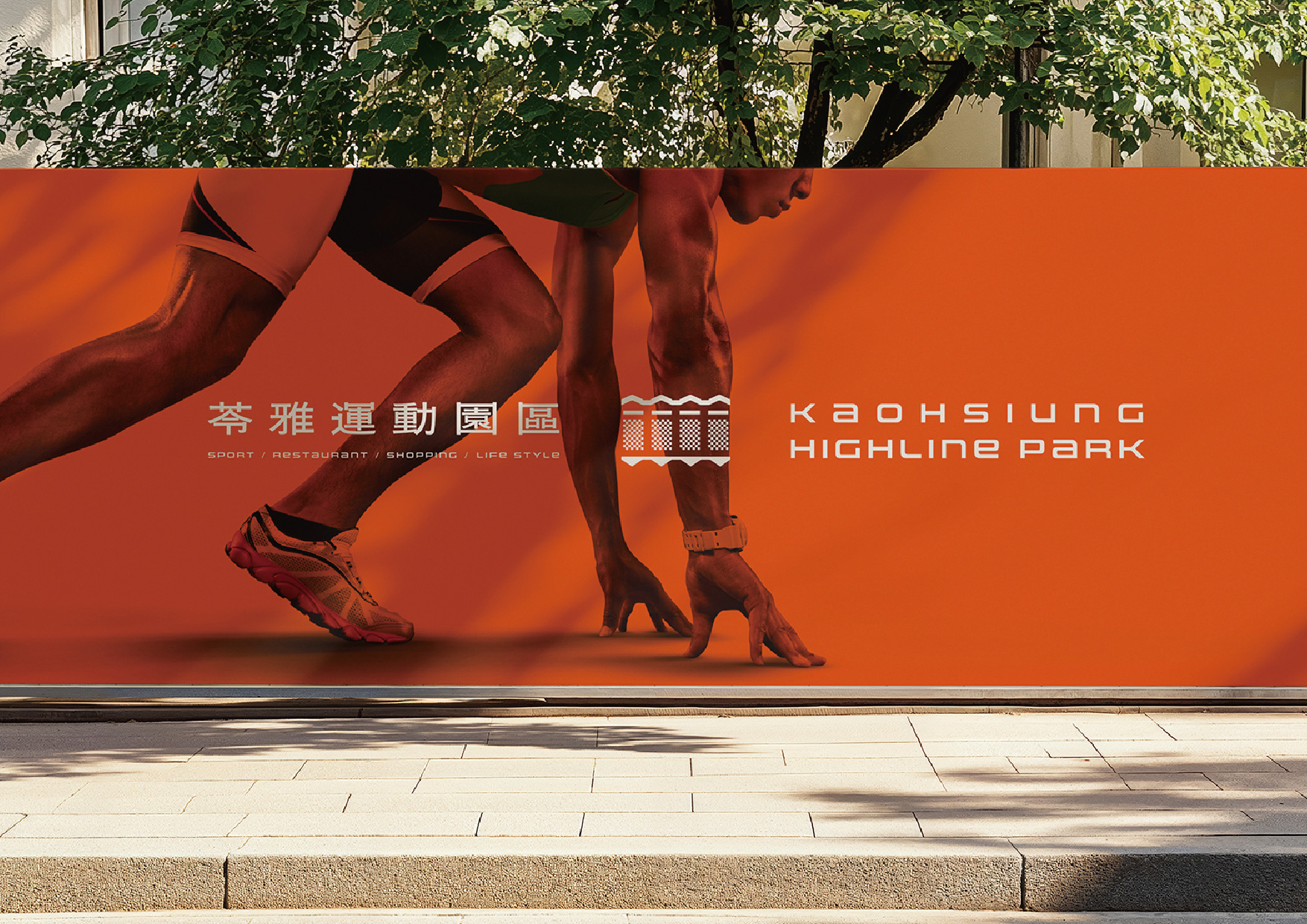「 Kaohsiung Highline Park」, planned by the Kaohsiung City Government, repurposes an old sports stadium, breaking the boundaries of traditional athletic facilities. Its brand identity integrates the original architectural form with concrete blocks salvaged from the demolished stadium to create a gabion wall concept, forming an innovative fusion of old and new. Vibrant orange hues resonate with the architecture, while the typography design is closely linked to the building's exterior. This reimagined space delivers a fresh experience, establishing itself as a pioneering model for revitalizing sports venues in Taiwan.