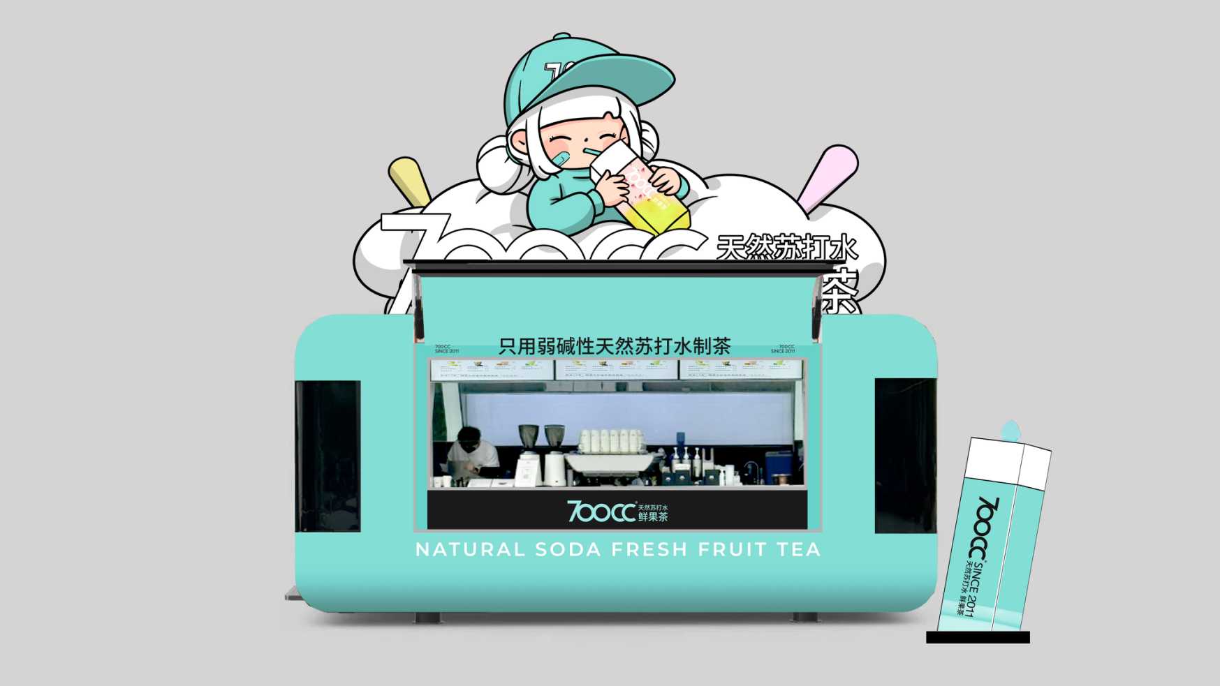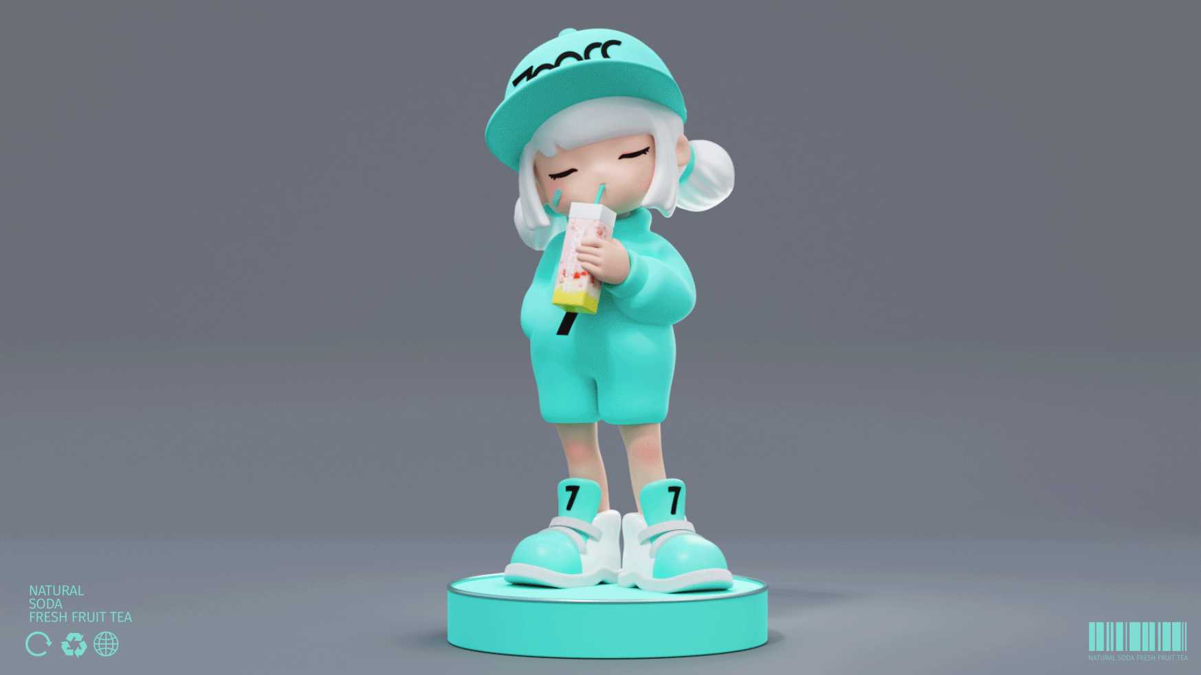 A “Water Sprite” caught in a stylized, street-cool moment of sipping 700CC. The character is vivid, approachable and born for social feeds, acting as an emotional bridge between the brand and its tribe. Together, the sprite and the aqua palette lock in 700CC’s unique persona and shareability in the crowded tea market.