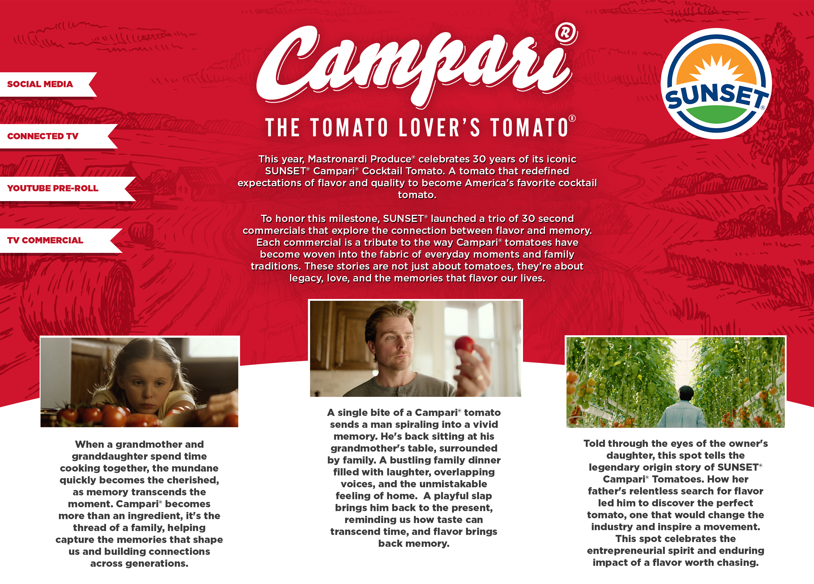 Each commercial is a tribute to the way Campari® tomatoes have become woven into the fabric of everyday moments and family traditions. These stories are not just about tomatoes, they're about legacy, love, and the memories that flavor our lives.