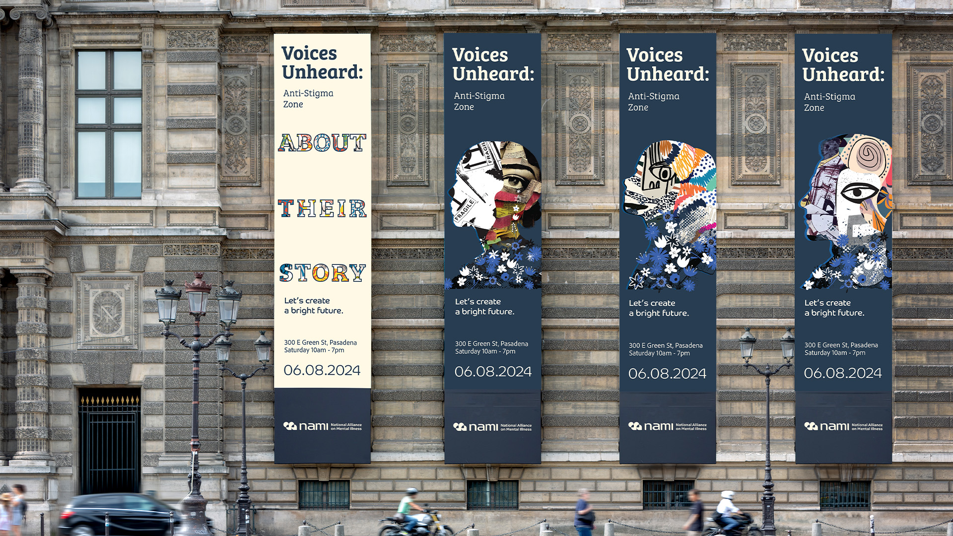 This project reimagines the brand identity of the National Alliance on Mental Illness (NAMI), one of the largest mental health support organizations in the U.S. Grounded in market research on the mental health landscape and Gen Z audiences, the new identity adopts a collage style, showcasing how many individuals experiencing mental illness describe themselves—fragmented, yet striving to piece themselves back together. By embracing this identity system, the refreshed branding increases NAMI’s visibility, resonates with target communities, and encourages society to prioritize mental health.