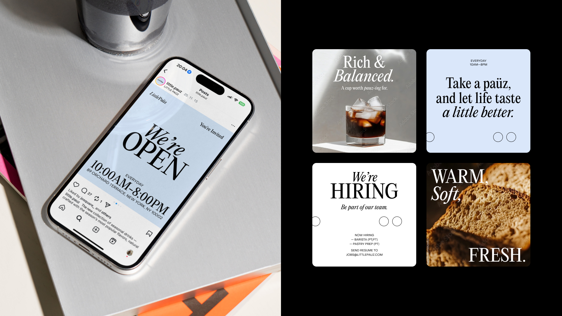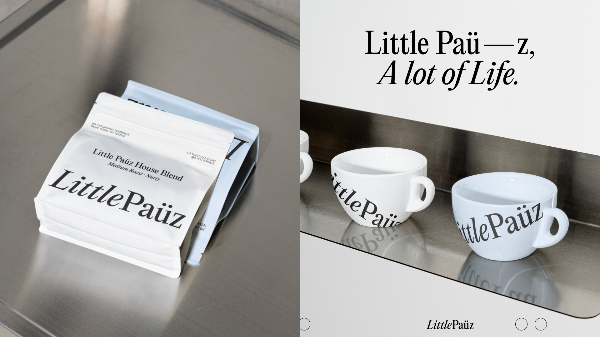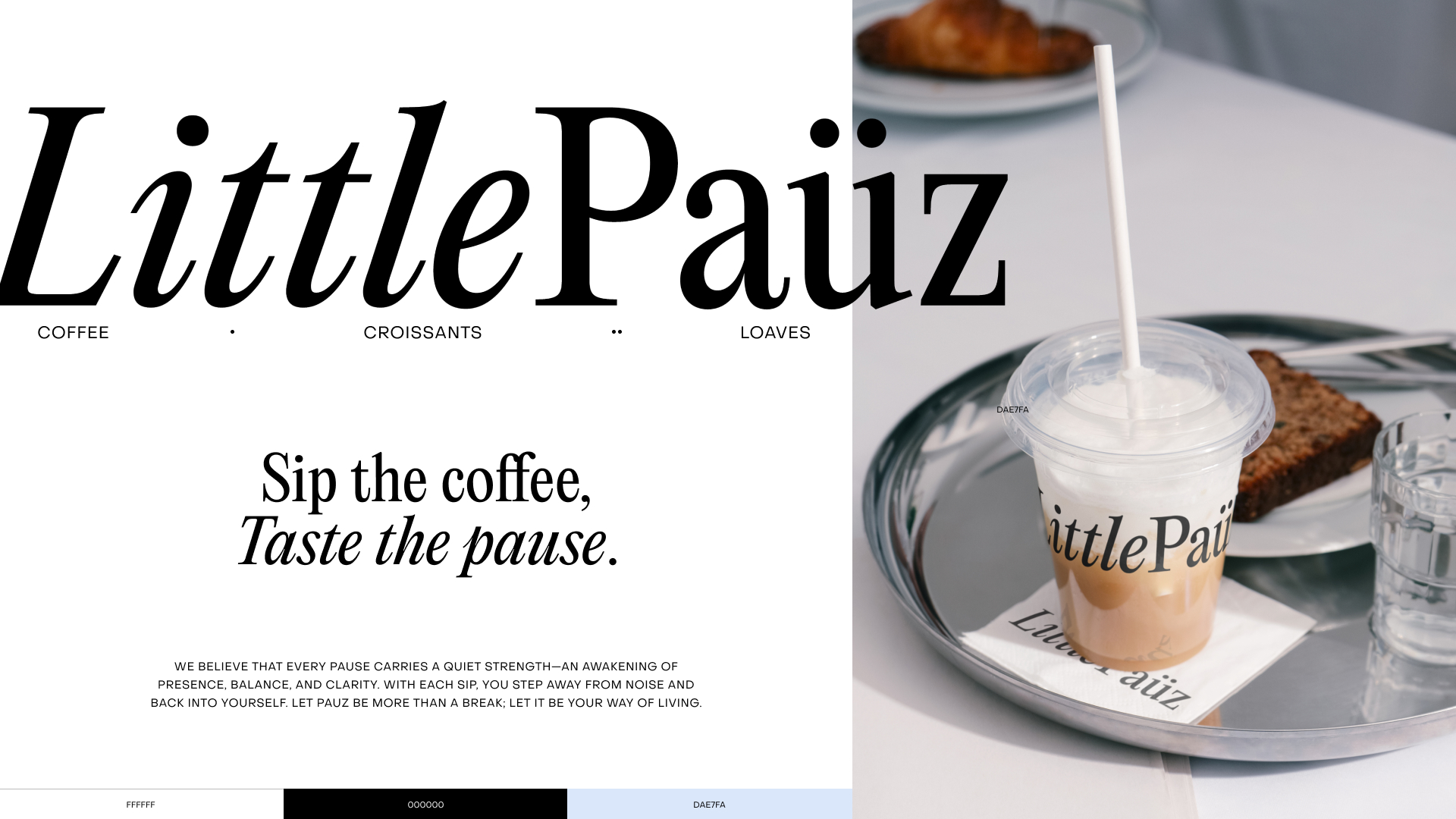 Little Paüz is a café brand created around the idea of “Pause,” a brief, restorative break within today’s fast-paced coffee culture. The brand identity draws on a refined monochrome base accented with pastel blue, expressing both calm simplicity and quiet sophistication. The umlaut over the “ü” invites a slower reading of the name, reinforcing the concept of lingering in the moment.