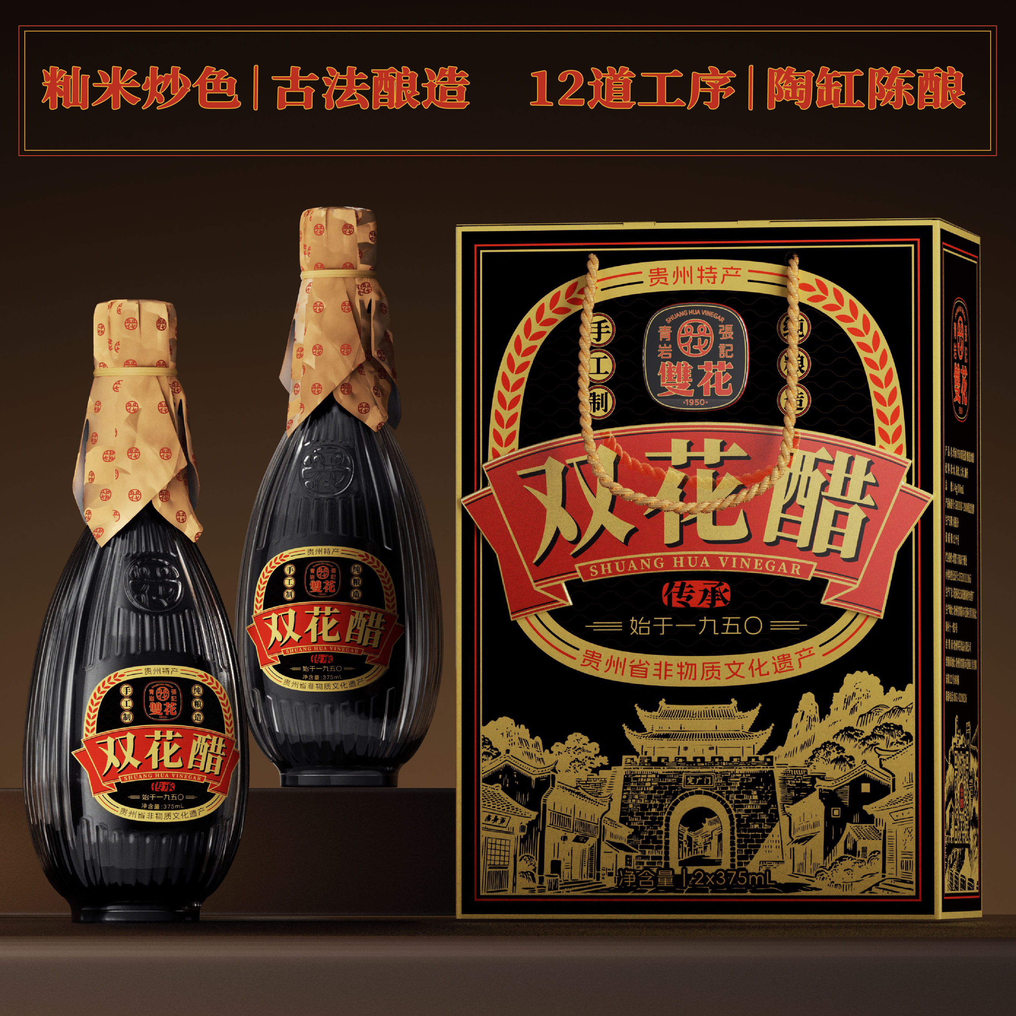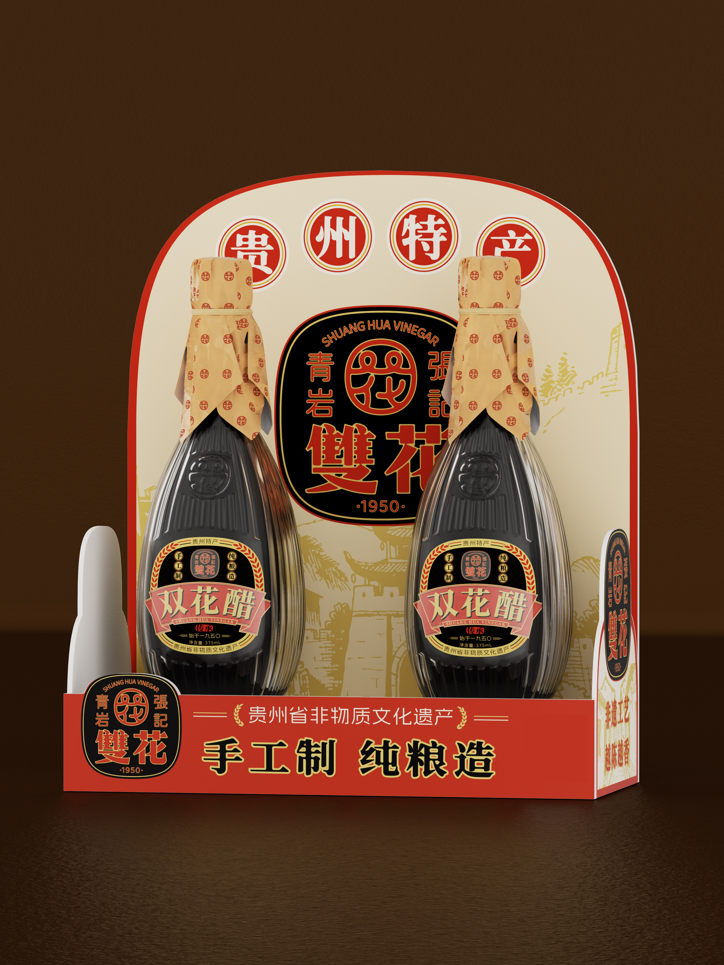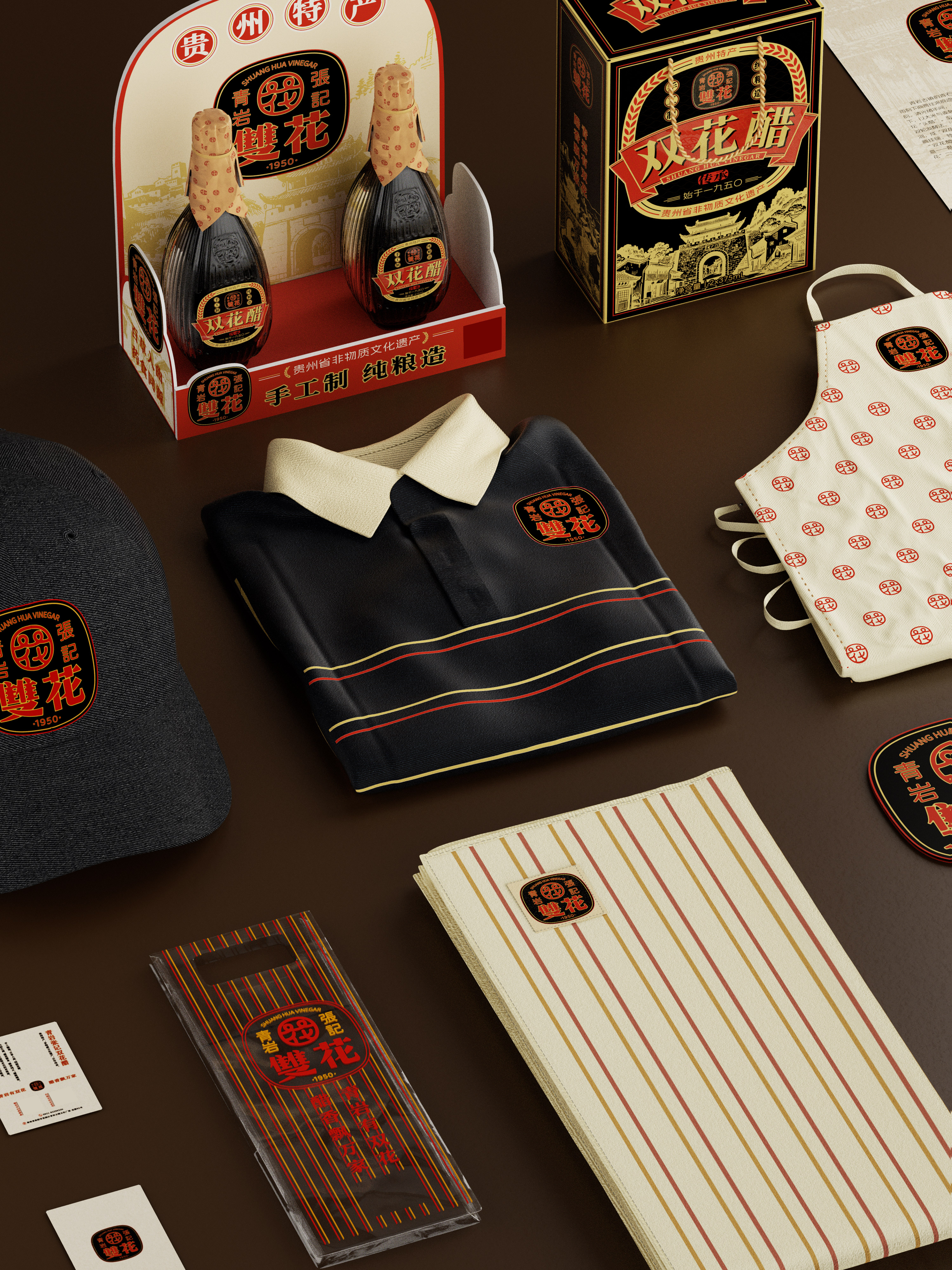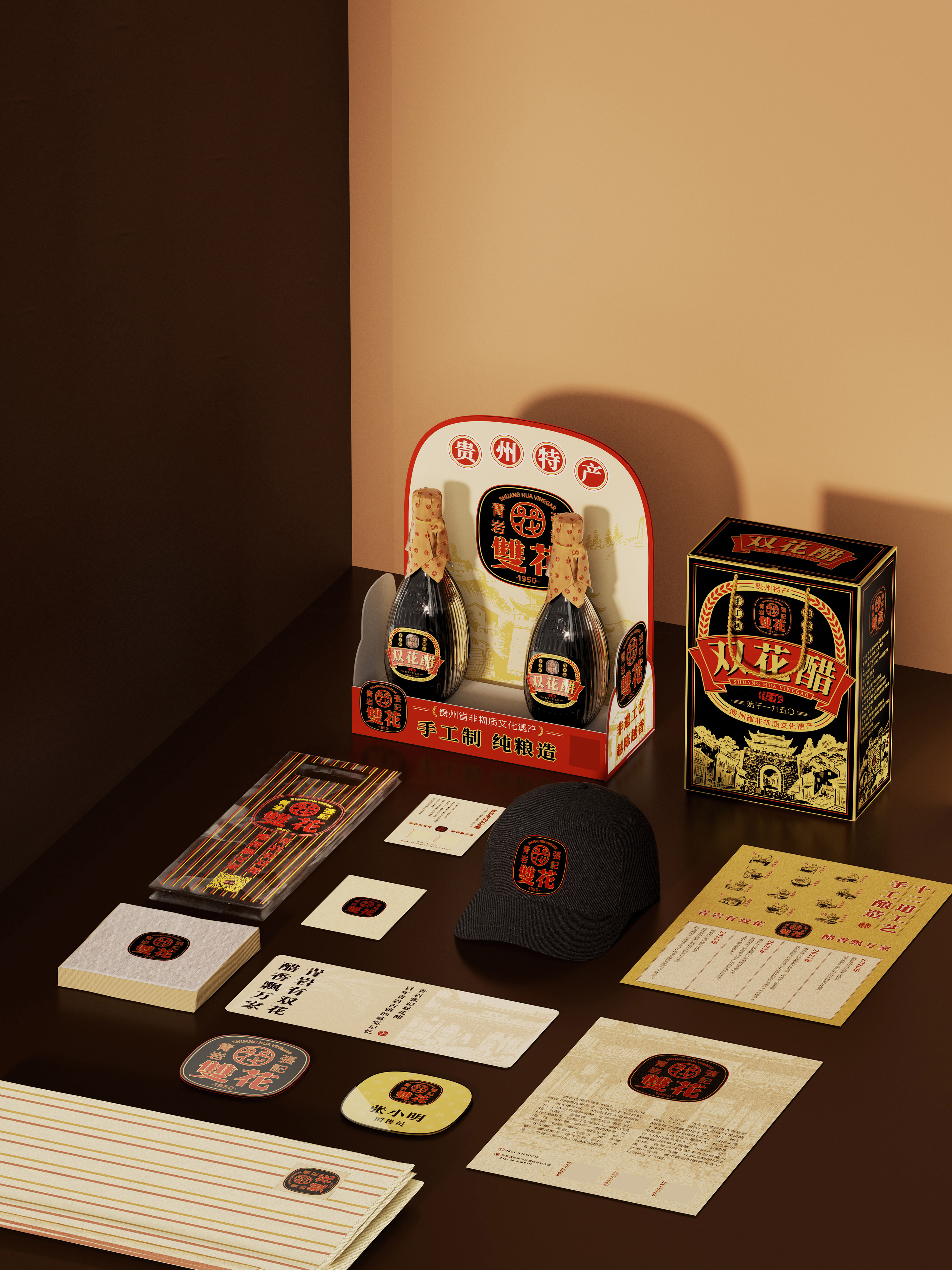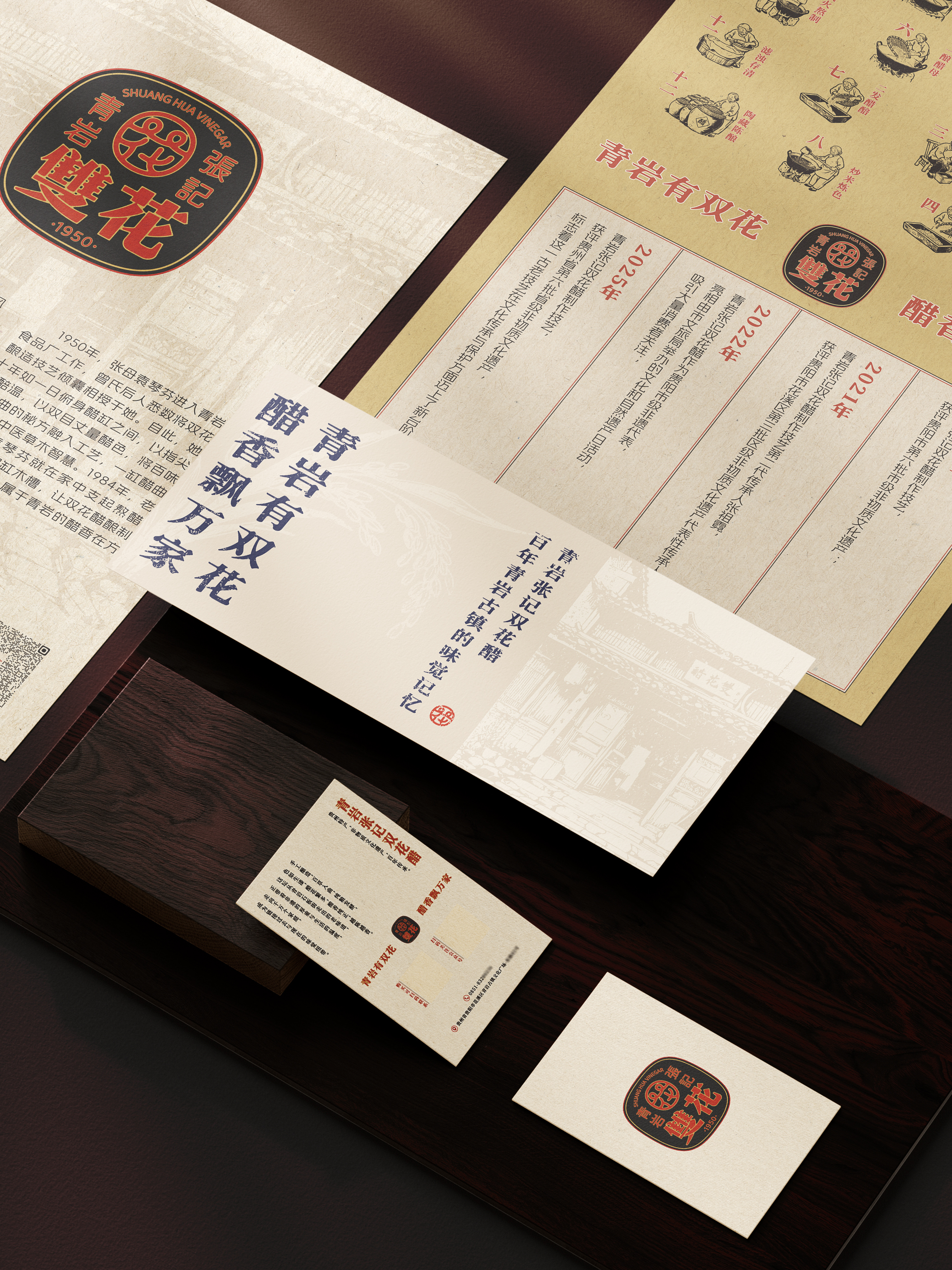 This project establishes a comprehensive brand identity for Qingyan Zhangji Shuanghua Vinegar—a recognized intangible cultural heritage of Guizhou Province. The design translates its profound local culture and unique brand essence into a visual language that resonates with contemporary audiences, creating a rich and compelling brand narrative.