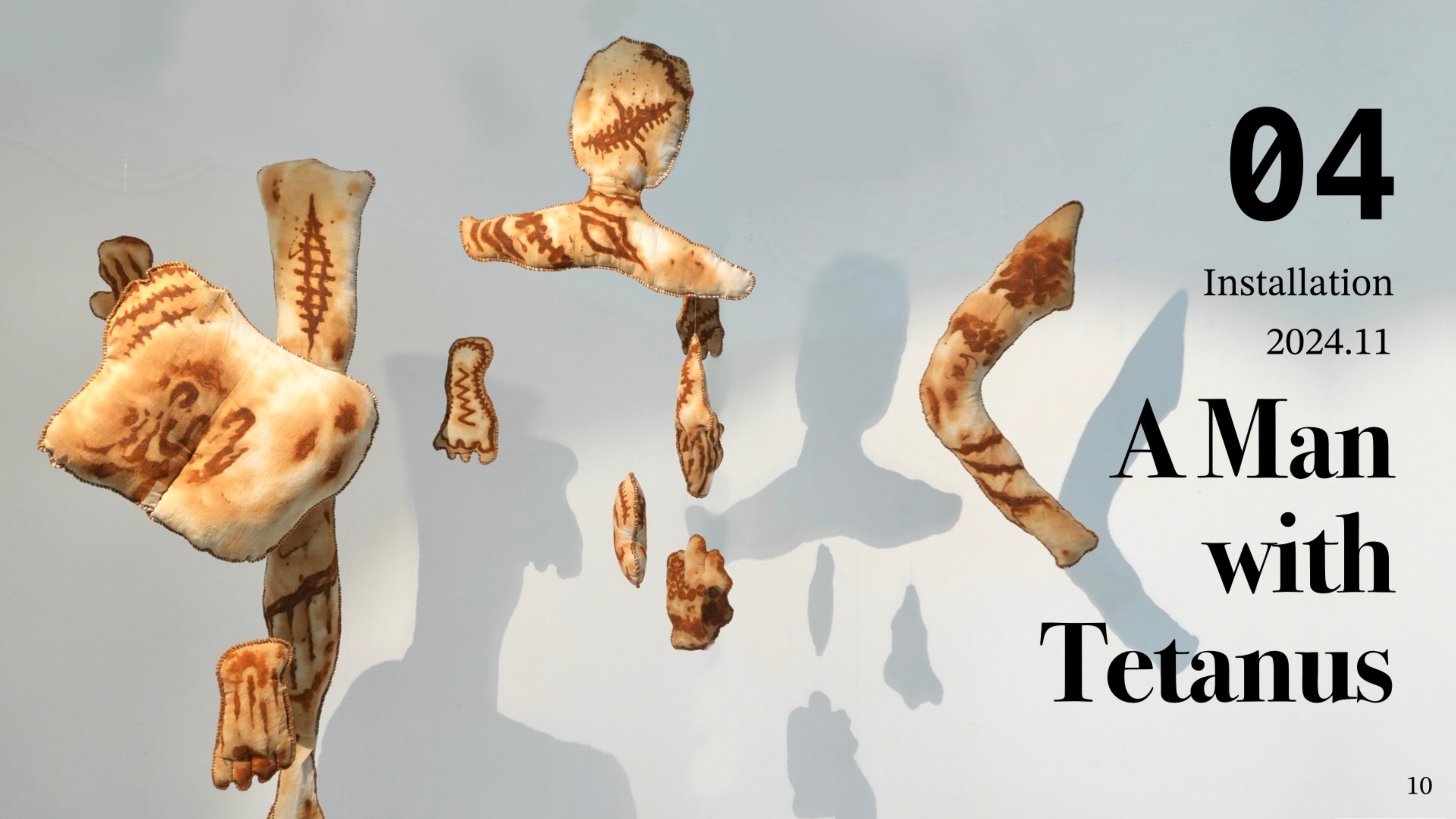 Inspired by tetanus, this piece investigates the relationship between superficial wounds and bacteria found in rust.