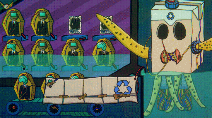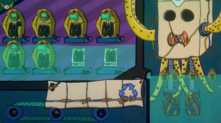 It’s a game about cycles: of work, rest, and disappearance. People arrive, are consumed, and returned—like waves cresting and collapsing. You tend to them, but the machine is never satisfied; it drains and watches, punishing those who pause. Some sink, some rise again, some vanish forever. Your task isn’t to win, but to prolong survival against an endless hunger. It is a ritual of balance, a fragile dance between energy and erosion.