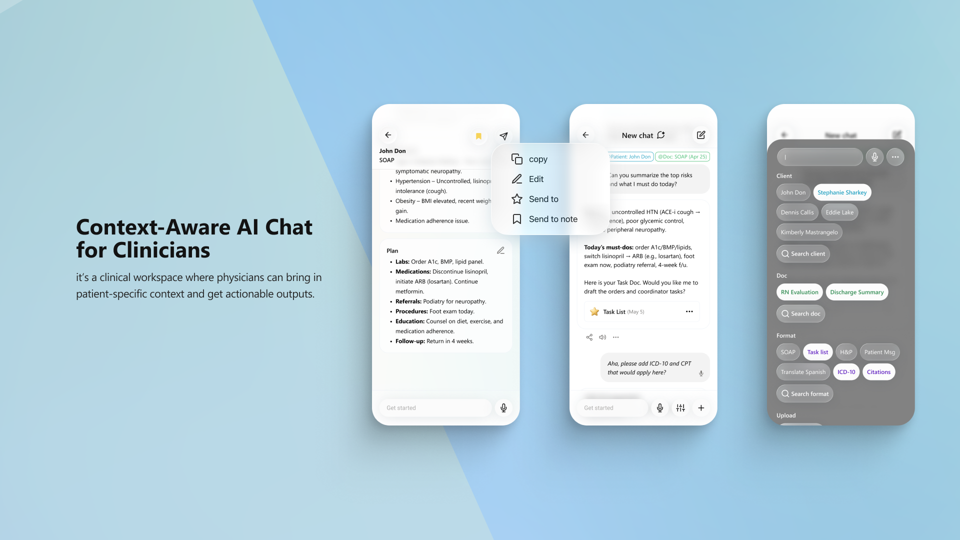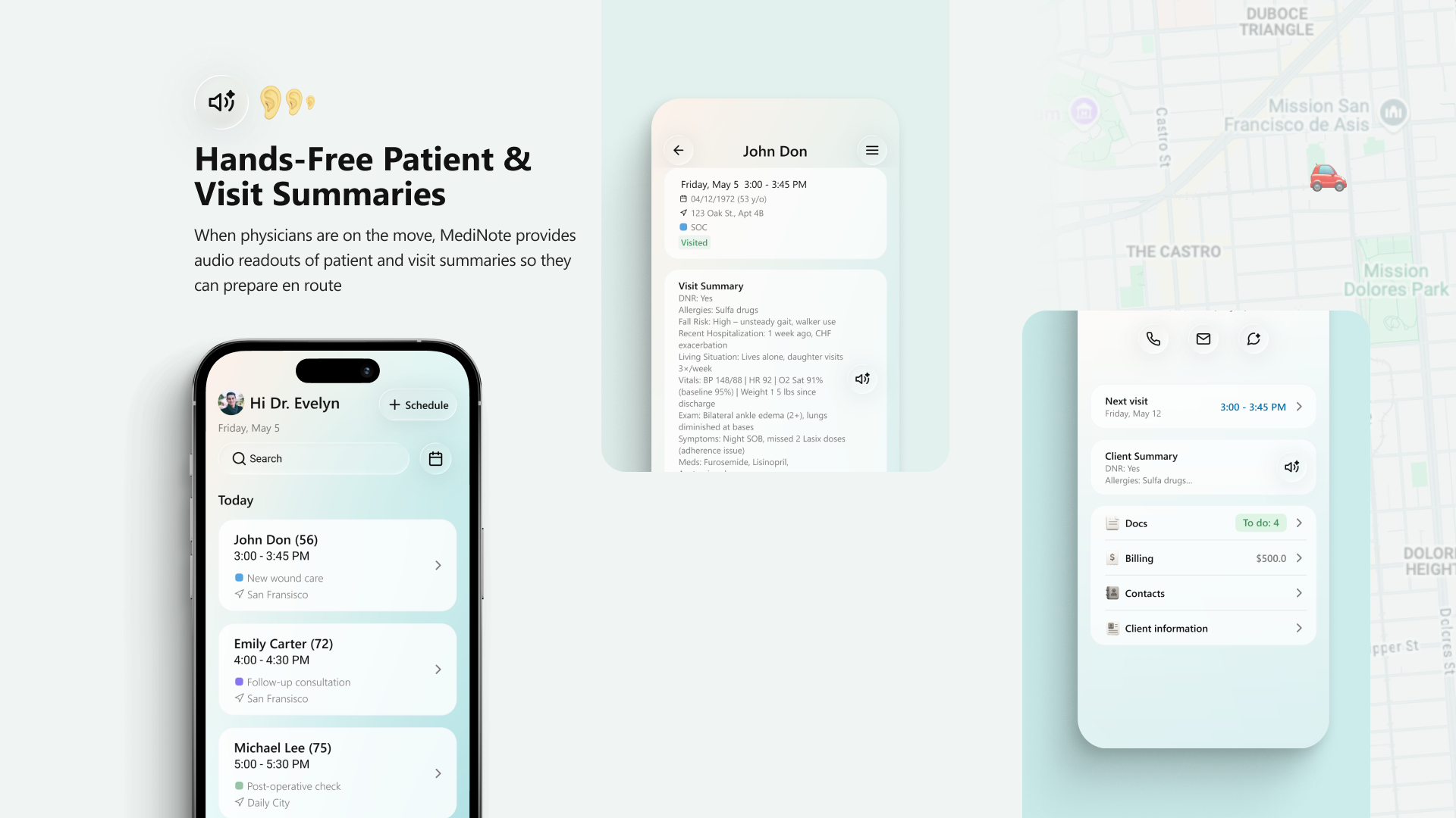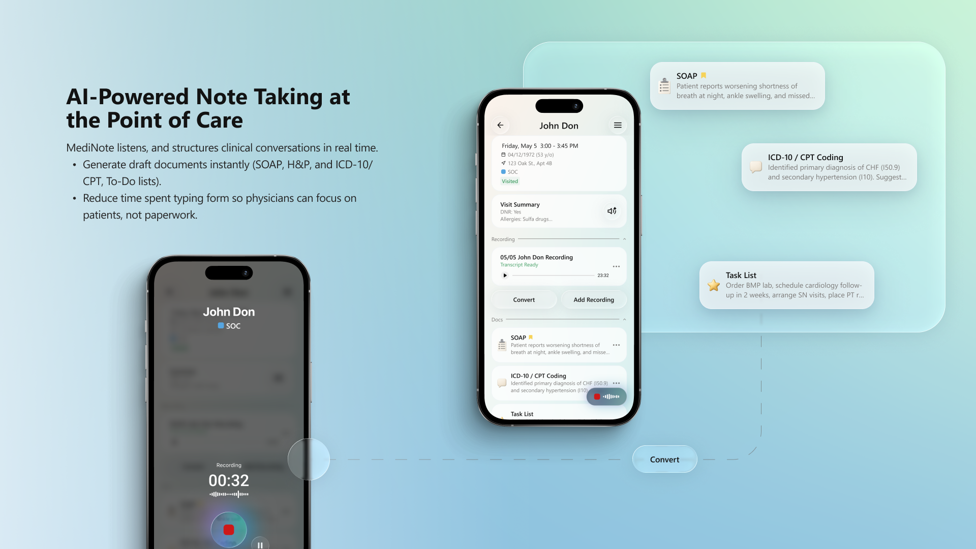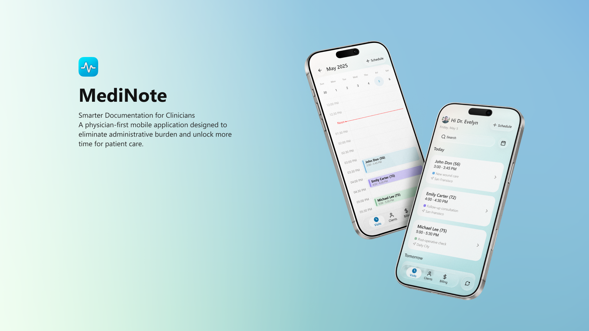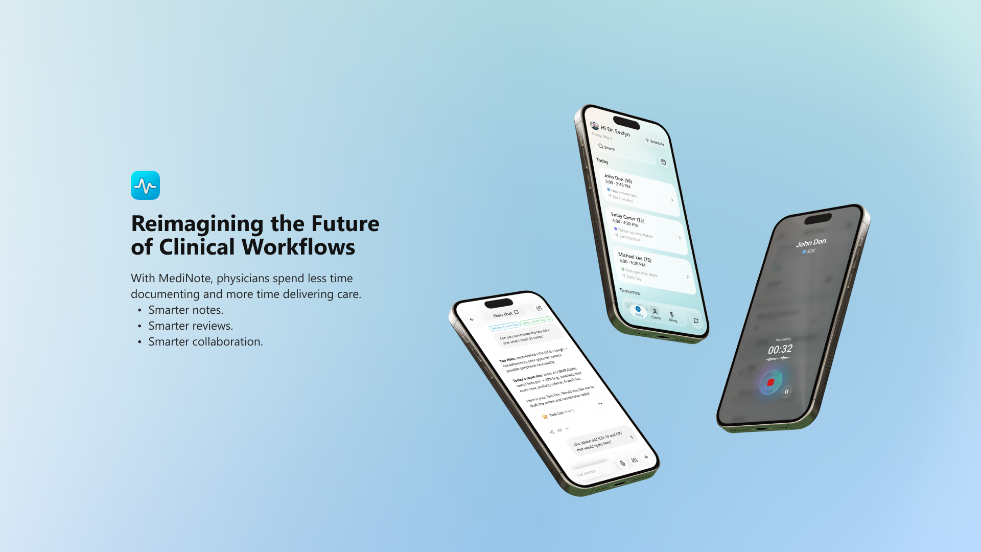MediNote is a mobile app that helps physicians save time by using AI to capture visits, transcribe conversations, and generate structured medical notes like SOAP, H&P, and ICD-10/CPT summaries. Doctors can review recordings with synced transcripts, edit AI drafts with version control, and use a smart chat assistant to bring in patients, documents, or results for quick answers, orders, and task lists. MediNote reduces paperwork so clinicians can focus more on caring for their patients.