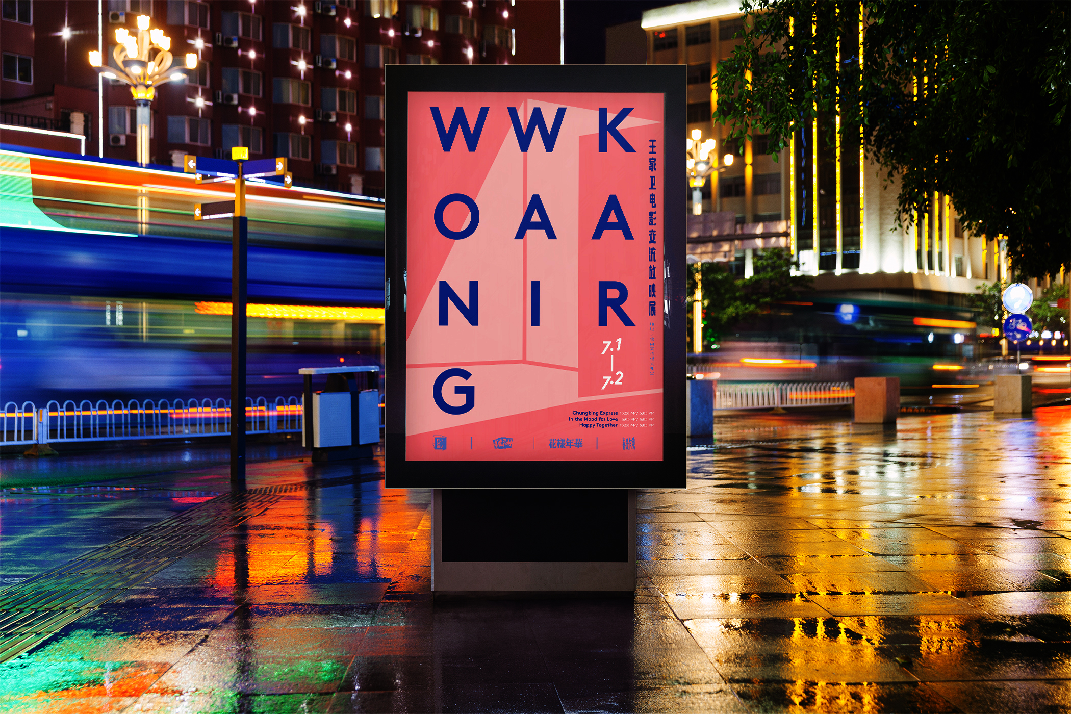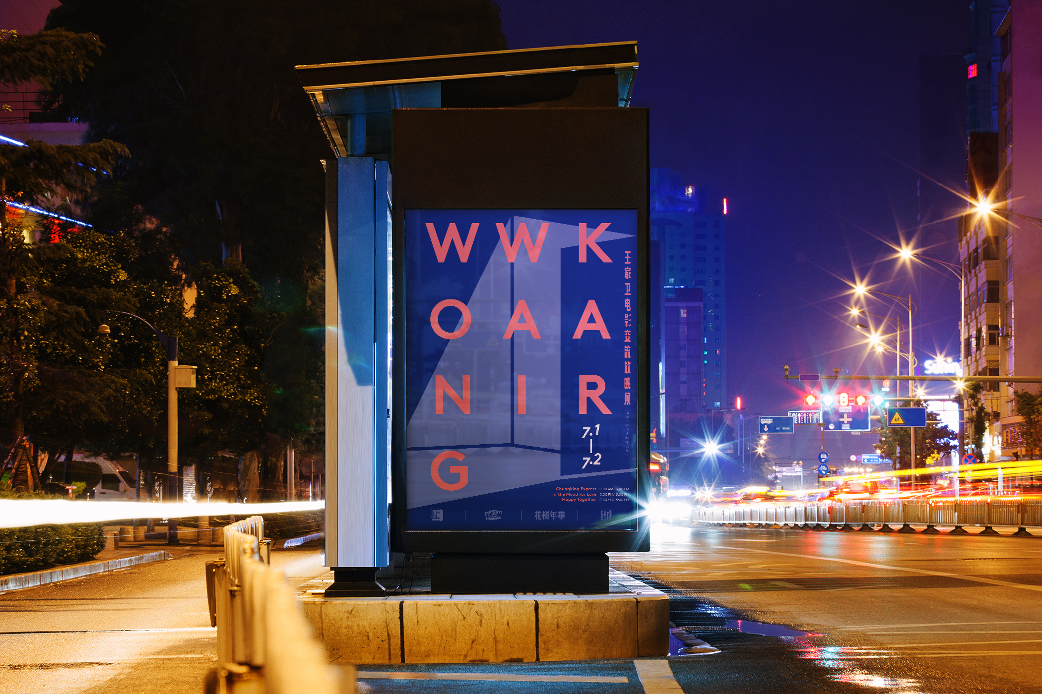 Wong Kar-wai’s films have always been timeless classics, capturing the dazzling years of Hong Kong through his unique cinematic language. I designed a special film festival for Wong Kar-wai’s fans, where they can revisit and celebrate his most iconic works. To bring this concept to life, I created posters and promotional materials that incorporate elements of local Hong Kong culture and identity. The campaign is presented through the city’s most widely accessible media channels, including bus stops, buses, and street posters. Inspired by Wong Kar-wai’s distinctive cinematic aesthetics, the event offers audiences an immersive experience into the charm of his film exhibition.