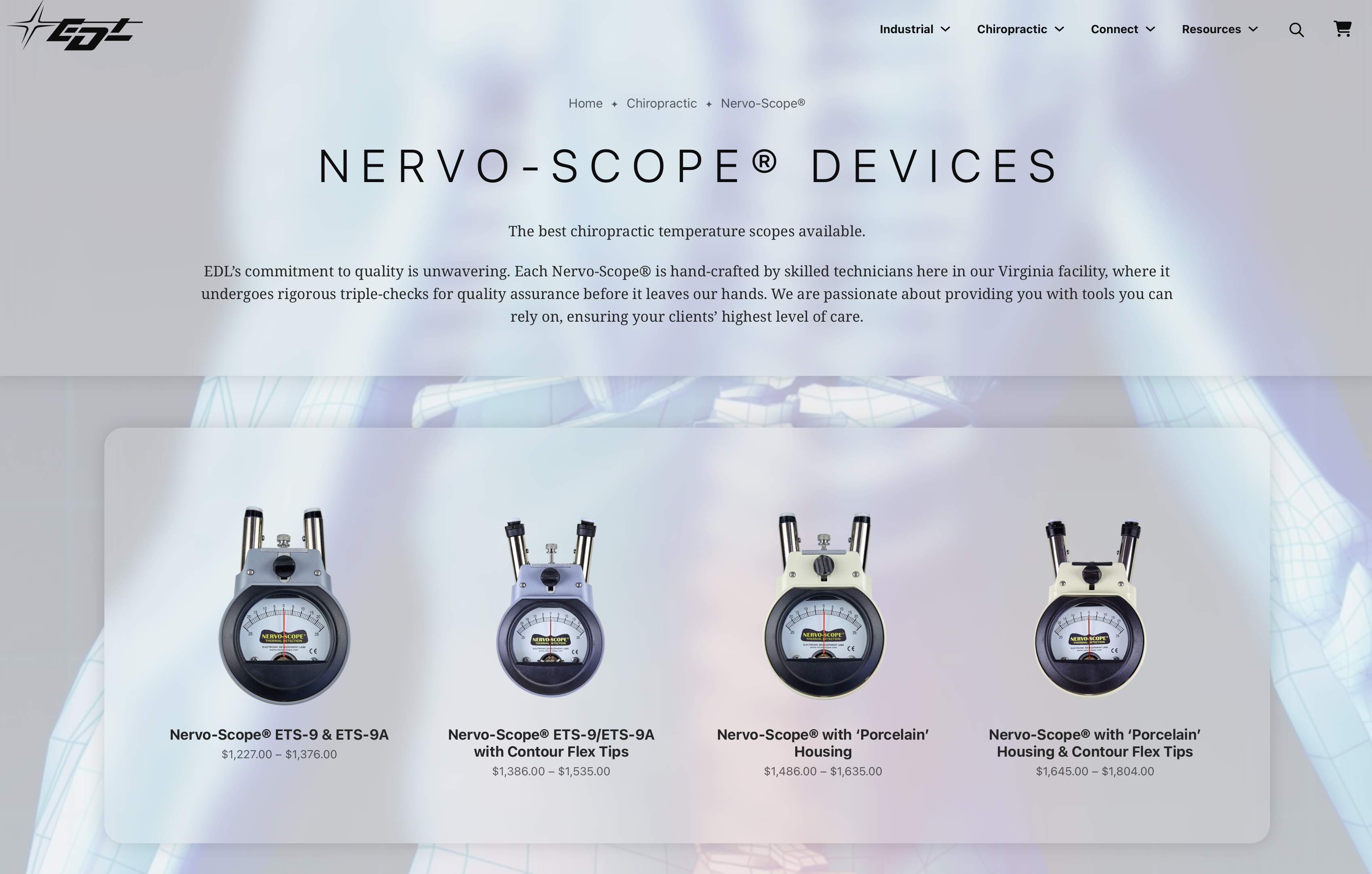 Electronic Development Labs, Inc. needed to redesign their website to highlight their product lines that serve two different industries. One product line focusing on industrial temperature calibration devices and the other focusing on chiropractic diagnostic tools. Two distinct industries served with one website.