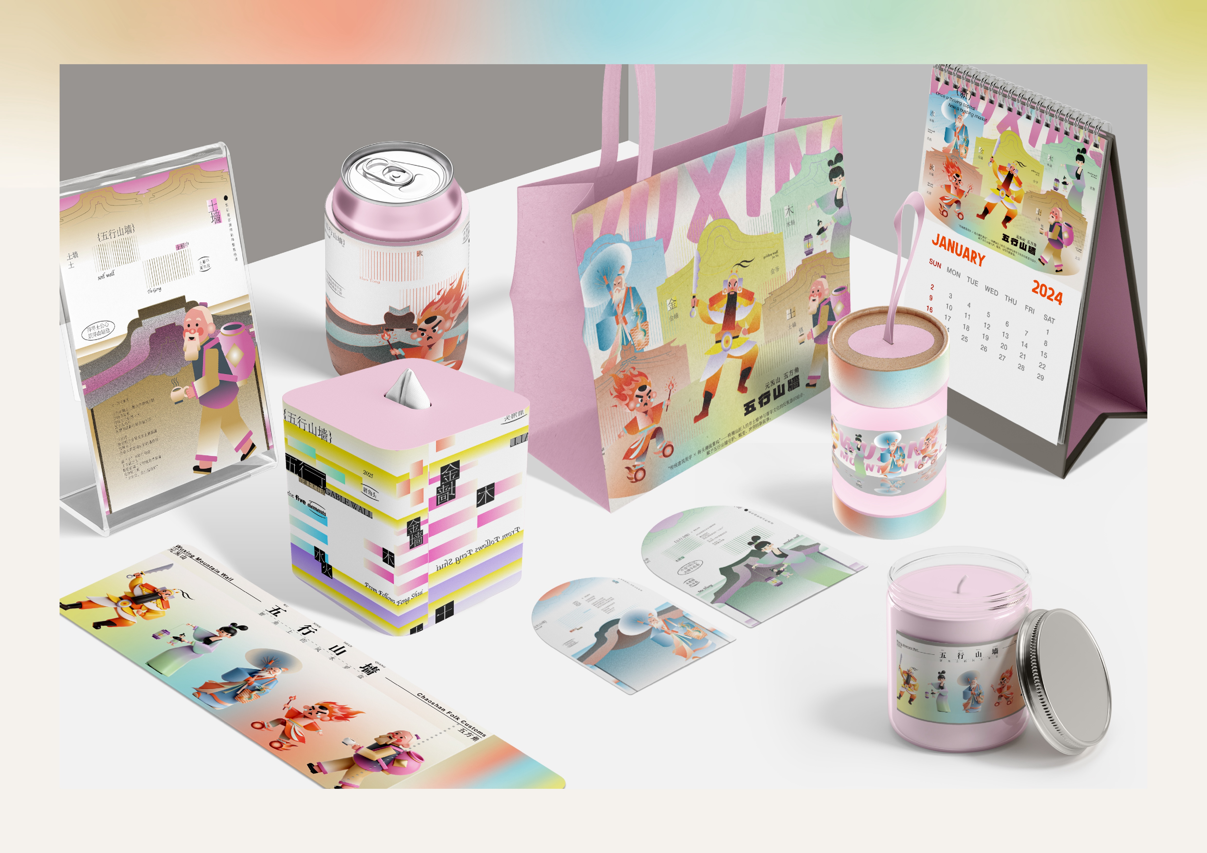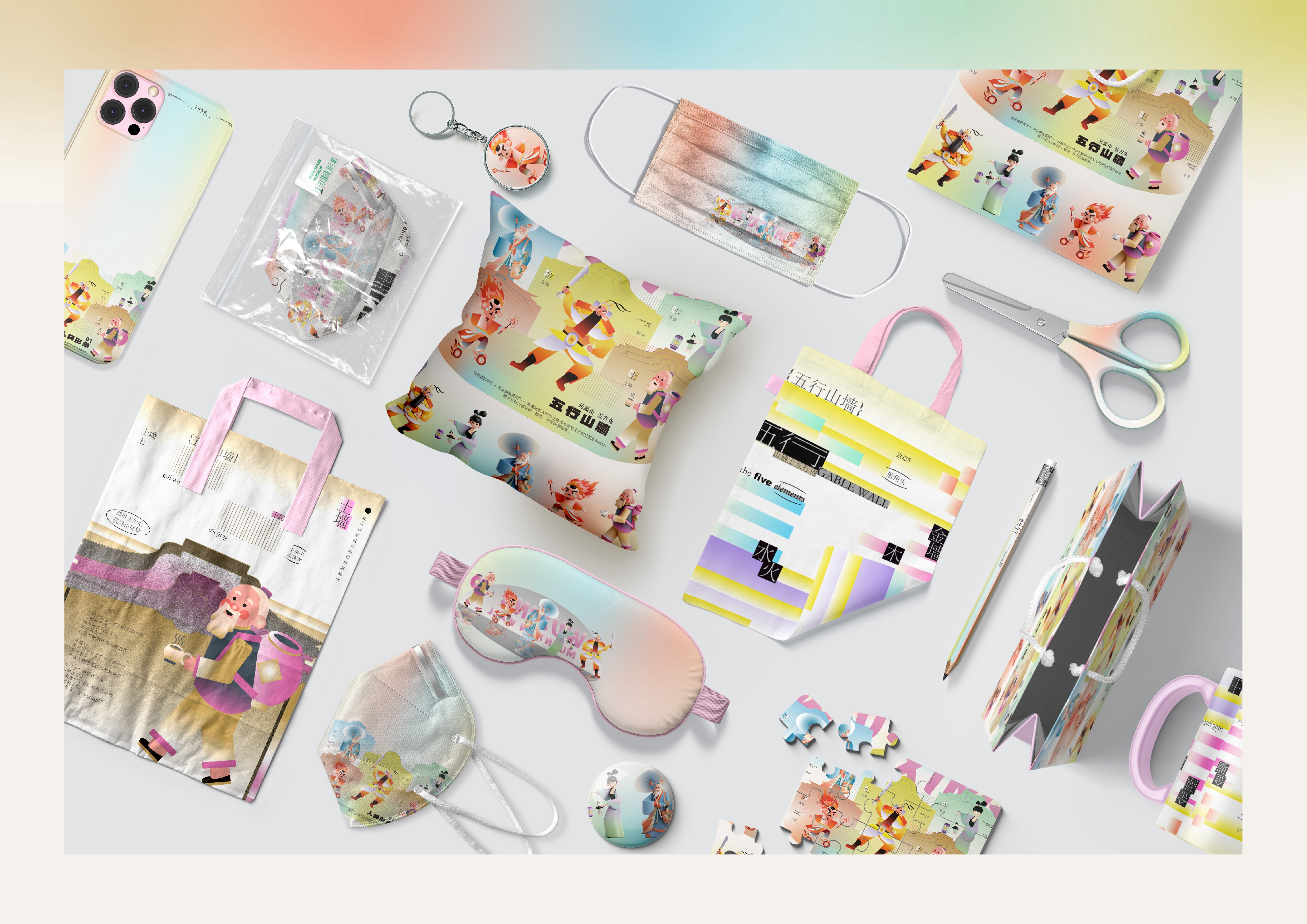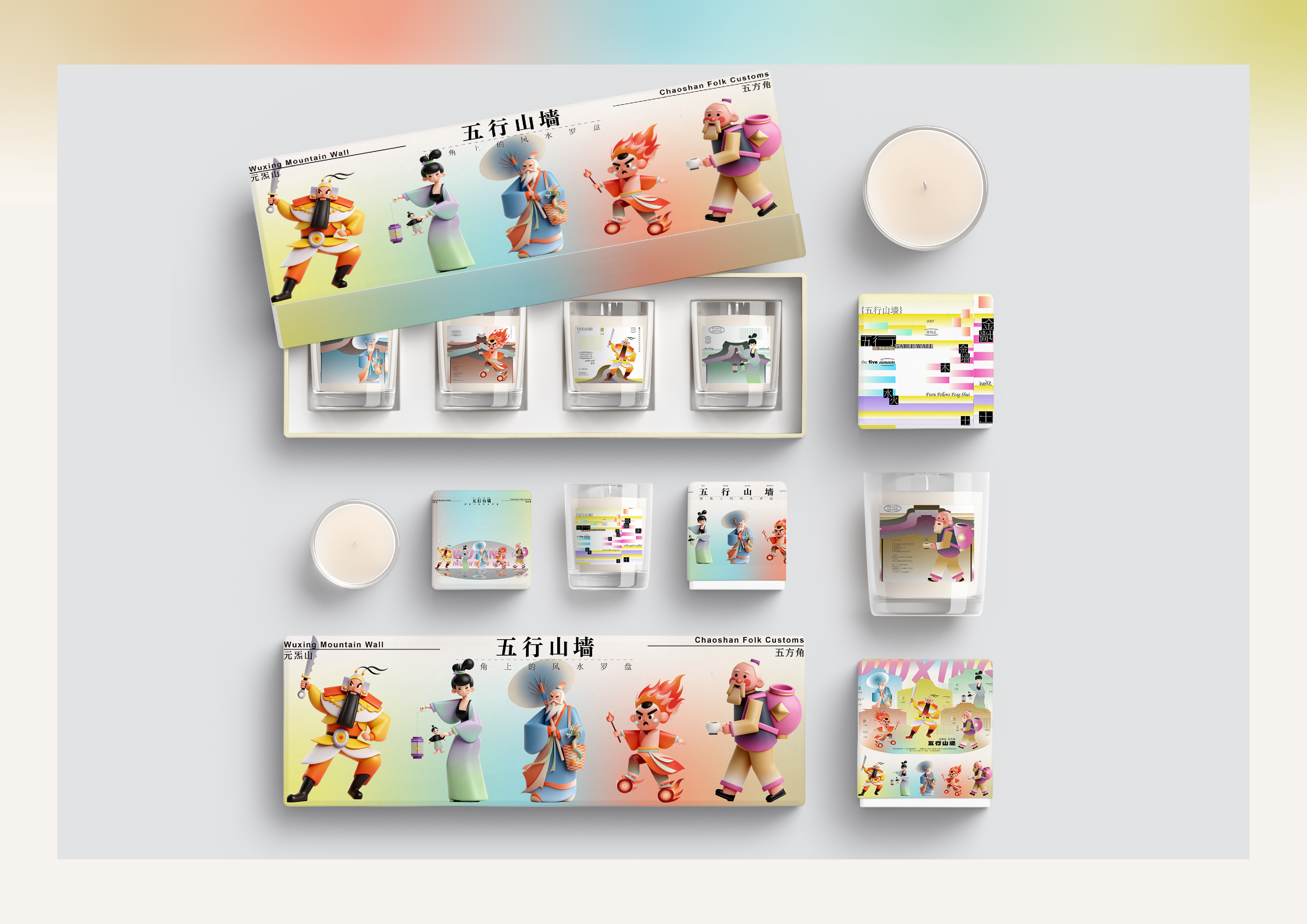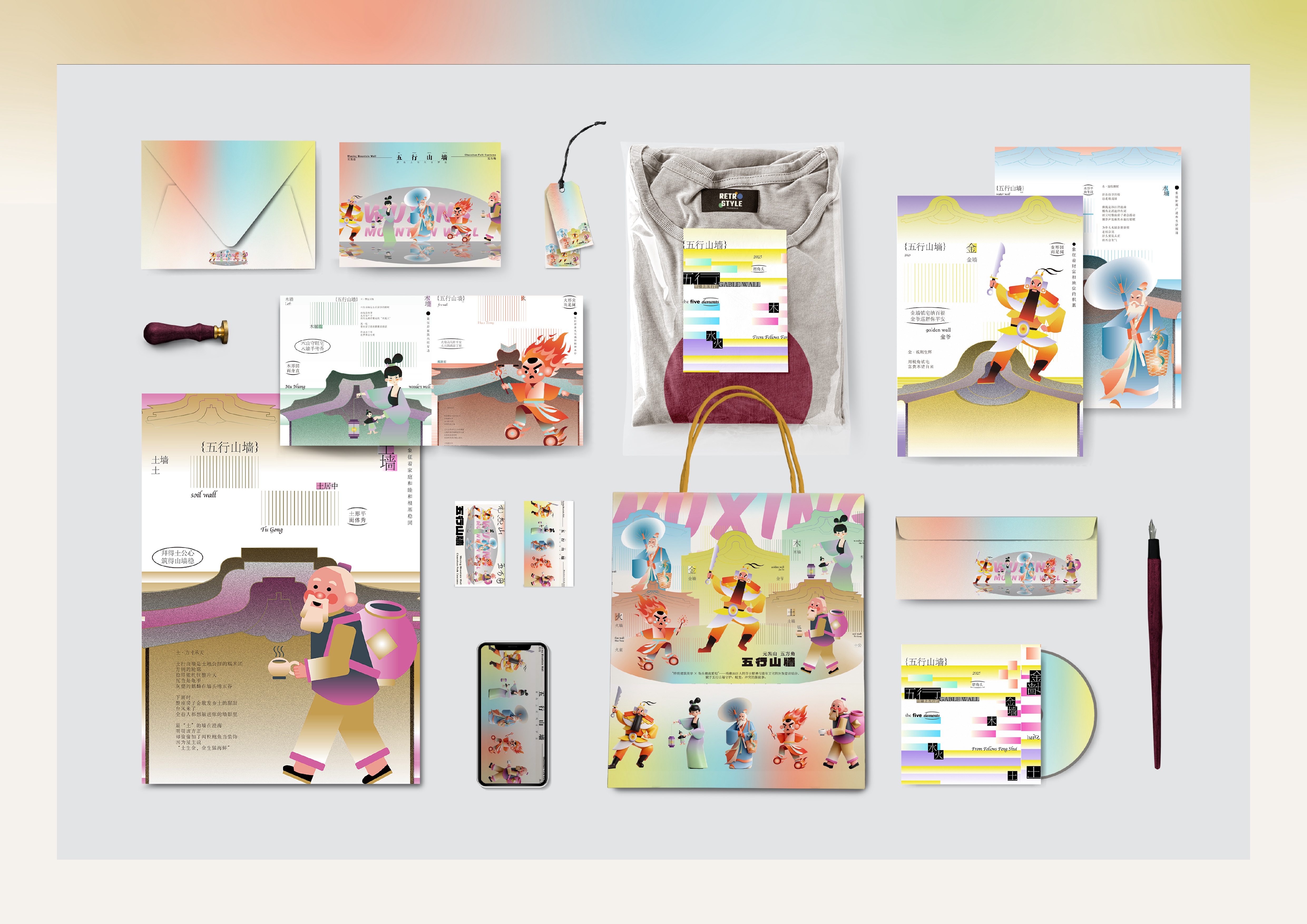 The design language combines traditional Chinese aesthetics with street-style graphics and cyberpunk touches. Color palettes are inspired by Chaoshan’s ceramic art—highly saturated but tempered with modern tones. Visual tension is intentionally preserved to express the philosophical interplay of the Five Elements.