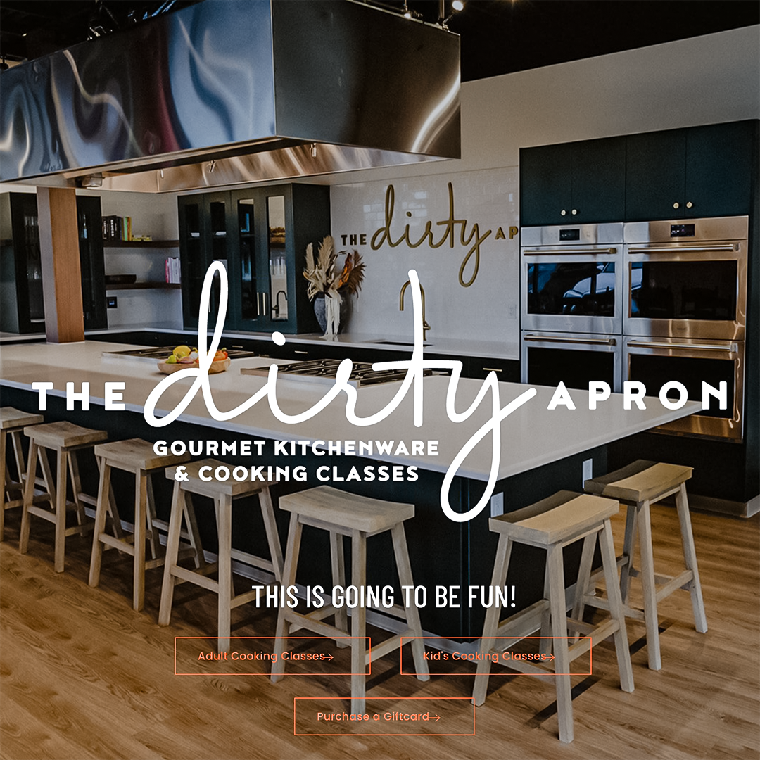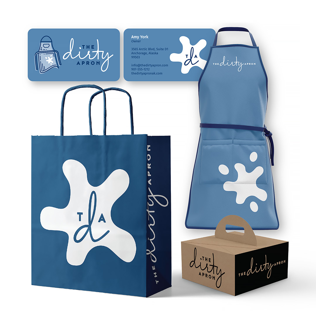 The Dirty Apron asked Mad Dog to create a logo that embodied the fresh, funky, and family-friendly atmosphere of their new gourmet kitchenware and cooking class boutique in midtown Anchorage. Mad Dog paired a lively apron mascot with a sophisticated custom wordmark to balance the high-end feel of the store with the approachable, fun, and community-focused attitude of the owners and staff. The Dirty Apron offers cooking classes for both adults and kids, taught by a rotating lineup of your favorite local chefs. Upscale kitchen products and countertop appliances fill the shop, begging to be explored. The space is also available for private catered events.