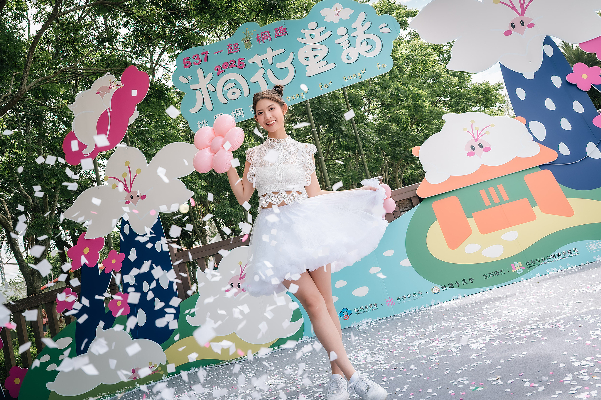 The 2025 Taoyuan Tung Blossom Festival presents “Tung Blossom & Fairy Tale,” Hakka pronunciation is "tungˇ faˊ tungˇ fa".