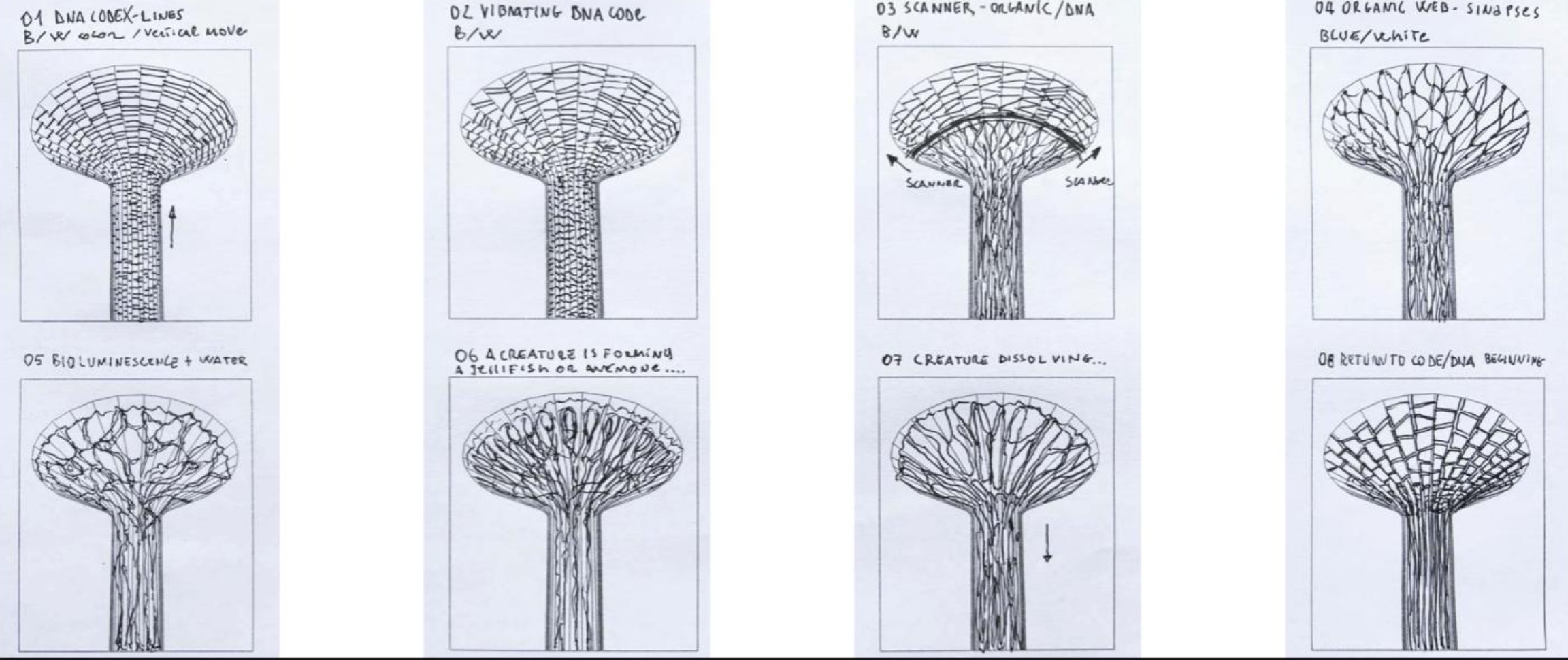 original state of DNA, in a cile which reflects the recurrence of life. The mesmerizing experience reflects