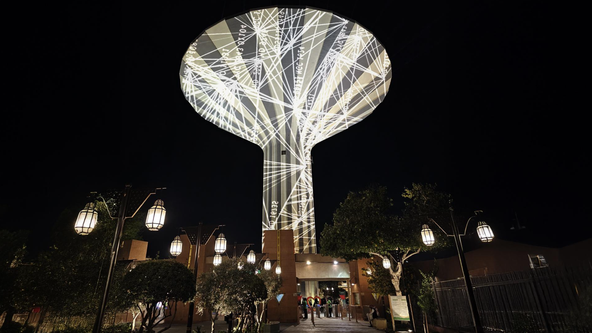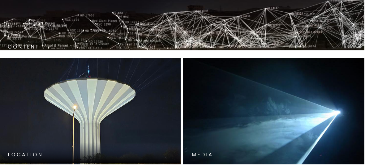 surfaces of the tower, slowly evolving from geometric lines to continously changing luminous organic