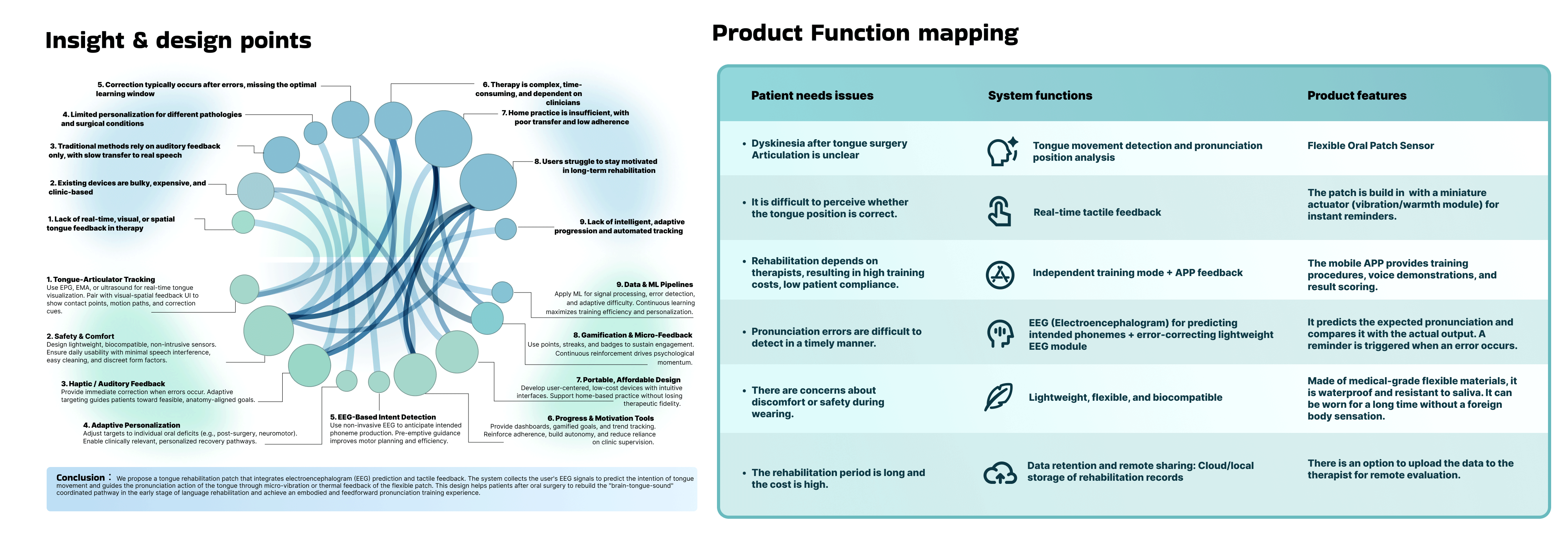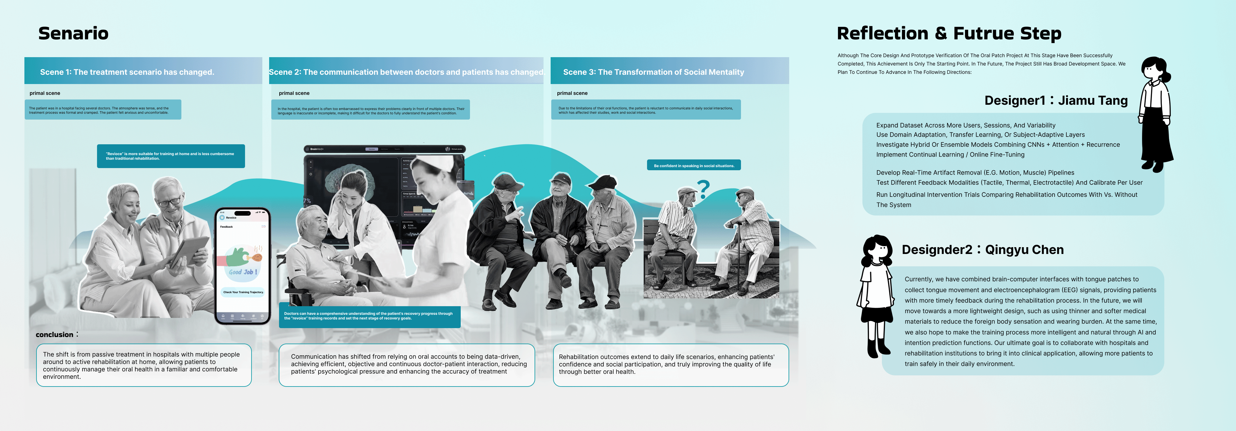 To develop an intelligent rehabilitation system that accompanies patients throughout the entire recovery process—combining oral motion sensing with brain–computer interface feedback—to enable data-driven personalization, everyday training, and improved social communication, allowing technology to truly merge with patients’ daily lives