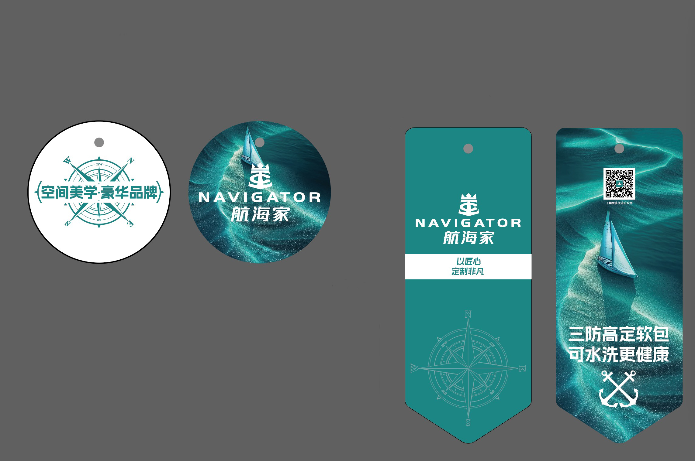 The brand identity for NAVIGATOR WORKSHOP NO.1 is built around a spirit of exploration, precision, and uncompromising craftsmanship. The logo adopts Mars Blue, a color symbolizing depth, courage, and visionary ambition. Its dynamic form evokes a sail catching the wind—representing the brand’s ethos of setting sail, breaking waves, and advancing boldly without fear.