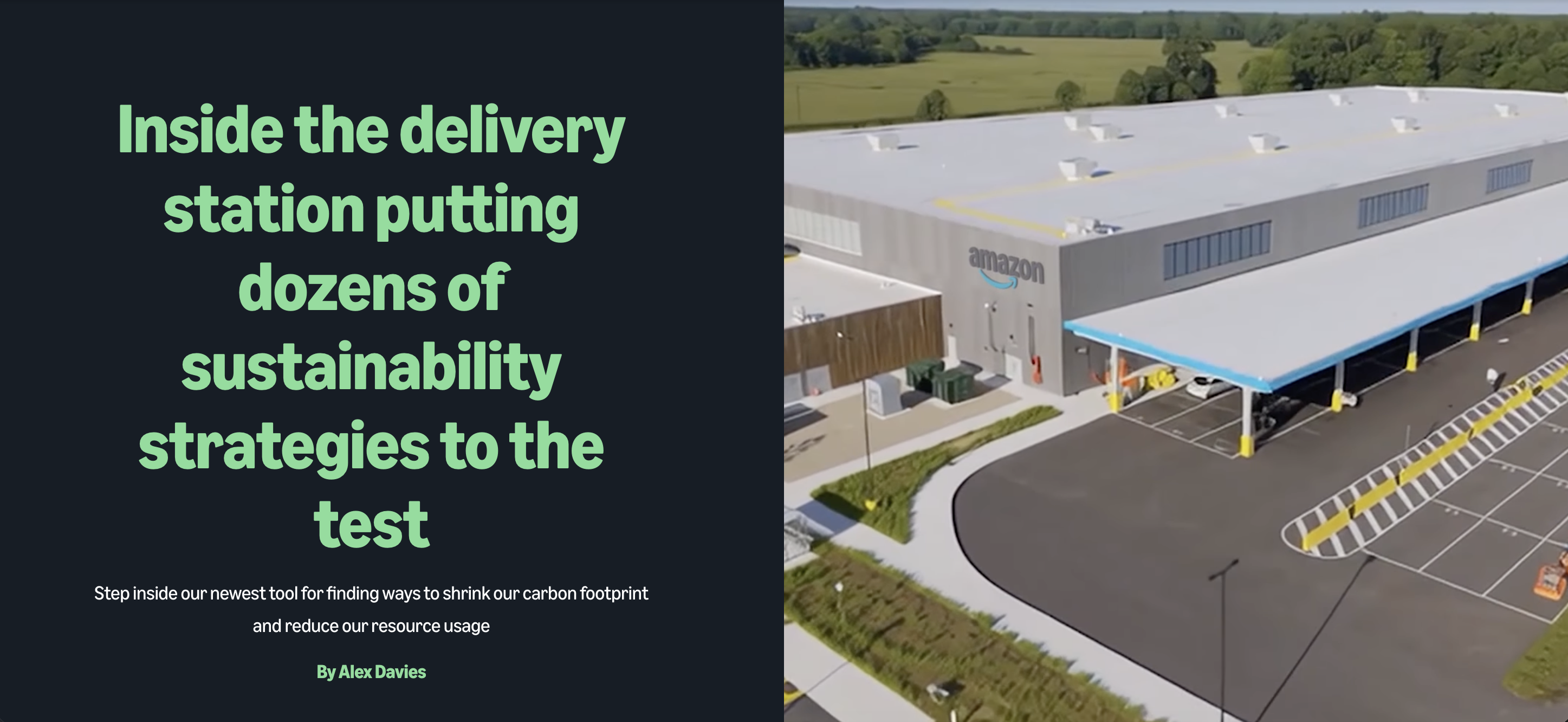 The editorial challenge was significant: making complex material science and building technology accessible without oversimplifying, and presenting Amazon's work with appropriate confidence while avoiding the hype that undermines credibility. We developed an innovative solution—visual cards throughout the story allowing readers to explore specific technologies without losing the narrative thread.