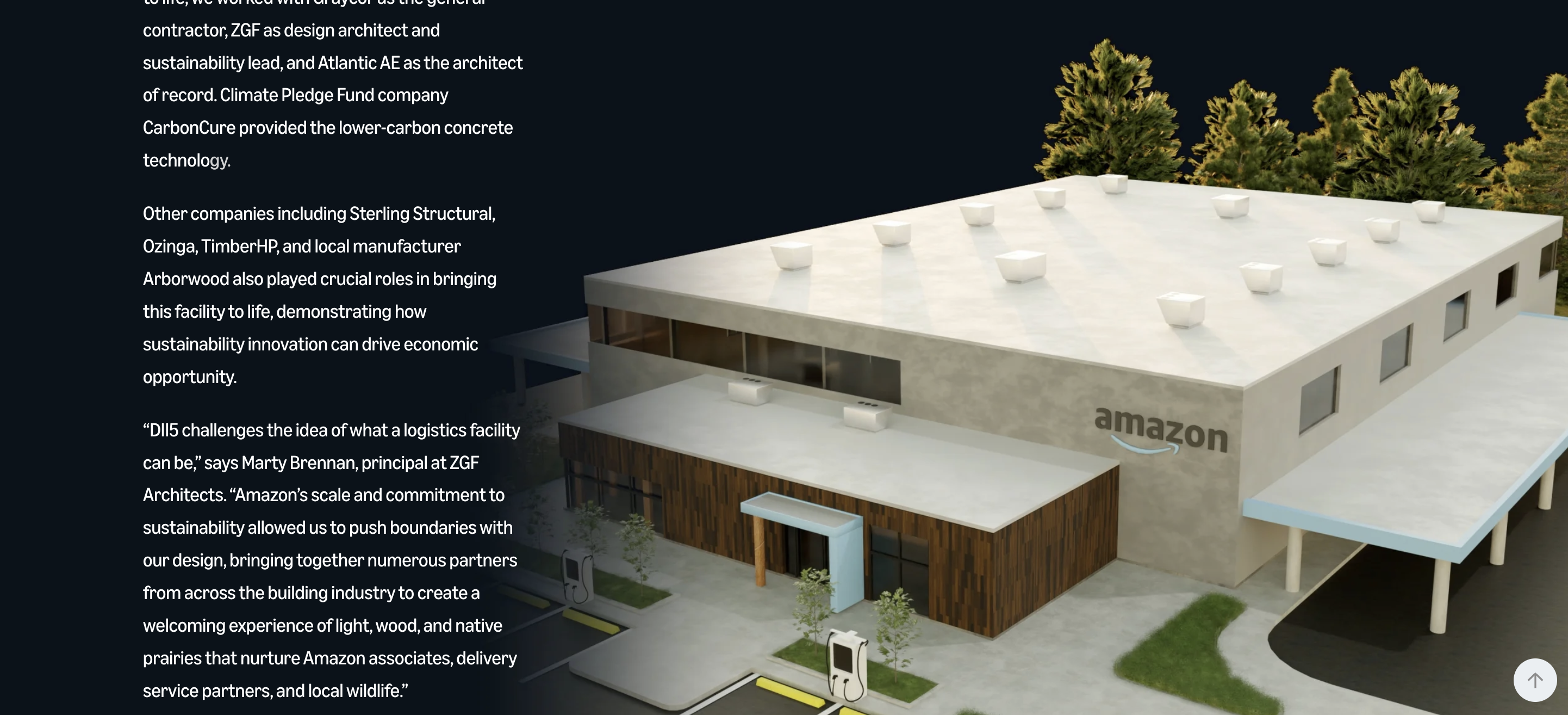 Amazon News created an immersive visual narrative around DII5, a delivery station in Indiana that represents far more than a single facility. With over 40 embedded sustainability technologies, including innovative mass timber construction, DII5 is a live testing ground where Amazon identifies, validates, and scales sustainable innovations across its massive logistics network.