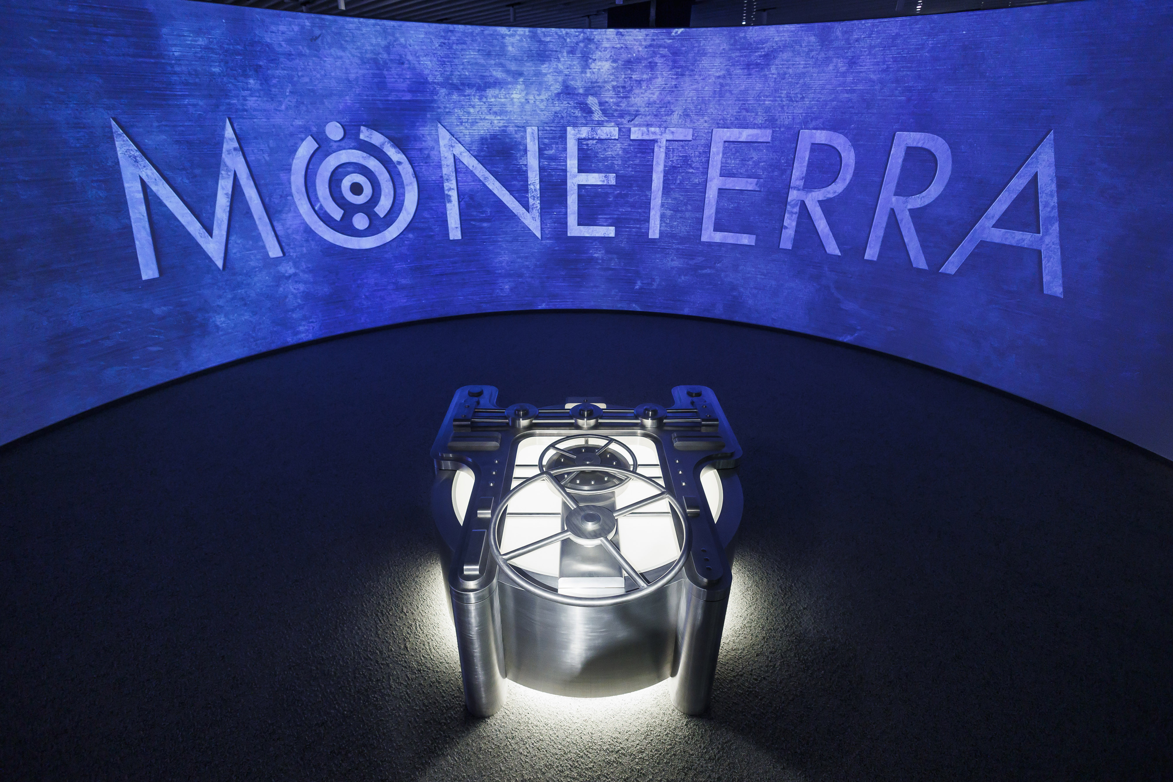 The name “Moneterra” combines the words money and earth, expressing the idea of money as a human construct grounded in labour and social agreement. Moneterra identity interprets a bank vault door in a digitally transformed and gamified way, symbolising both security and the dematerialisation of money. Developed as an integrated design approach, naming, identity and spatial communication form a coherent narrative guiding visitors from early exchange systems to contemporary financial networks. The project was conceived and realised within six months.