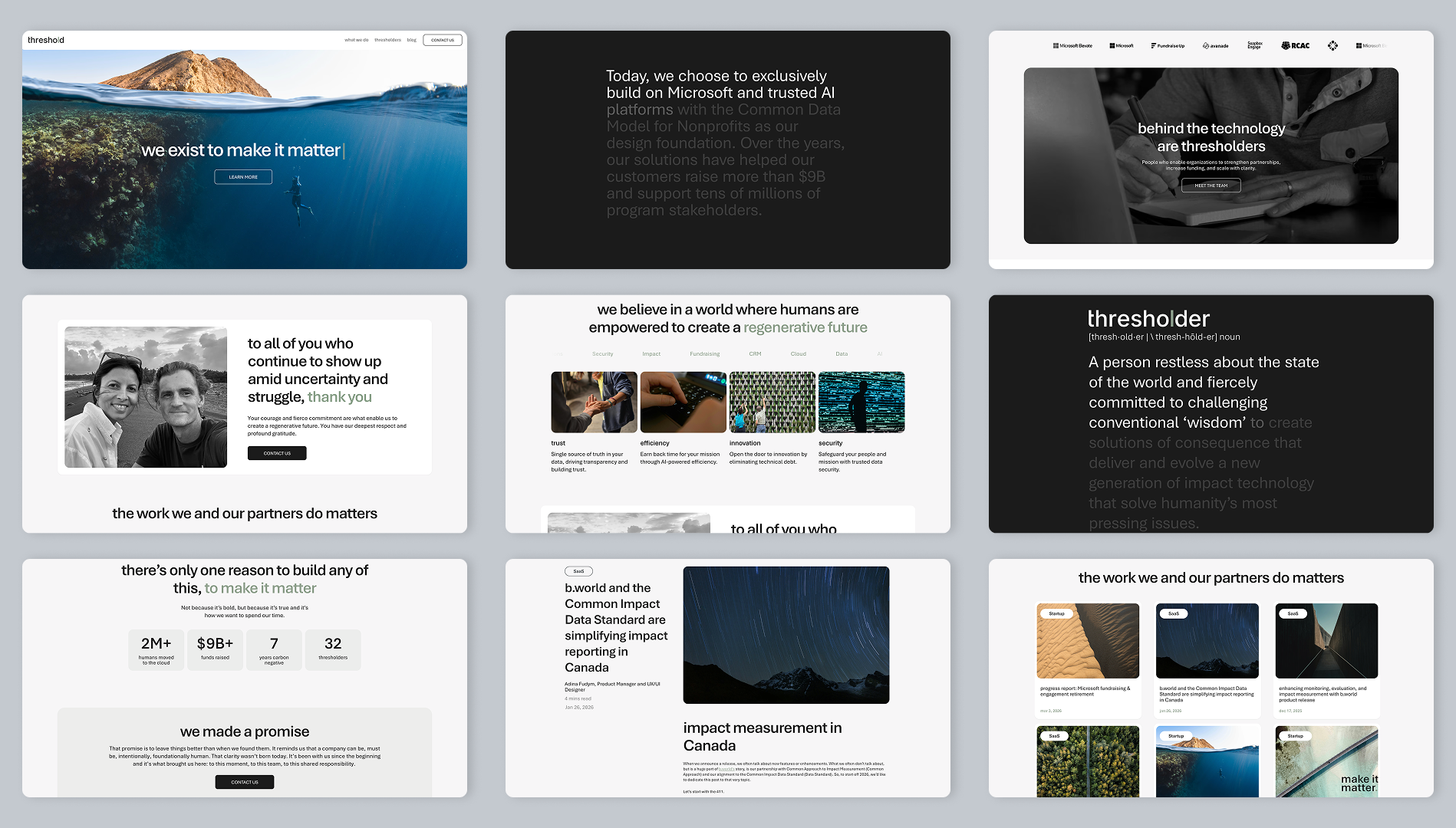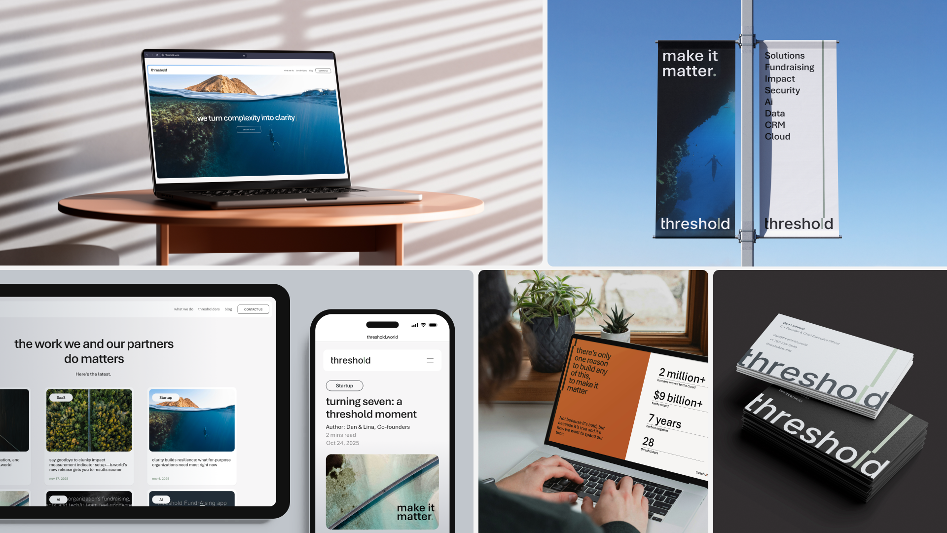 threshold is a Puerto Rico-based impact technology company that partners with nonprofits, healthcare foundations, and the broader for-purpose sector to help them fundraise, manage data, track outcomes, and better understand the impact of their work. Its solutions have helped customers raise more than $9 billion. But after seven years of growth, the brand no longer reflected the company behind it. threshold was doing increasingly complex, valuable work, yet the brand felt fragmented, harder to explain than it should have been, and less confident than the work itself. In a category where trust matters, that made it harder to clearly communicate what threshold does, why it matters, and why organizations should trust it to help move mission-driven work forward.