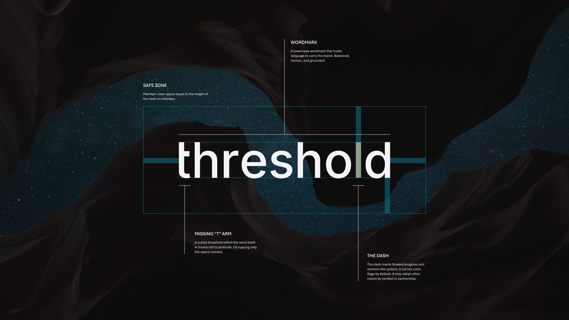 Working closely with the threshold team, we rebuilt the foundation to make the brand clearer, stronger, and more useful. Mission, vision, value proposition, positioning, naming strategy, brand architecture, voice, and visual identity were all reworked to give the company a stronger center and a more credible presence. Simplifying the name from threshold.world to threshold was a big part of that. Shorter, sharper, and easier to remember, it gave the brand a more confident way to show up. At the center of the new identity is the threshold dash line, extended from the wordmark to mark the moment where complexity becomes clarity. It became the organizing idea behind the system, shaping layout, motion, hierarchy, and flow across every touchpoint. Typography, color, photography, and motion all worked together to reinforce that feeling, so the brand didn’t just talk about clarity. It showed it.