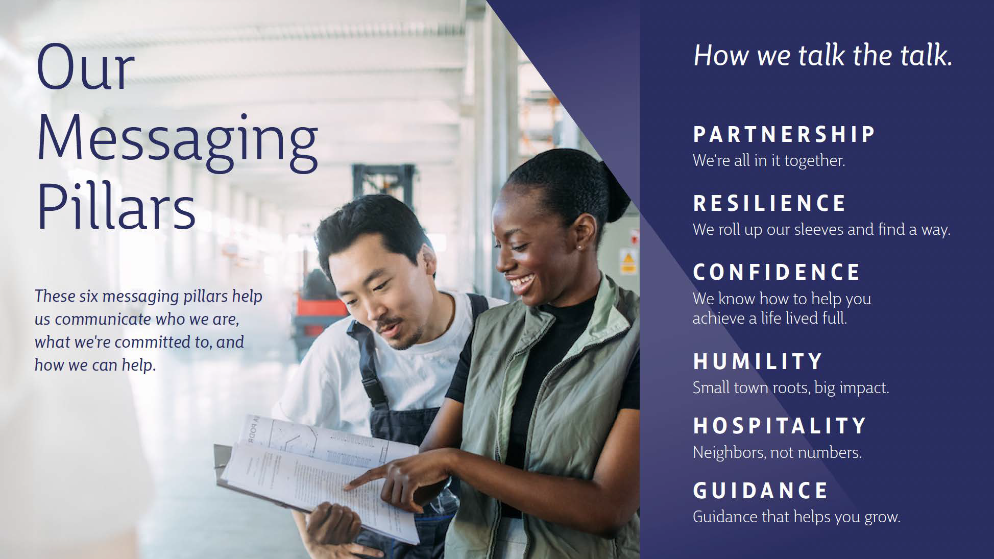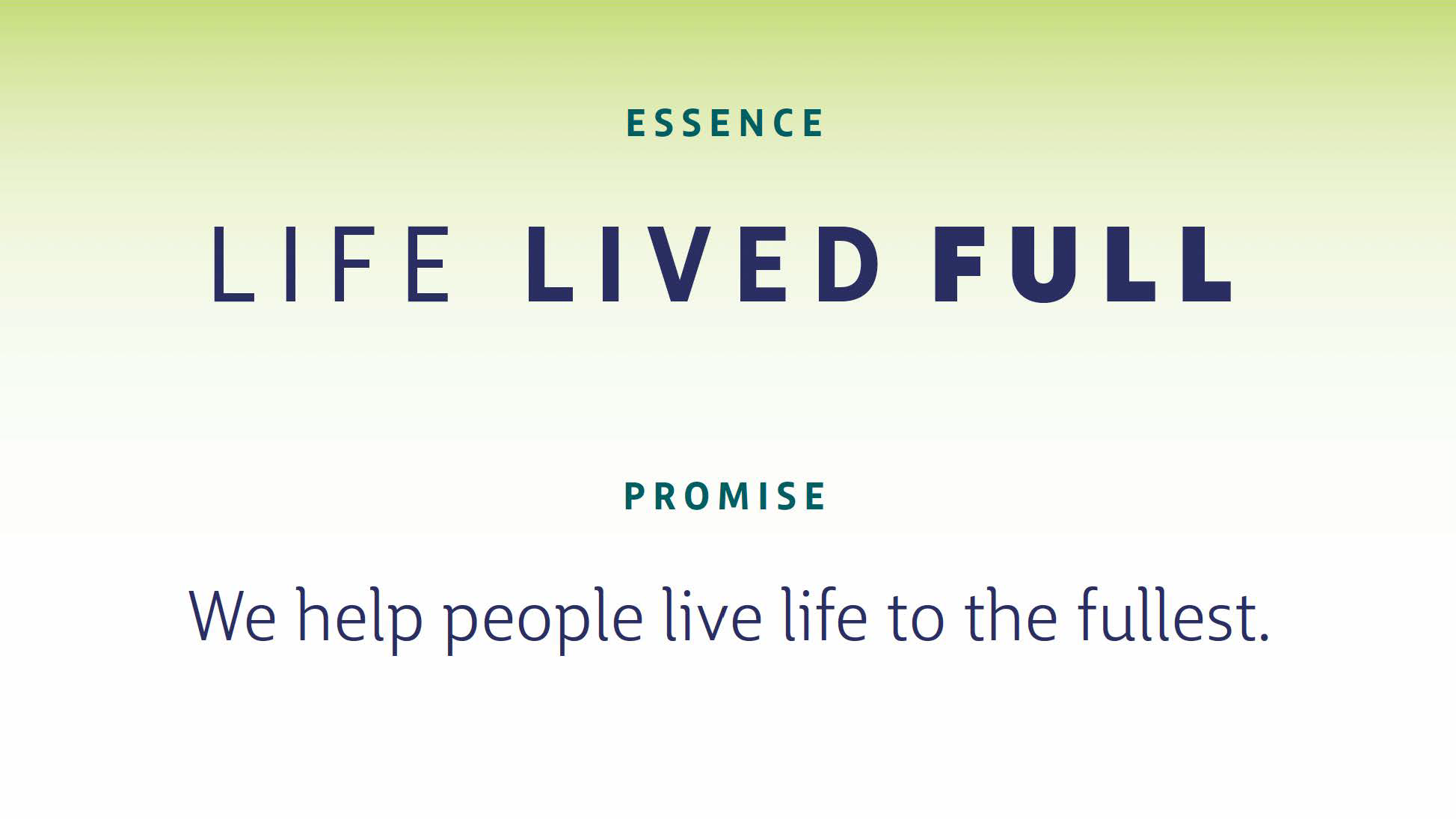 The rebrand began with immersive research across employees, leadership, customers, and community members. From this, a single powerful brand promise emerged: We help people live life to the fullest. This insight fueled the creation of the new brand.