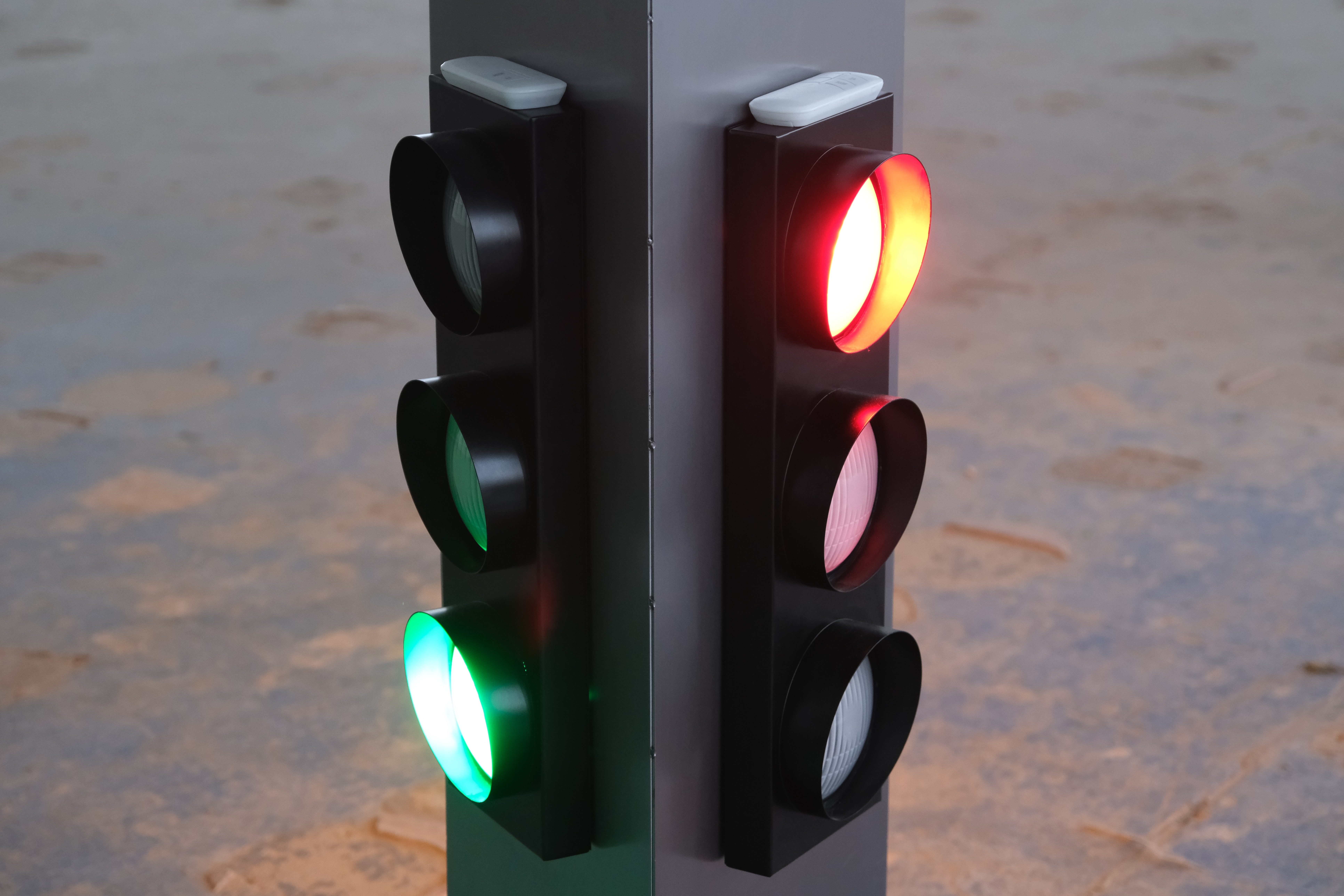 elements like a three-cornered checker objective, a traffic light mechanism, and remote