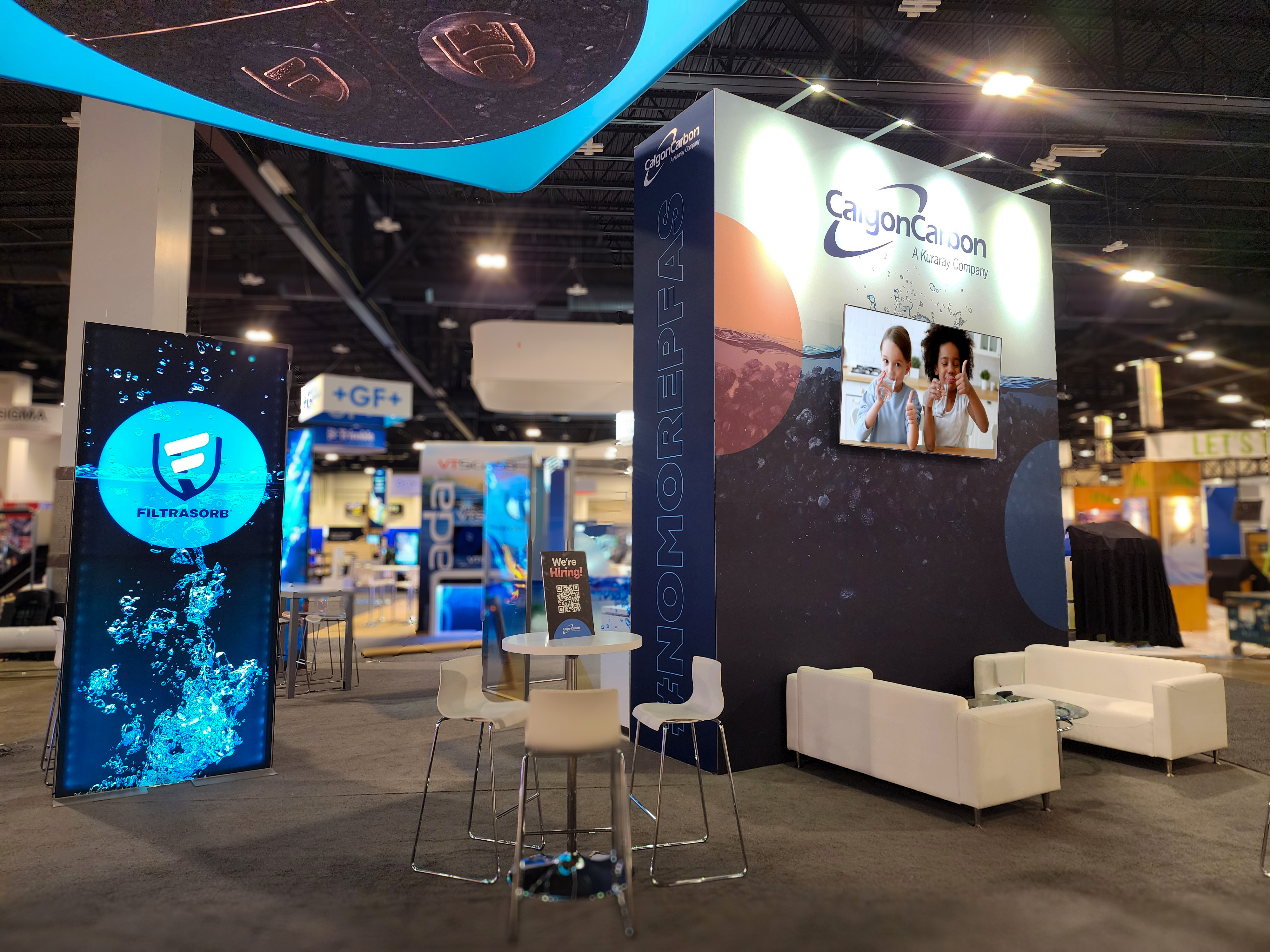 Calgon Carbon, a Kuraray Company, created an innovative exhibition space for AWWA ACE25 that strategically showcased their comprehensive four-pillar approach to customer service excellence through an immersive brand experience.