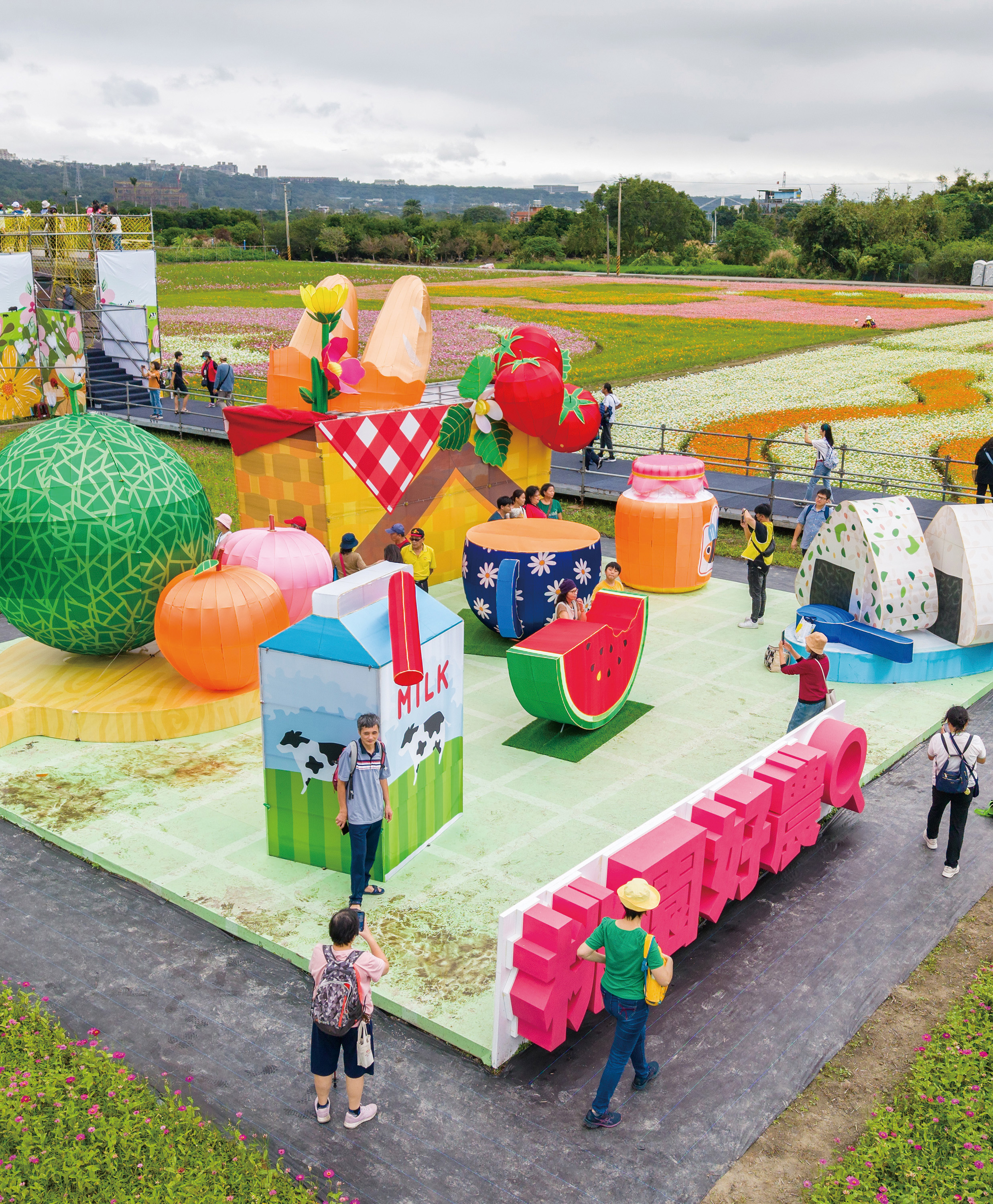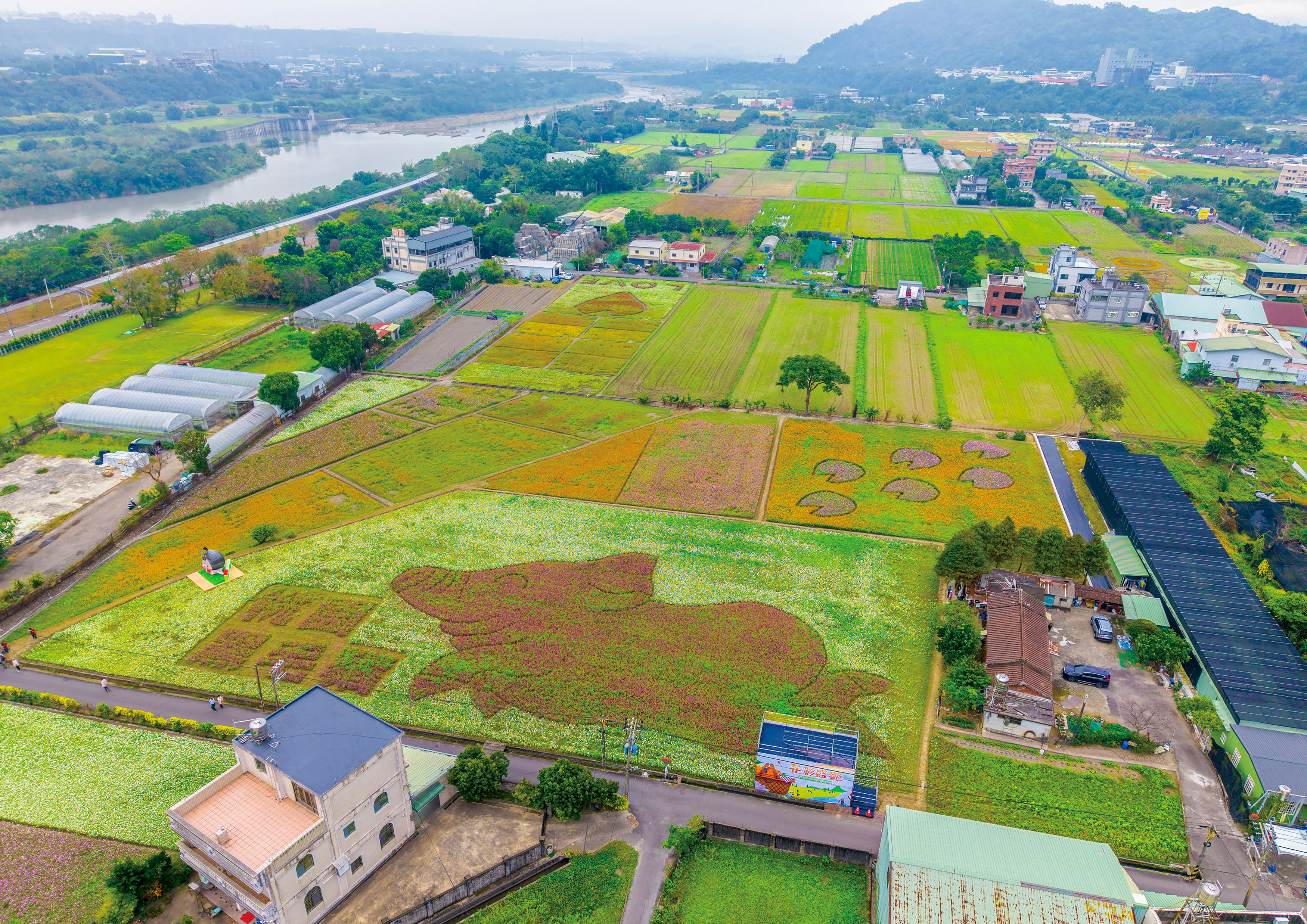 Every year in the latter half, during the fallow season, farmers transform their fields into magnificent floral totems and vibrant flower landscapes. This not only boosts the visibility of Taoyuan’s agricultural products and promotes the “Taoyuan Good Agriculture” brand, but also leaves a lasting impression of local specialties such as peaches, tea, lotus roots, milk, melons, black pork, and honey.